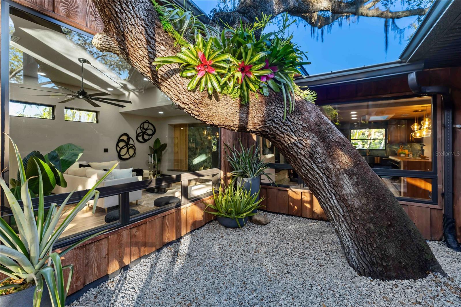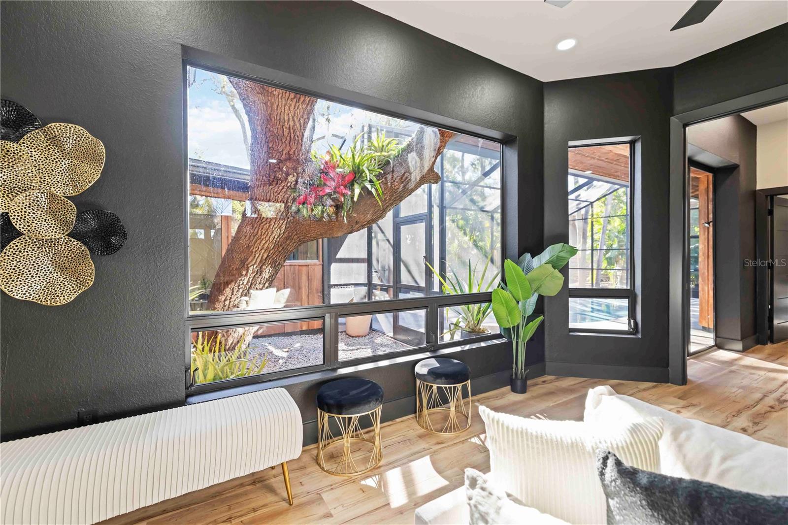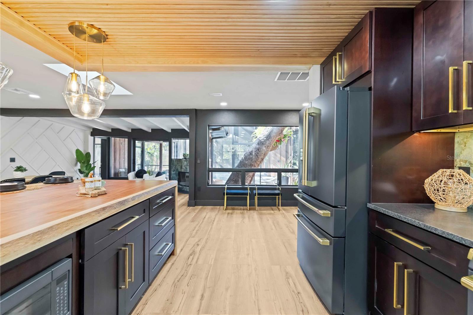 Welcome to an unparalleled sanctuary at 4534 Banan Place, a Siesta Key treasure that marries zen-like tranquility with the finest touches of luxury. This more-than-3,000-square-foot, five-bedroom, three-bath estate is a hidden gem, offering a spa-like retreat with dual living spaces, a flex room, and an atmosphere that feels like a private resort. Every inch has been exquisitely reimagined: a new standing seam black Key West–style roof (50-year lifespan) installed in 2025, High-impact resistant skylights, doors, and sliders, and curated lighting throughout create a luminous and serene interior. The heart of the home is a gourmet kitchen featuring top-of-the-line Café appliances, a double oven, a gourmet pot filler, and JARLIN custom soft-close cabinetry in all bathrooms, the kitchen, and the master closet. The centerpiece is an imported African walnut waterfall island, a stunning 7.5-foot by 4.5-foot masterpiece anchoring the space. The entire home is enhanced by the luxury of 22mm extra-long and extra-wide vinyl plank flooring, as well as 48x48 luxury tiles in a calming jade-like hue. Within this serene haven, you'll find not just one but a true dual ensuite layout, offering two primary suites—one larger than the other—both adorned with custom shelving throughout and luxurious five-panel doors. The main primary suite is a sanctuary of its own, complete with private access to the outdoors and pool. The primary bathroom is a spa-like escape, featuring a double glass-door shower with a rain head, wand, and expansive tile running up the wall. On the opposite side of the home, two additional guest bedrooms provide comfort and style. A brand-new tankless water heater ensures endless comfort, and the home also includes a front-load LG washer and dryer for modern convenience. Adding to the allure, the home includes a full wine bar with a brand-new wine fridge, perfect for entertaining in style. Outside, the newly resurfaced and rescreened pool area is surrounded by elegant travertine decking and mature landscaping with an ornamental irrigation system, creating a true private oasis. Two outdoor showers add to the resort-like experience. High-end renovations include: New standing seam roof; High-impact doors throughout the home; Durable Luxury Vinyl Plank flooring; African walnut waterfall countertops & custom wood ceiling in the kitchen; Floor to ceiling tile in main primary bathroom; New major appliances including, pool equipment, Café Appliances and water heater; and designer finishes and curated lighting throughout. Finally, immerse yourself in the lifestyle of Siesta Key: a world-renowned destination known for its pristine beaches, vibrant local culture, and a sense of community that is second to none. The home is ideally located just blocks from Roberts Bay and less than a mile from the award-winning crystal sands of Siesta Key Beach. With no HOA or deed restrictions, you have the freedom to make this oasis truly your own. **Notably, this property was appraised in December 2025 at $2.33 million—$330,000 above the list price—ensuring immediate equity for the fortunate new owner. Welcome to a life of unmatched elegance on Siesta Key.