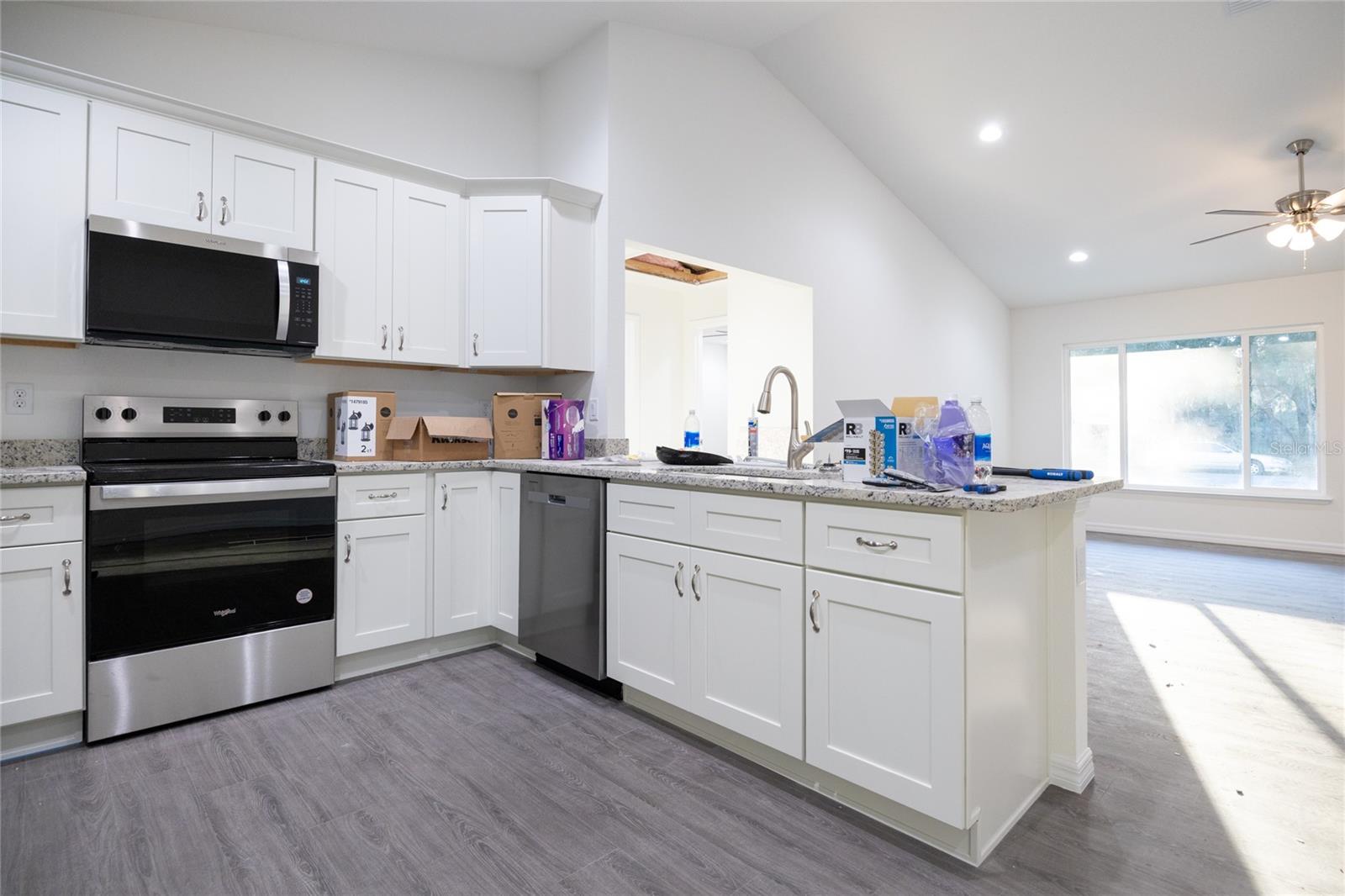 One or more photo(s) has been virtually staged. The Gorgeous Gracie in the Gated Community water front community of Lake View Woods on Lake Waldena . This new construction home features many upgrades. Exterior Stone, Decorative Concrete on Driveway, Garage Floor Coating, Gutters, Blinds are all included.This stunning home features vaulted ceilings in the main living area and Large windows in the family room for ample natural light. The open floor plan makes this home perfect for entertaining! With vaulted ceilings in the main living area. The flooring is Luxury Vinyl Plank flooring throughout the home (no carpet), with Tile in the master shower and hall bathroom tub/shower combo. The Kitchen and Both Bathroom feature Granite countertops, and Granite The wood cabinets are soft close drawers with slow close cabinet doors. The kitchen comes with Stainless steel appliances, Dishwasher, Range, Microwave, and a Refrigerator. Included with this home is a 1-year Full Builder's Warranty and 10-year Structural Warranty. Buyer to get closing credit of $2,500.00 when financing thru the with preferred lender.