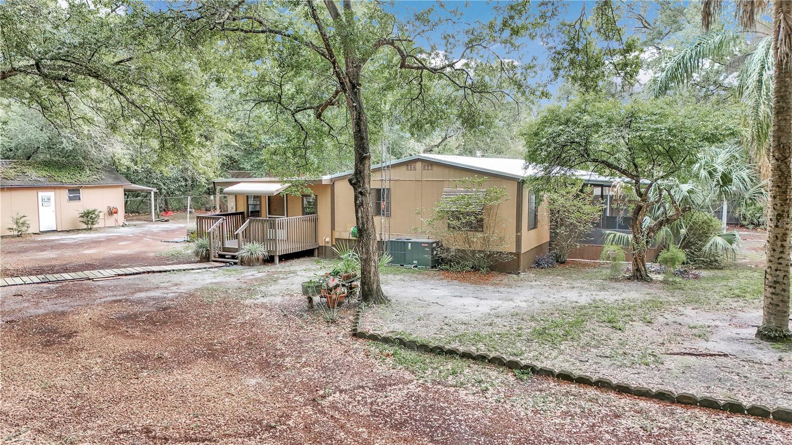 SELLER IS WELCOMING ALL OFFERS, MOTIVATED. Welcome to your serene oasis in Silver Springs, Florida! Nestled on a tranquil .57-acre lot at the end of a quiet dead-end road, this well-cared-for and immaculately clean manufactured home offers the perfect blend of laid-back rural living and modern conveniences. Adjacent to the stunning Ocala National Forest, you'll enjoy unparalleled privacy and a front-row seat to Florida's natural beauty. Some features include but are not limited to Drainfield replaced in 12/2020, Roof replaced aprox 5 years ago, Hvac replaced 5/2020, Well tank replaced approx 3 years ago. The BIG TICKET items have been taken care of. This charming home features 3 spacious bedrooms and 2 full bathrooms, providing ample space for family and guests. The generously sized family room is perfect for gatherings, while the bonus room offers additional flexibility for an office, playroom, or hobby space. The home, though in great condition, offers opportunities for updates, allowing you to add your personal touch. Step outside and be greeted by a large screened-in front porch, complete with a new set of stairs and a convenient ramp. Off the family room, a deck porch awaits, offering a peaceful spot to enjoy your morning coffee or evening sunset. The above-ground swimming pool, surrounded by a screen enclosure, provides a refreshing escape during hot summer days. For those who enjoy DIY projects or need extra storage, the property includes a utility shed with electricity, a garage/workshop equipped with water and electric, and a boat or RV carport with 220 electric service. Living here means embracing the best of nature and outdoor activities. The Ocala National Forest, right at your doorstep, offers endless opportunities for hiking, bird watching, fishing, and exploring diverse wildlife, camping, horseback riding and over 200 miles of trails for off road vehicles. Lake George and Rodman Reservoir are great areas for fishing. Close by springs include Silver Springs, Juniper Springs, Alexander Springs and Silver Glen are just a short drive and are popular spots for locals and visitors. Silver Springs State Park, known for its crystal-clear springs and lush landscapes, is just a short drive away, offering glass-bottom boat tours, kayaking, and picnic spots. Don’t miss your chance to own this slice of paradise in Silver Springs. Daytona beach is a an hour an 20 minute drive. Whether you’re looking for a peaceful retreat or an adventure-filled lifestyle, this home has it all. Schedule your showing today and start living your dream!