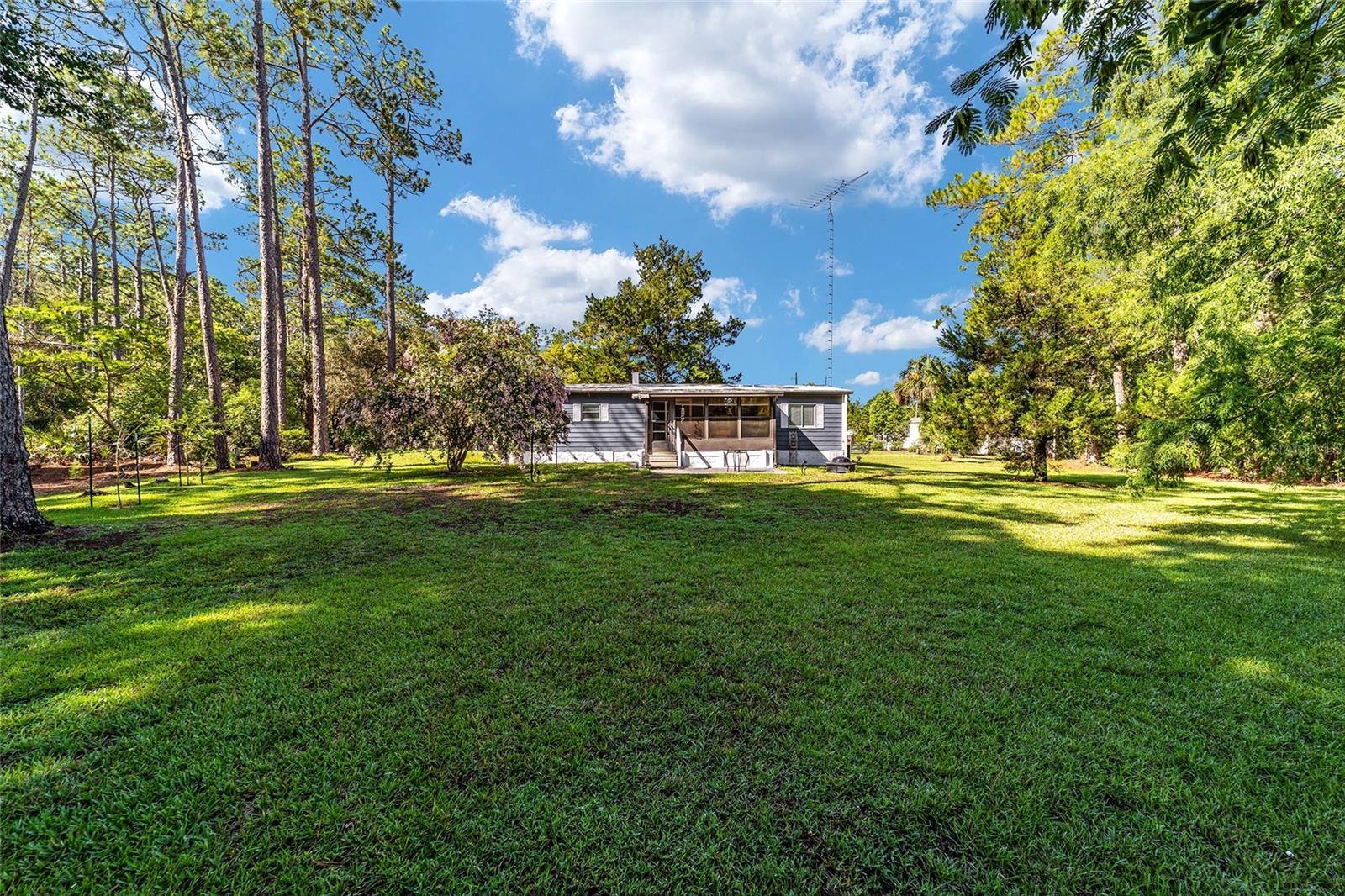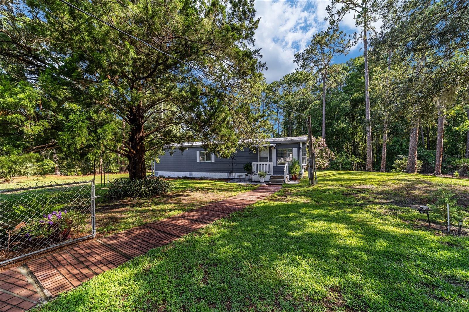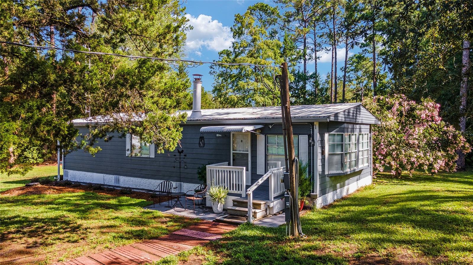Developers or those seeking a multiple family compound. 1 home on 3 or more buildable adjoining lots! Located in the Ocala National Forest subdivision of Lake Charles Campsites (not a campground). All parcels back up to forest lands where you can hike right out your back door! Lot 20 is .65 acres and includes an unwarranted well and septic system, front fencing and a concrete driveway. This is a beautiful rolling hill landscaped parcel with good access ready for a home. Lot #26 is .98 acres and includes an updated 1,104 sq ft doublewide 2 bedroom 2 bath mobile home with a wood burning fireplace. This parcel includes a detached garage and a RV carport to park under. This parcel could be divided to accommodate another home. See more home details below. Lot #28 is .51 acres of mostly cleared land with a young crepe myrtle hedge along one side. Seller says per Marion County this parcel may be split into 3 lots. Combined total land is 2.14 acres, being sold together as a package. Home on Lot #26 is tastefully updated with an inviting warm open atmosphere. Home has a TV antenna, and newer AC/Heat Pump and hot water heater. The large primary bedroom includes an en-suite bathroom and a wall length closet with washer & dryer inside. The second bedroom is across the hall from the full guest bathroom. From the dining area you can access the back porch through sliding glass doors. The enclosed porch offers a great place to enjoy watching birds and many other visiting animals including an occasional river otter. Out the back door There is a stone patio for sitting area and grill/griddle. This is a beautifully relaxing special place to enjoy nature and outdoors.
