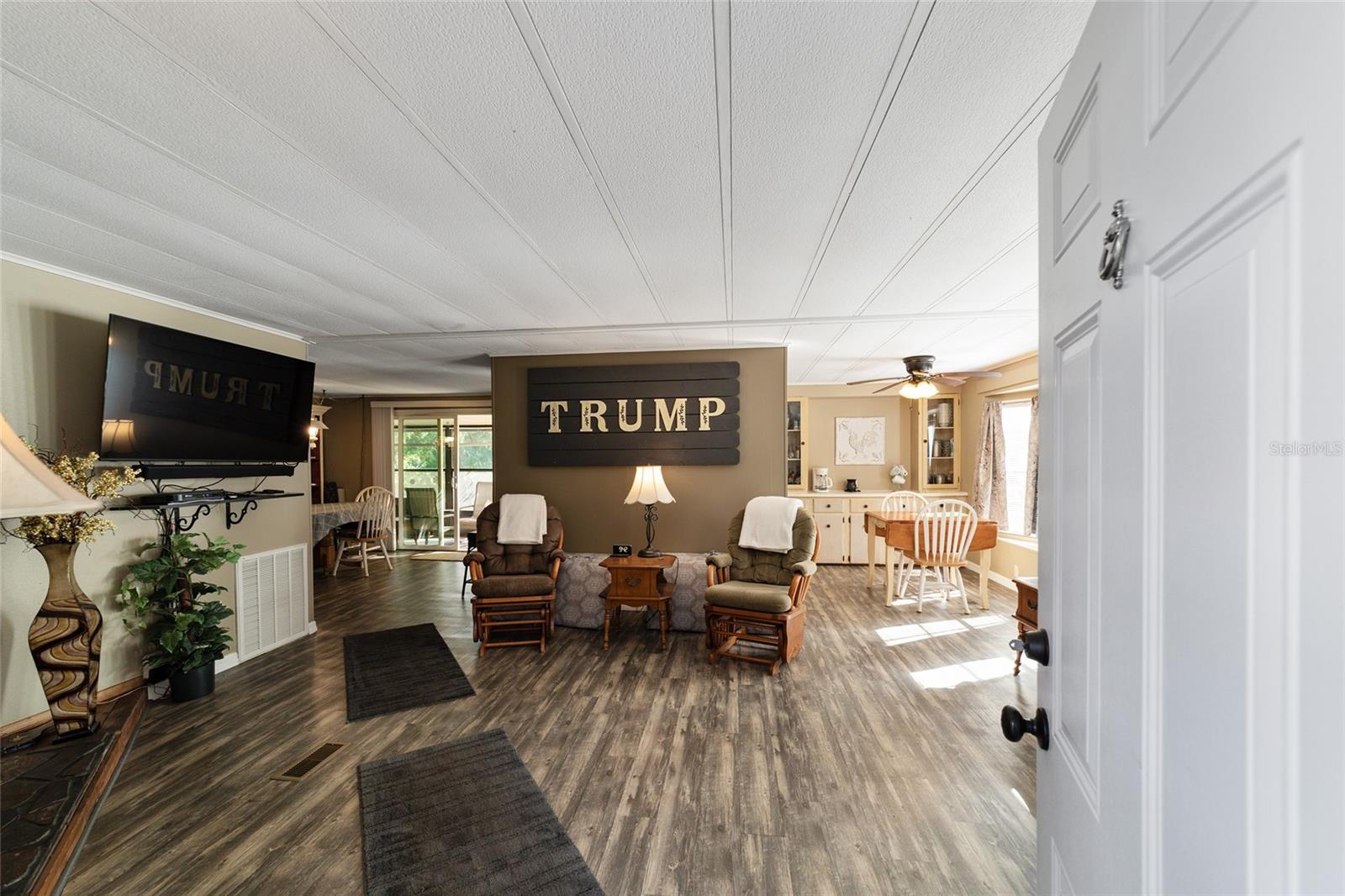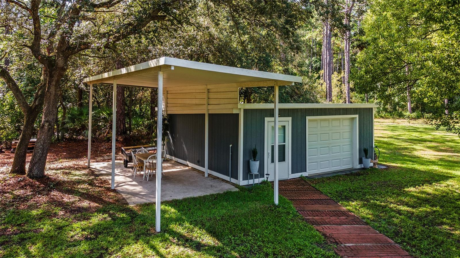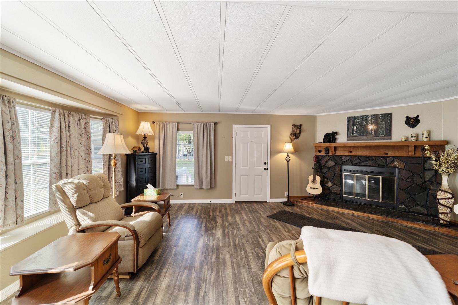 Developers or those seeking a multiple family compound. 1 home on 3 or more buildable adjoining lots! Located in the Ocala National Forest subdivision of Lake Charles Campsites (not a campground). All parcels back up to forest lands where you can hike right out your back door! Lot 20 is .65 acres and includes an unwarranted well and septic system, front fencing and a concrete driveway. This is a beautiful rolling hill landscaped parcel with good access ready for a home. Lot #26 is .98 acres and includes an updated 1,104 sq ft doublewide 2 bedroom 2 bath mobile home with a wood burning fireplace. This parcel includes a detached garage and a RV carport to park under. This parcel could be divided to accommodate another home. See more home details below. Lot #28 is .51 acres of mostly cleared land with a young crepe myrtle hedge along one side. Seller says per Marion County this parcel may be split into 3 lots. Combined total land is 2.14 acres, being sold together as a package. Home on Lot #26 is tastefully updated with an inviting warm open atmosphere. Home has a TV antenna, and newer AC/Heat Pump and hot water heater. The large primary bedroom includes an en-suite bathroom and a wall length closet with washer & dryer inside. The second bedroom is across the hall from the full guest bathroom. From the dining area you can access the back porch through sliding glass doors. The enclosed porch offers a great place to enjoy watching birds and many other visiting animals including an occasional river otter. Out the back door There is a stone patio for sitting area and grill/griddle. This is a beautifully relaxing special place to enjoy nature and outdoors.