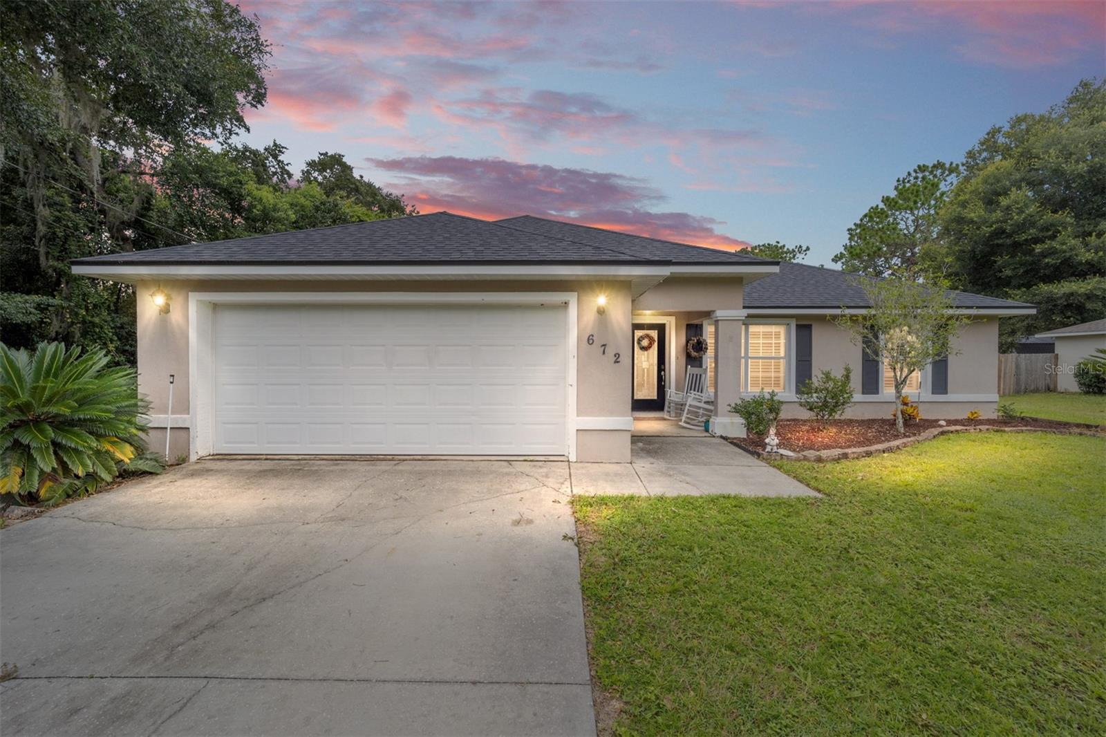 Welcome to this stunning three bedroom, two bathroom block home in the gorgeous community of Trails East! Leave your worries behind you with a newer roof completed in 2022 and new HVAC installed in 2018! Featuring an open concept, split bedroom floorplan and walk-in closets in every bedroom. There is plenty of space for the whole family. Relax out back on the covered patio or freshen up your putting skills on the mini green after a long day. As a homeowner, you will have access to spring-fed lake Waldena for fishing, kayaking, sail-boating, and canoeing. this community also provides access to two fishing docks, boat ramp, playing field, pavillion area and FREE RV or boat storage. just 11 miles to Ocala and in close proximity to Ocala National Forest, offering freshwater springs, rivers, lakes, boating, trails, hunting, camping, and fishing galore! Enjoy Florida living at its finest and make this your forever home! Call today for a private tour!