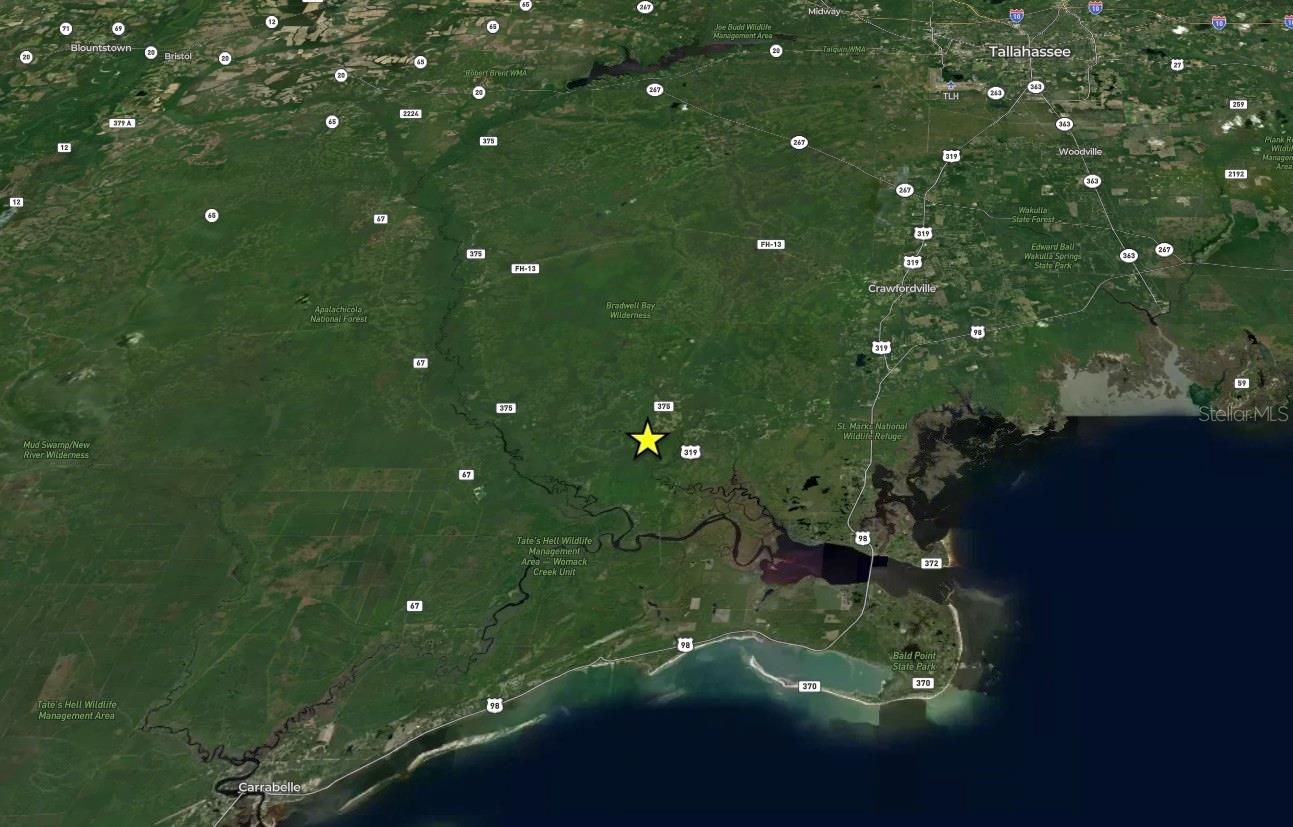This 14.99 acre property in Wakulla County offers a combination of improved pasture, residential amenities, and direct access to public hunting / recreation land. Located inside and adjacent to the Apalachicola National Forest Still Hunt Area, the tract shares approximately 800 feet of boundary fence line with the forest and provides access to extensive public lands for hunting, recreation, and fishing. The property includes approximately 8 acres of established Pensacola Bahia pasture that is fenced and cross fenced. The remaining acreage consists of mixed terrain with portions of Cow Creek running through the tract, creating a natural water source and wildlife corridor. The land supports deer, turkey, and other native species common to the region (with years of proven hunting success and trail camera photos to support). In addition to the direct forest boundary, approximately 3,000 acres of public deer, turkey, and small game hunting are located just outside the gate and managed under state and federal game regulations. The national forest encompasses roughly 500,000 + acres of public land available for various recreational uses. The primary residence built in 2006 offers approximately 2,500 square feet of heated and cooled living space with three bedrooms and two and one half bathrooms. Interior features include 10 foot ceilings throughout, custom maple cabinets, two stories and a combination of tile and hardwood flooring throughout. The home is equipped with a Generac Guardian generator supported by a 1,000 gallon propane tank. A four inch well with a manual hand pump provides additional water supply during power interruptions. Outdoor amenities include a fiberglass in ground swimming pool with patio, a six foot chain link security gate at the entrance, and established landscaping. Agricultural and homestead features include a one acre high fenced organic garden with established fruit trees, two chicken coops, exterior dog kennels, and a large greenhouse. A 40 by 60 equipment barn provides storage and includes a designated game harvest cleaning station. In addition to the main home, there is a 1,500 square foot heated and cooled workshop that can serve a variety of permitted uses. The layout supports equipment storage, hobby space, or guest accommodations subject to local regulations and buyer verification. The property is located approximately 25 miles south of Tallahassee, 12 miles South West of Crawfordville, and 10 miles North East of Carrabelle. The setting offers proximity to regional services while maintaining direct access to large tracts of public land. This offering may appeal to buyers seeking fenced acreage, residential improvements, and immediate access to public hunting and recreational property in North Florida. All measurements are approximate and should be verified by the buyer.