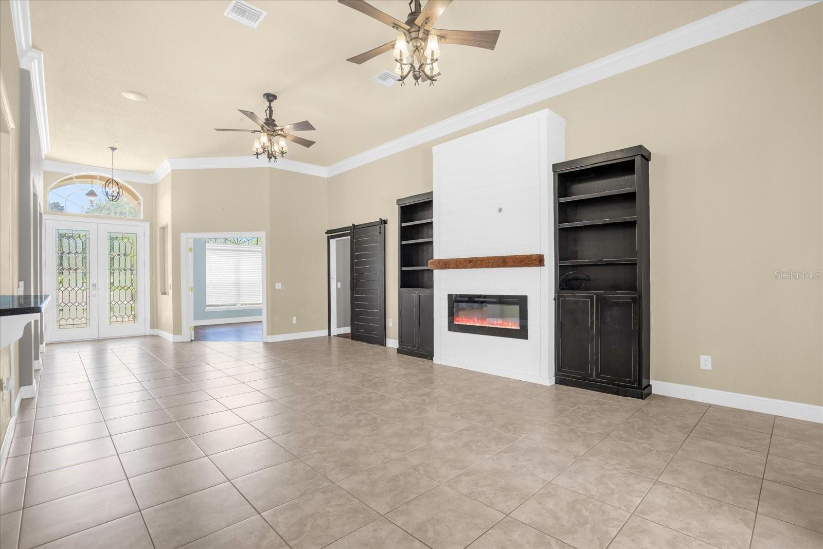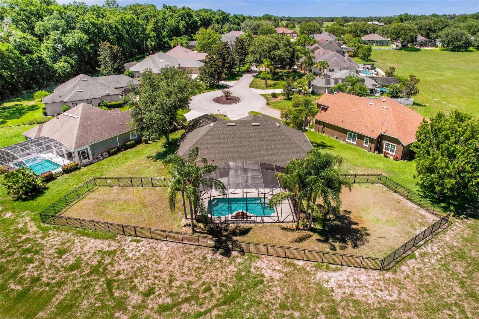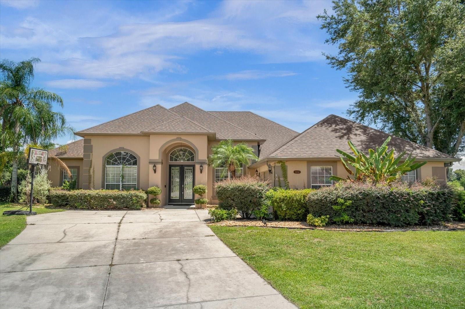 Beautiful custom built home close to Orlando and Mount Dora. Nestled in the back of the beautiful Park at Wolf Branch neighborhood on a cul-de-sac, this 4 bedrooms, 3.5 bath is the perfect home for you! Fantastic landscaping leads you up to the double glass front door. The open floor plan has a build in entertainment center with an electric fireplace set in the middle of the custom-built bookcases and storage shelving. The kitchen has granite countertops, stainless steel appliances and tall cabinets with crown molding. Home has formal dining room and an office/living room with glass doors. Split floor plan, with an oversized master bedroom suite. Large master bathroom with new cabinets, double walk-in shower and an oversized walk-in closet. The 3 bedrooms on the other side of the house are oversized as well. Second bathroom has double sinks and a jacuzzi jet tub. Walk outside from the main room (or the pool bath or master bedroom) to the private pool to cool off. The back yard is completely fenced and has complete privacy. The house has triple crown molding throughout the 12' ceilings in the main room! Very custom! There are surround sound speakers throughout the family room, master bedroom and bathroom, and outside around the pool giving this house a fantastic place to entertain! *Sold AS-IS *Roof was replaced in 9/2019. Septic drain field replaced 12/2020. New pool filter system June 2024.