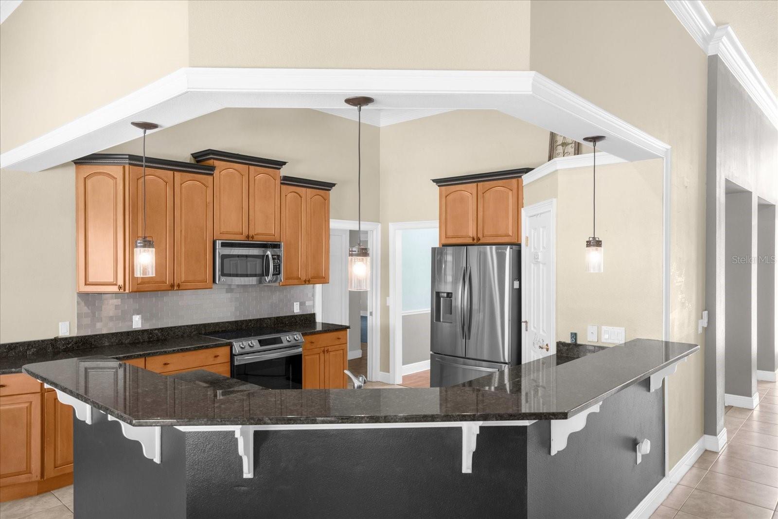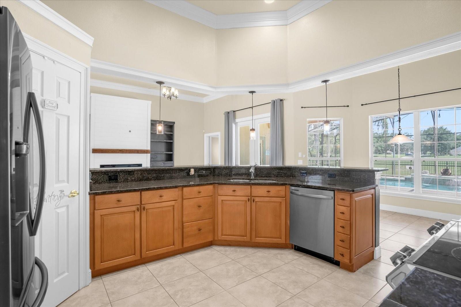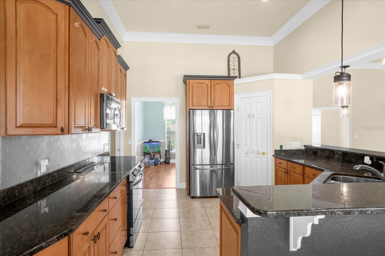 Beautiful custom built home close to Orlando and Mount Dora. Nestled in the back of the beautiful Park at Wolf Branch neighborhood on a cul-de-sac, this 4 bedrooms, 3.5 bath is the perfect home for you! Fantastic landscaping leads you up to the double glass front door. The open floor plan has a build in entertainment center with an electric fireplace set in the middle of the custom-built bookcases and storage shelving. The kitchen has granite countertops, stainless steel appliances and tall cabinets with crown molding. Home has formal dining room and an office/living room with glass doors. Split floor plan, with an oversized master bedroom suite. Large master bathroom with new cabinets, double walk-in shower and an oversized walk-in closet. The 3 bedrooms on the other side of the house are oversized as well. Second bathroom has double sinks and a jacuzzi jet tub. Walk outside from the main room (or the pool bath or master bedroom) to the private pool to cool off. The back yard is completely fenced and has complete privacy. The house has triple crown molding throughout the 12' ceilings in the main room! Very custom! There are surround sound speakers throughout the family room, master bedroom and bathroom, and outside around the pool giving this house a fantastic place to entertain! *Sold AS-IS *Roof was replaced in 9/2019. Septic drain field replaced 12/2020. New pool filter system June 2024.