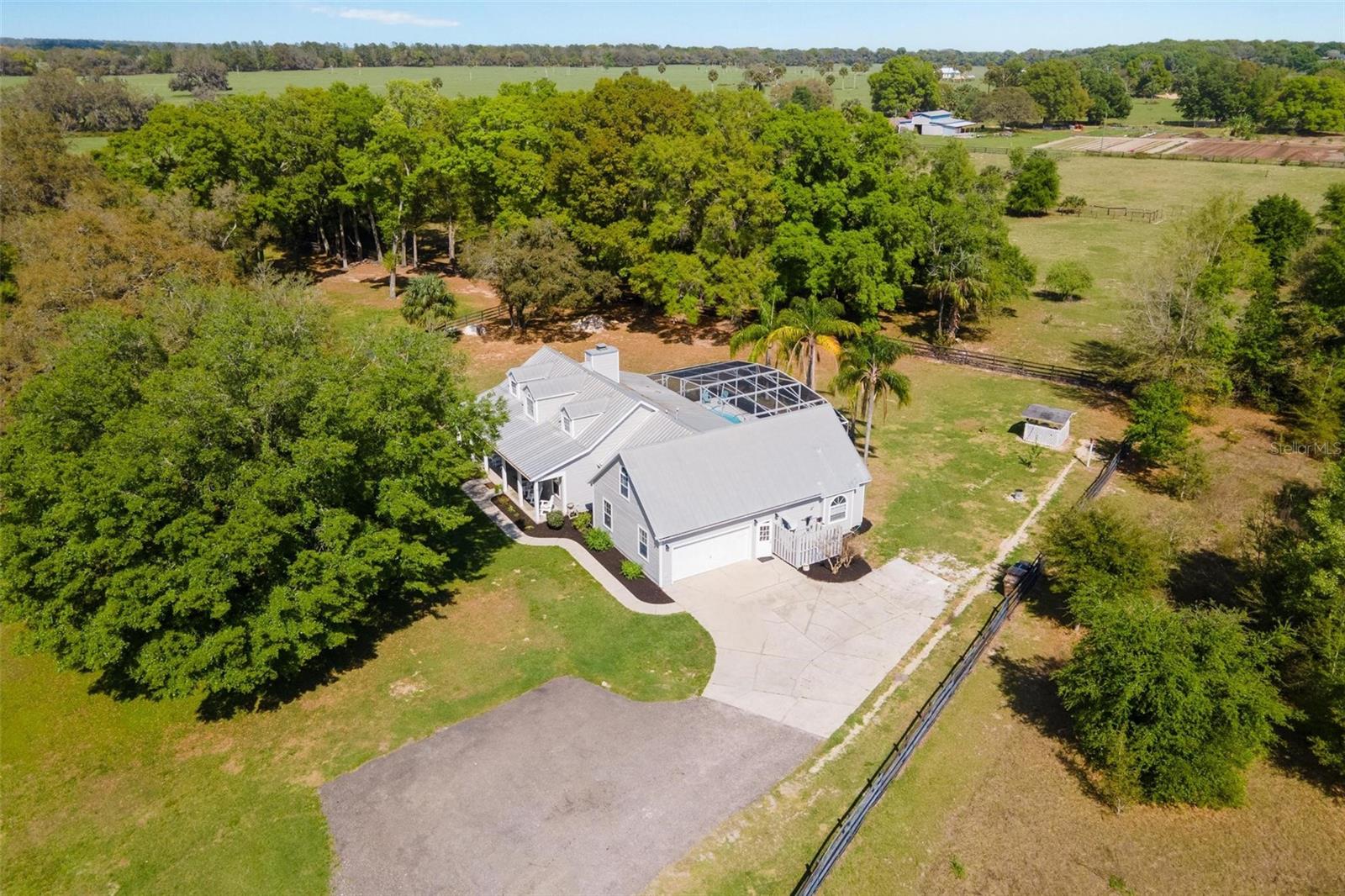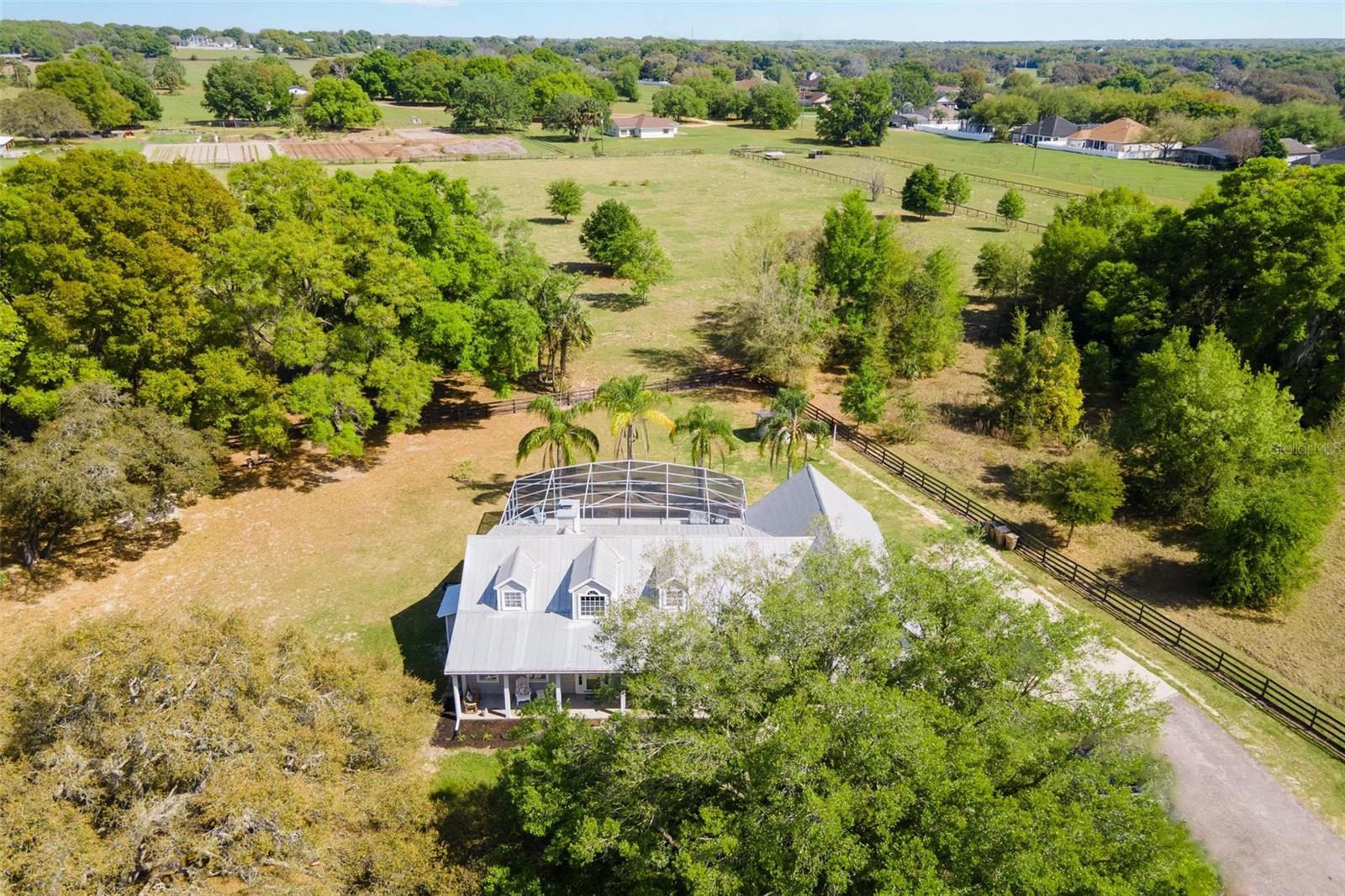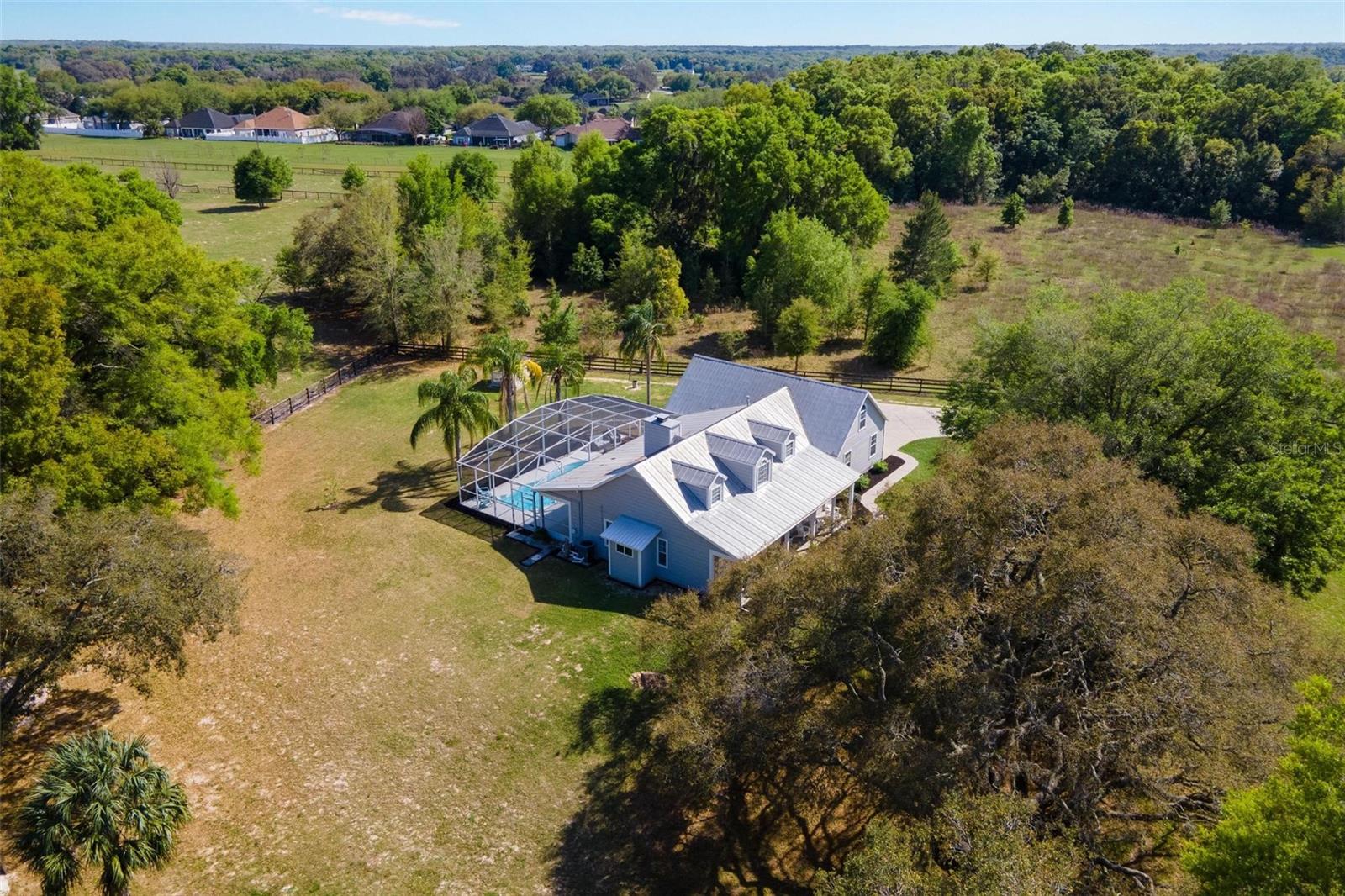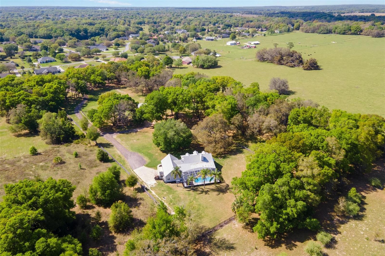 COUNTRY LIVING ON 7.6 ACRES PRIVATE AND SECLUDED-3 bedroom 2 bath split plan home with SCREENED IN POOL OVERLOOKING THE COUNTRYSIDE. Custom kitchen with GRANITE COUNTER TOPS, tons of cabinet space, gas stove, and breakfast nook area. Great room with wood floors, wood burning fireplace/gas starter, with French doors leading out to the pool lanai area. Primary bedroom leading out to pool area with a large en-suite bathroom with walk in shower, garden tub, and double sinks. 2 additional oversized bedrooms with newly remodeled guest bath with huge walk in shower 7X5 with double shower heads. Inside laundry and mud room. Oversized double car garage with side entry. Home is situated on 7.6 acres fenced and cross fenced with several pastures. BARN WITH 4 STALLS 12X11 WITH STORAGE AREA 36x24 AND/or TACK ROOM. PROPERTY IS SURROUNDED BY MAJESTIC OAKS WITH COUNTRY VIEWS. EASY COMMUTE TO ORLANDO AREA CLOSE TO HWY 46 AND THE 429. BRING YOUR FAMILY AND HORSES AND ENJOY THE PEACE AND QUIET OF COUNTRY LIVING.