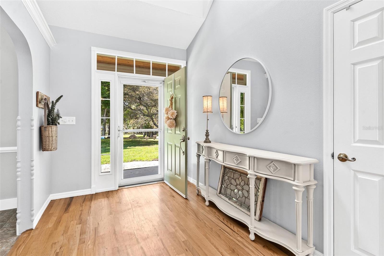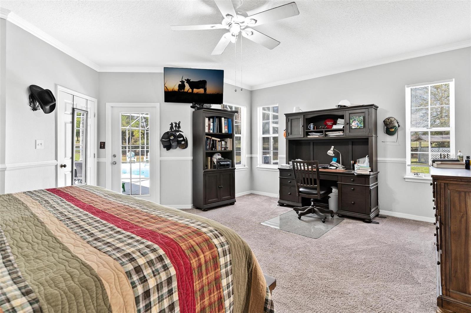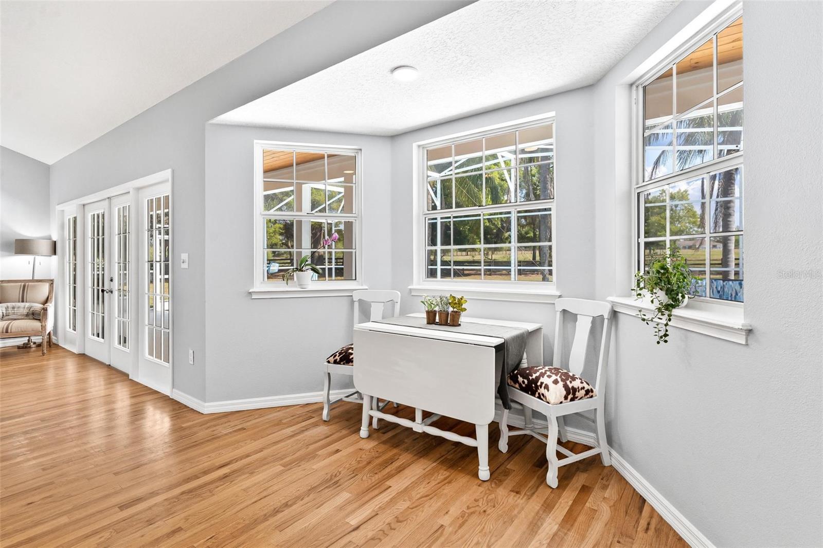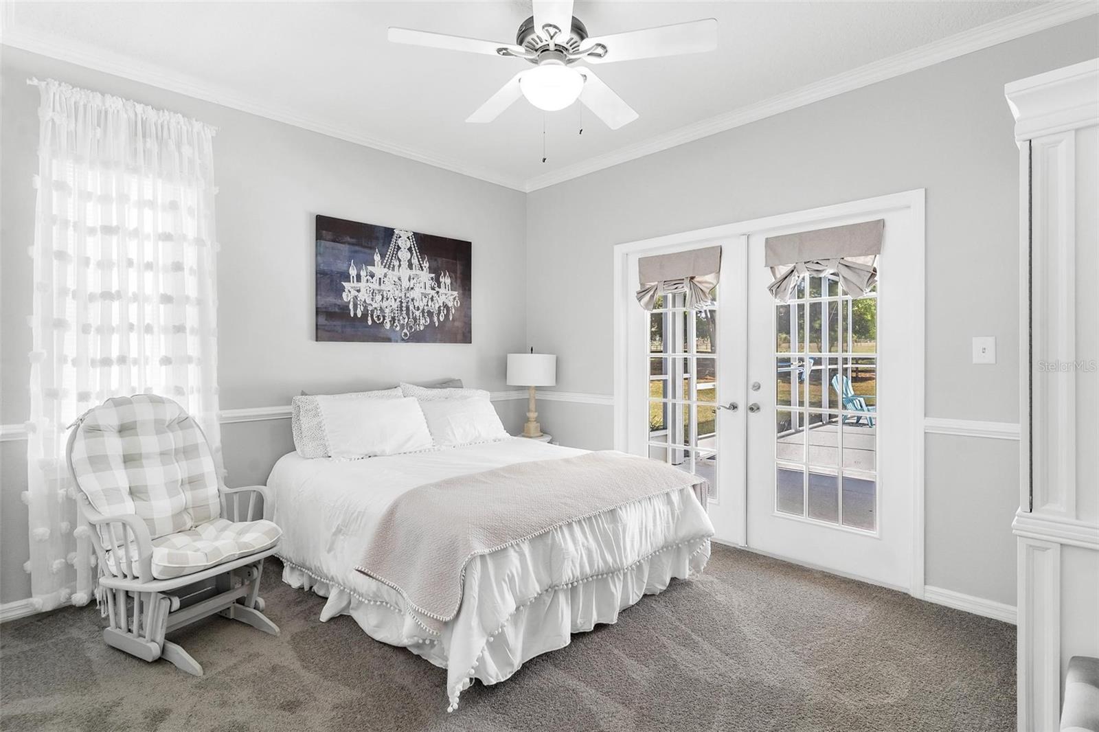COUNTRY LIVING ON 7.6 ACRES PRIVATE AND SECLUDED-3 bedroom 2 bath split plan home with SCREENED IN POOL OVERLOOKING THE COUNTRYSIDE. Custom kitchen with GRANITE COUNTER TOPS, tons of cabinet space, gas stove, and breakfast nook area. Great room with wood floors, wood burning fireplace/gas starter, with French doors leading out to the pool lanai area. Primary bedroom leading out to pool area with a large en-suite bathroom with walk in shower, garden tub, and double sinks. 2 additional oversized bedrooms with newly remodeled guest bath with huge walk in shower 7X5 with double shower heads. Inside laundry and mud room. Oversized double car garage with side entry. Home is situated on 7.6 acres fenced and cross fenced with several pastures. BARN WITH 4 STALLS 12X11 WITH STORAGE AREA 36x24 AND/or TACK ROOM. PROPERTY IS SURROUNDED BY MAJESTIC OAKS WITH COUNTRY VIEWS. EASY COMMUTE TO ORLANDO AREA CLOSE TO HWY 46 AND THE 429. BRING YOUR FAMILY AND HORSES AND ENJOY THE PEACE AND QUIET OF COUNTRY LIVING.