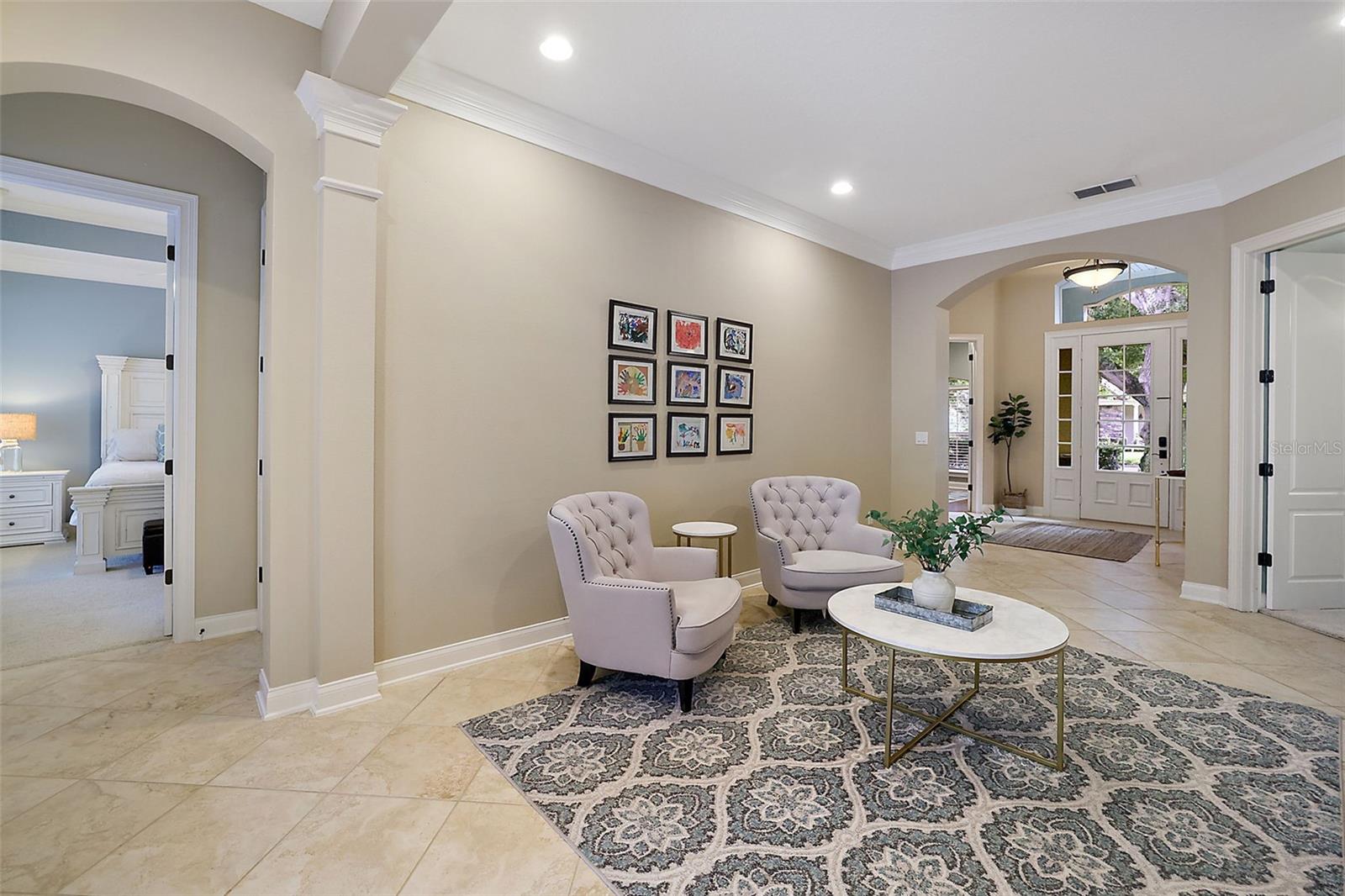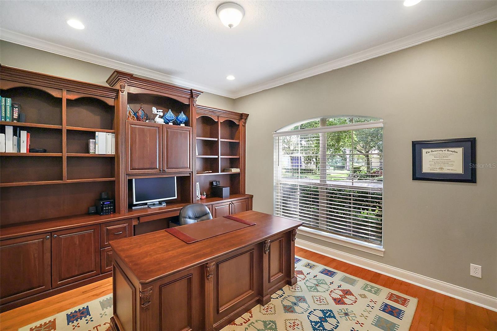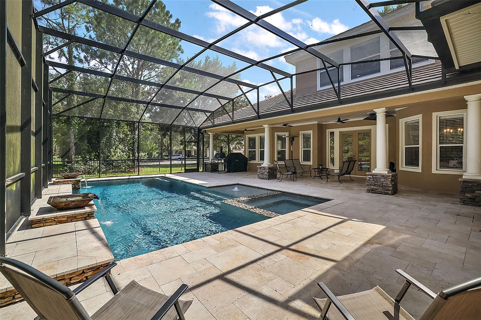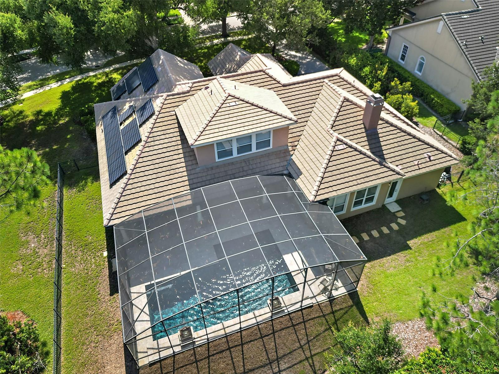 NEW TILE ROOF being installed (Est: September) Introducing this stunning home with 5 bedrooms, 4 full baths, an office, a bonus/media room, a private pool, and SOLAR ENERGY (fully paid off). Located in the exclusive, gated, championship golf community of Red Tail Country Club in the fabulous Heathrow Country Estates. This home is perfectly situated on an oversized corner lot, nearly half an acre on a cul-de-sac. The floor plan features an office at the front of the home, a spacious living room overlooking the backyard, an open kitchen, and a large great room with french doors that lead to the screened HEATED POOL & SPA, as well as a spacious covered lanai. The bedrooms are arranged in a split floor plan, with the primary bedroom on the first floor featuring a large en-suite bathroom including dual separate vanity and sinks, a garden tub, an oversized stand-alone shower and large walk-in closet. The additional guest bedrooms are located on the opposite side of the home. Two of the bedrooms share a jack and jill bath with separate bath/shower combo, while another bedroom has its own full bath. Additionally, there is a built-in study/homework station just outside the bedrooms. Upstairs, the giant bonus/media features a full bathroom, making this space truly flexible for any needs. The kitchen boasts 42” cabinets, granite countertops, built-in office shelving, stunning natural light from windows, stainless steel GE appliances, and a beautifully landscaped yard. The home also has a three-car garage, with one double and one single, equipped with an electric car hook-up. Come enjoy the community amenities including fitness center, pool, walking paths, and playgrounds. RedTail Golf Club offers championship golf, tennis and a community restaurant and bar with fire pit. With easy access to Central Florida attractions, restaurants, and airports via the 429 Wekiva Parkway.