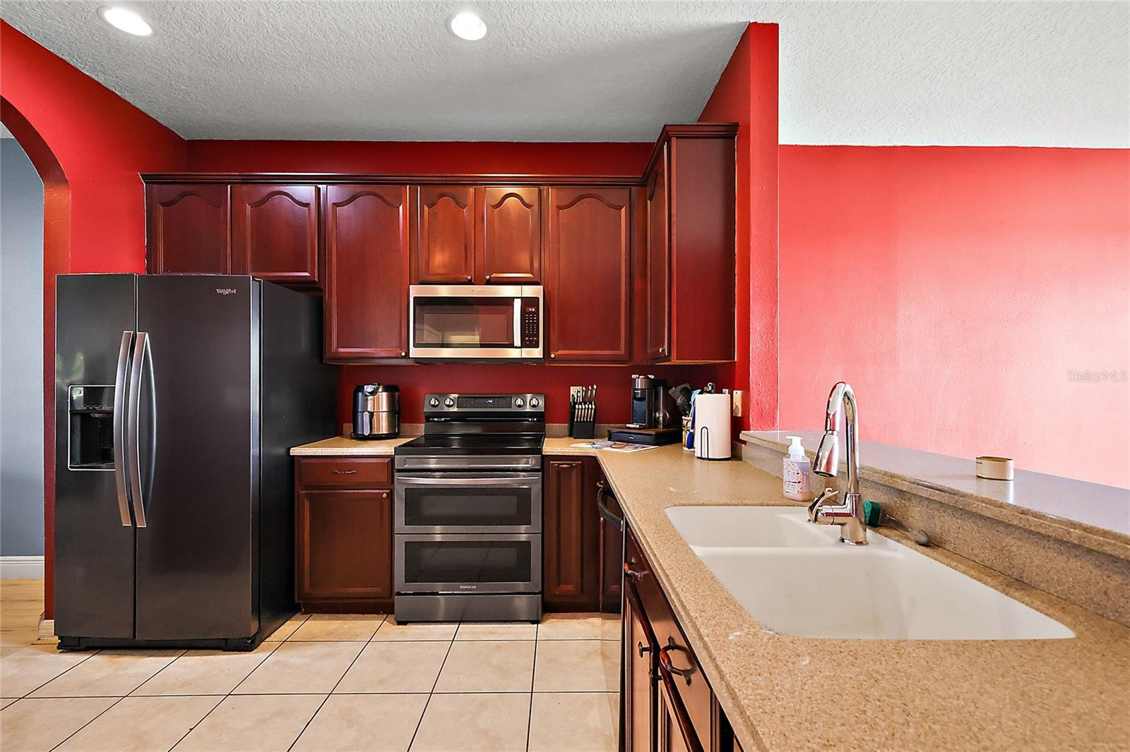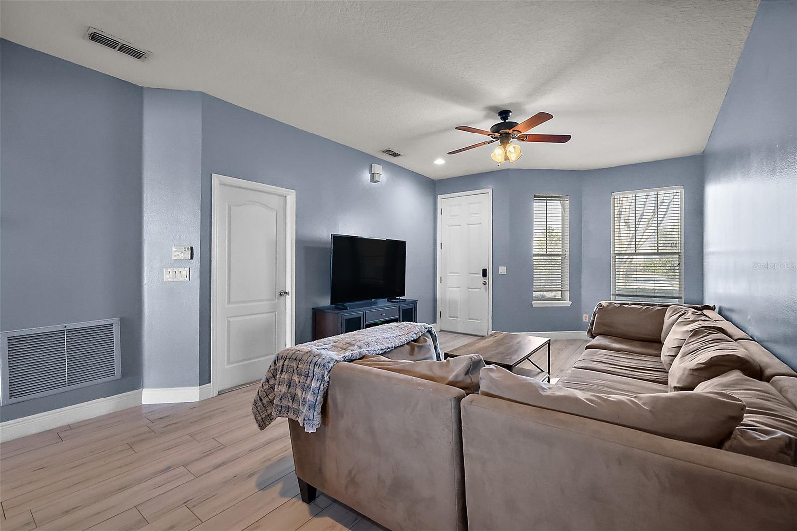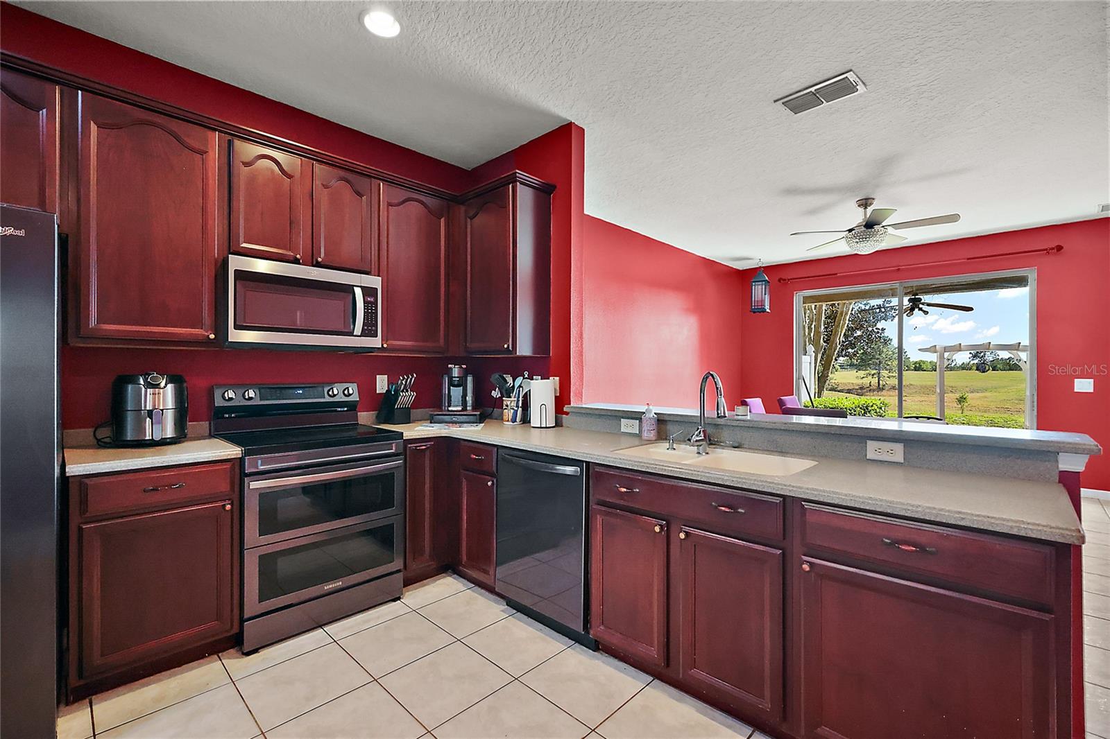 Welcome home to your maintenance free lifestyle on the 9th hole of the Eagle Dunes Golf Course! This gated golf community takes care of everything for you, including exterior maintenance, roof, irrigation and landscaping along with top notch amenities; golf course, pool, fitness center, tennis / basketball courts, clubhouse, security and more! Pulling up to your townhome, you will notice a new roof (2024), paver driveway, and stunning stone work. Walking in your front door your greeted with fresh interior paint, new tile floors in the large (12x22) living area, and new vinyl plank flooring in the three bedrooms. An open kitchen with breakfast bar sits in between your living area and family room (currently being used as a dining area). Corian Countertops and stainless appliances are a plus. The kitchen and family room areas, along with Primary Bedroom Suite have views of the Golf Course. An outdoor patio allows you to enjoy the views all year round. The community hosts a food truck night and farmers markets. The Sorrento Publix Plaza is also within walking / golf cart distance for an amazingly convenient shopping setup. Come take a look today while this home lasts!