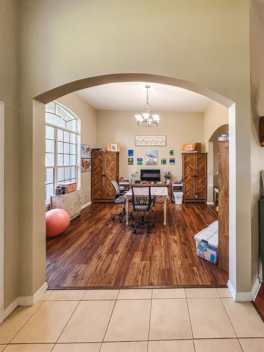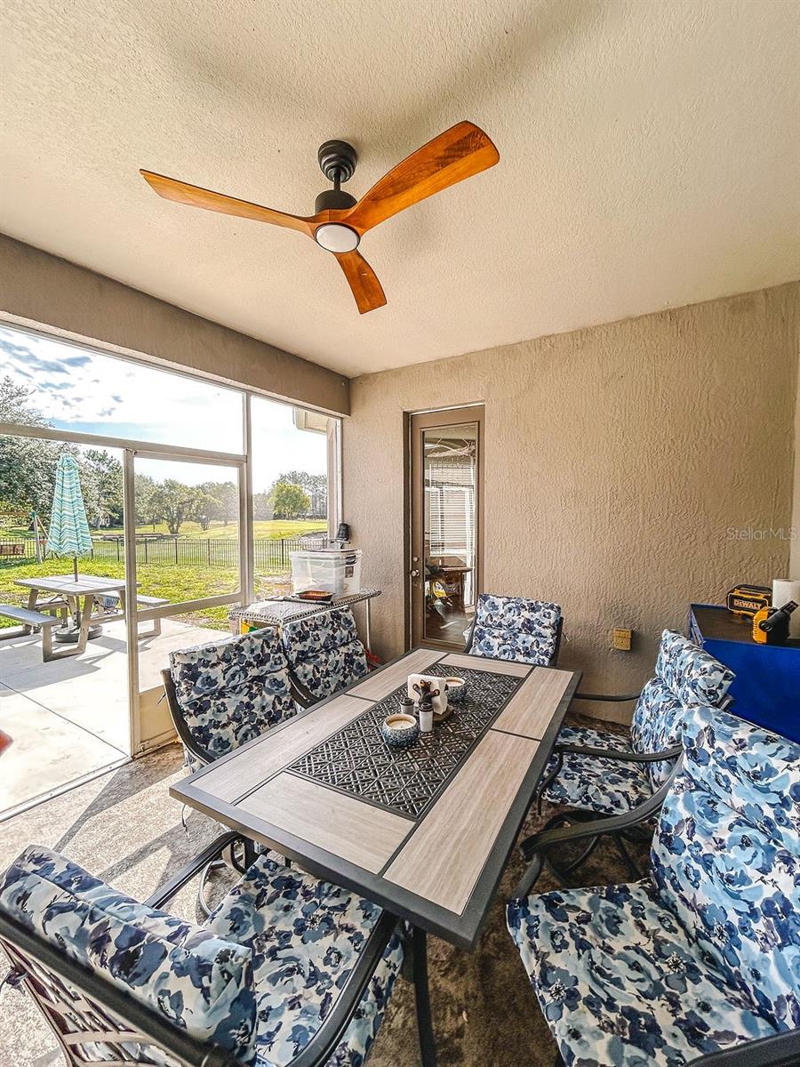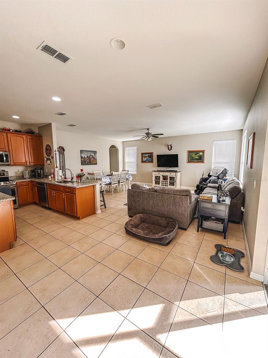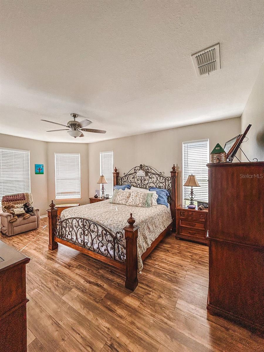 Nestled within the serene and gated community of Sorrento Springs, 33818 Venice Lane offers a spacious 4-bedroom, 3-bathroom home with 3,035 sq ft of living space on a 0.65-acre lot. Built in 2005, this residence boasts a three-way split floor plan, high vaulted ceilings, and an open-concept design, ensuring both privacy and a sense of openness. The gourmet kitchen is a chef's delight, featuring new granite countertops, 42" crown-molded cabinetry, a central island, and a breakfast bar that seamlessly flows into the family room. Sliding glass doors lead to a covered and screened lanai, perfect for relaxing while overlooking the 5th hole green and 6th tee of the Eagle Dunes Golf Course. The expansive backyard is fully fenced and includes a paver patio, ideal for outdoor entertaining. Additional highlights include a separate den/office, formal living and dining rooms, a three-car garage, and recent updates such as a 2021 roof and a 2019 HVAC system. Residents of Sorrento Springs enjoy a host of amenities, including a community pool, clubhouse, fitness center, tennis courts, playground, and engaging monthly events like food trucks and holiday golf-cart parades. Conveniently located just a short drive from Mount Dora and Downtown Eustis, and with easy access to the 429, this home offers both tranquility and accessibility in one exceptional package.