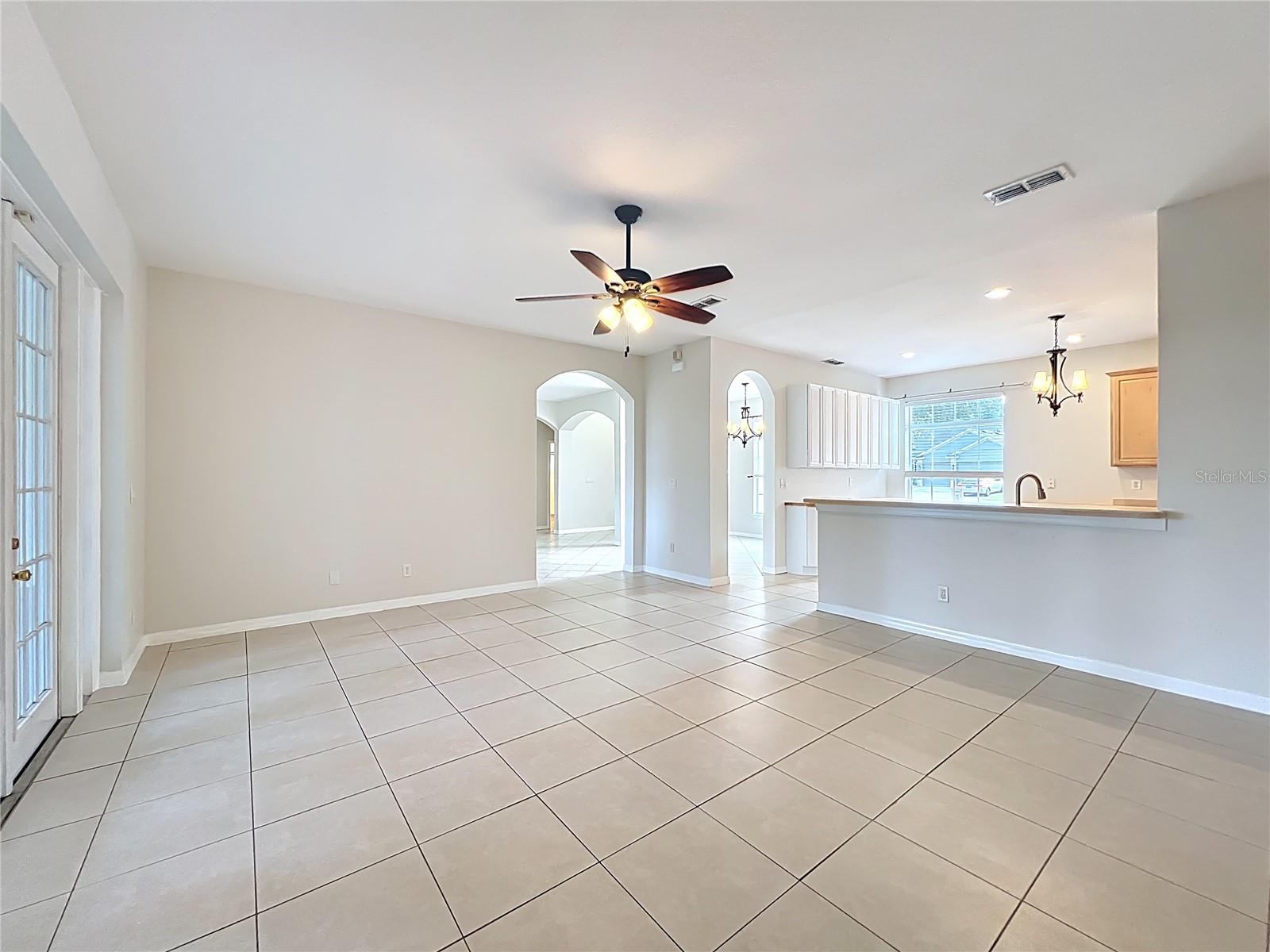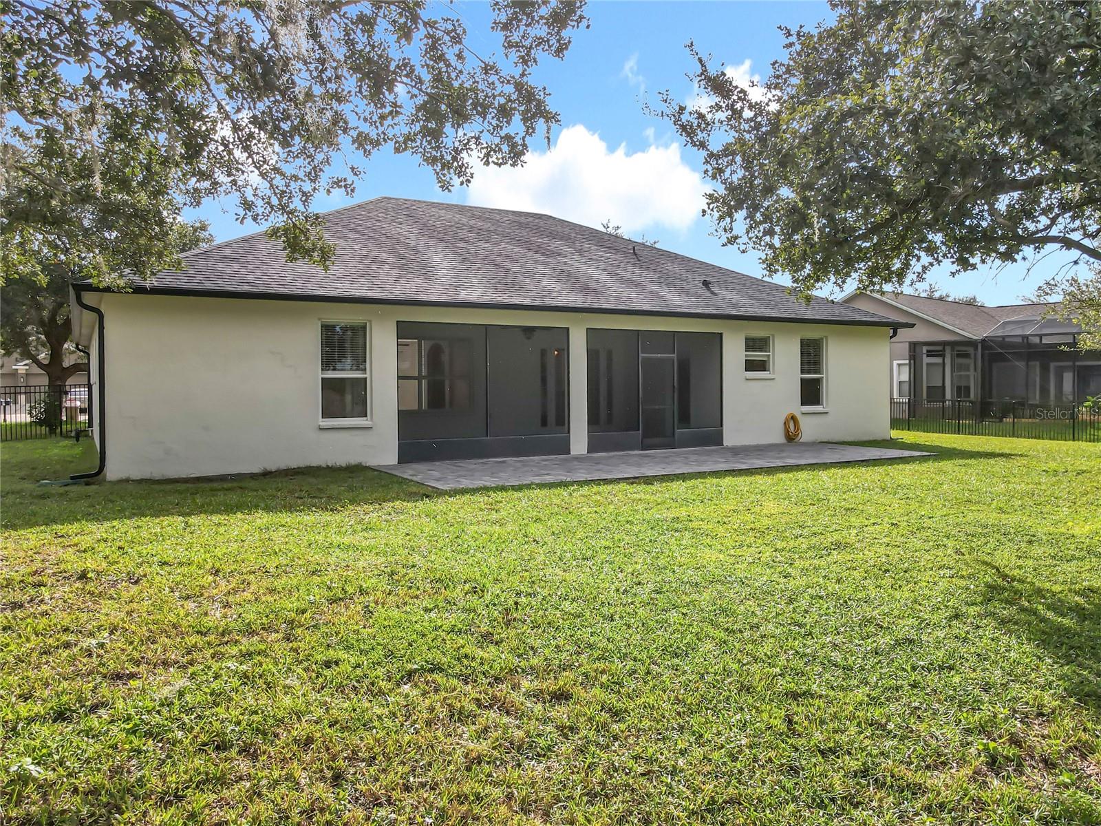 Beautiful 4-Bedroom, 3-Bath Home situated on a premier golf course lot with breathtaking golf views and spectacular sunsets! A brand-new roof with gutters and downspouts has just been installed, along with a 36’ x 12’ paver patio, perfect for relaxing outdoors and enjoying the scenery. Inside, the open and bright floor plan features high ceilings, ceiling fans, ceramic tile, and laminate flooring throughout. The 16’ x 13’ kitchen is the heart of the home, designed with a large center island, breakfast bar, abundant cabinetry, recessed lighting, Corian countertops, and built-in cutting board surfaces. It flows seamlessly into the large family room, where French doors open to a 25’ x 12’ covered screened-in porch. Spacious primary suite (15x13) with a large walk-in closet, garden tub, dual vanity, and tiled walk-in shower. Guest bedrooms are nicely sized, with one bedroom and full bath located on the same side as the primary suite, perfect for in-laws or guests. Additional highlights include a spacious indoor laundry room with closet space and a 3-car garage with built-in storage shelving. The beautiful, oversized lot is surrounded by lush landscaping and is fully fenced, creating a very private backyard retreat. Situated in a sought-after gated golf community with fantastic amenities, this home is also conveniently near the back gate, providing quick access to grocery stores, pharmacies, and restaurants just minutes away. Quick commute to downtown Orlando and all the theme parks, only 40 minutes away. Orlando International Airport is a 50-minute commute. East coast beaches are only an hour away. And 20 minutes to historic downtown Mount Dora. Call today for your private tour
