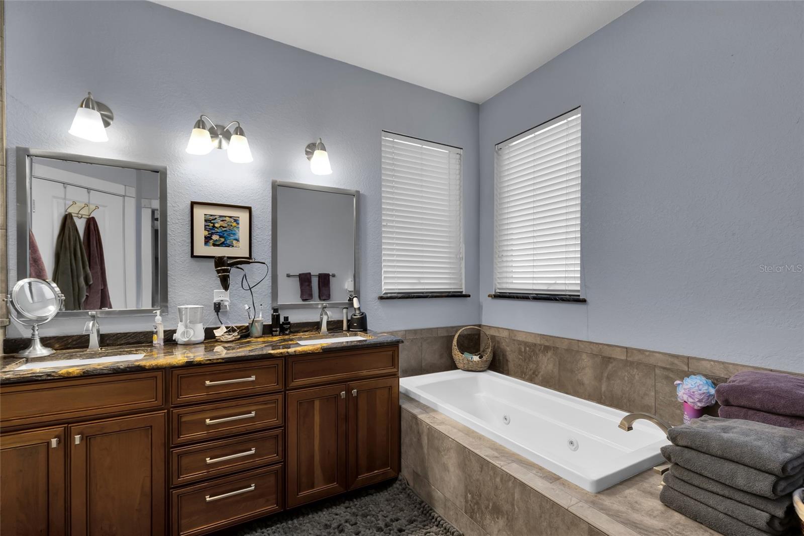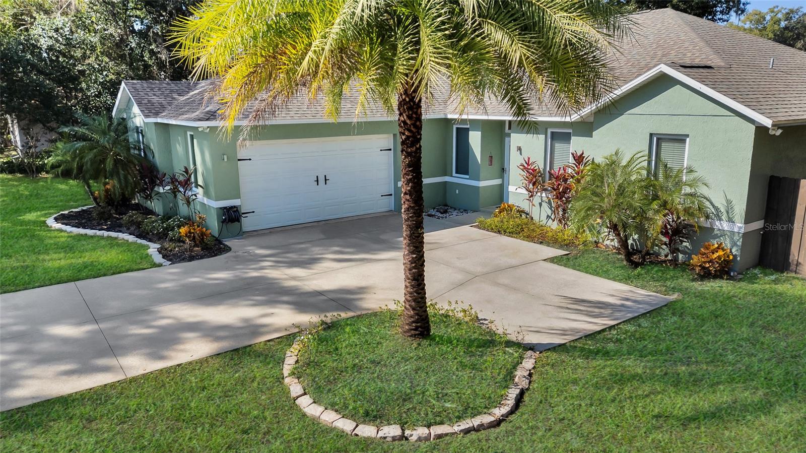 Welcome to this beautifully updated, single-level home nestled on a private 1/2-acre corner lot in the highly desirable Sorrento / Mount Plymouth golf-cart community — with no HOA. Built in 2003, this thoughtfully designed 3-bedroom, 2.5-bath home with a versatile bonus room offers nearly 1,900 square feet of comfortable living space and the perfect blend of modern upgrades and relaxed Florida living. At the heart of the home is a spacious open-concept living area featuring vaulted ceilings and seamless flow between the kitchen, dining, and living spaces — ideal for entertaining. The custom kitchen is a standout with granite countertops, custom cabinetry, in-wall oven and microwave, stainless appliances, induction cooktop, slate tile flooring, and wood-look tile extending through the dining and living areas. 9-foot ceilings throughout the rest of the home enhance the open and airy feel. The primary suite is generously sized and offers his-and-hers walk-in closets along with a beautifully remodeled en-suite bath featuring dual vanities, a tiled walk-in shower, a jetted garden tub, and a separate toilet area. Step outside to enjoy a fully fenced, ultra-private backyard with board-on-board construction, stained for durability, and equipped with both a single 5-foot gate and a 10-foot double gate. The covered porch comfortably accommodates a grill and flat-top and opens to a large 22’ x 27’paver patio, making this home ideal for hosting gatherings, parties, and outdoor entertaining. A 12’ x 16’ storage shed, painted and roofed to match the home, includes double doors and a ramp for easy equipment access. This home is also packed with smart and practical upgrades, including Ring doorbell and floodlight cameras, Nest thermostat, Lift Master smart garage door opener, generator outlet, Tesla charger, half bath and a 2-ton mini-split system in the garage with a 5-year warranty. Major updates provide peace of mind: roof replaced in 2022 with a 50-year dimensional shingle, Trane XR 16-SEER HVAC and water heater replaced in 2023, and kitchen appliances updated in 2023. Ideally located just 12 minutes to Sanford, 12 minutes to Mount Dora, and 35 minutes to Disney and Orlando attractions, with quick access to SR-429, this home offers space, privacy, modern amenities, and an unbeatable Central Florida location.