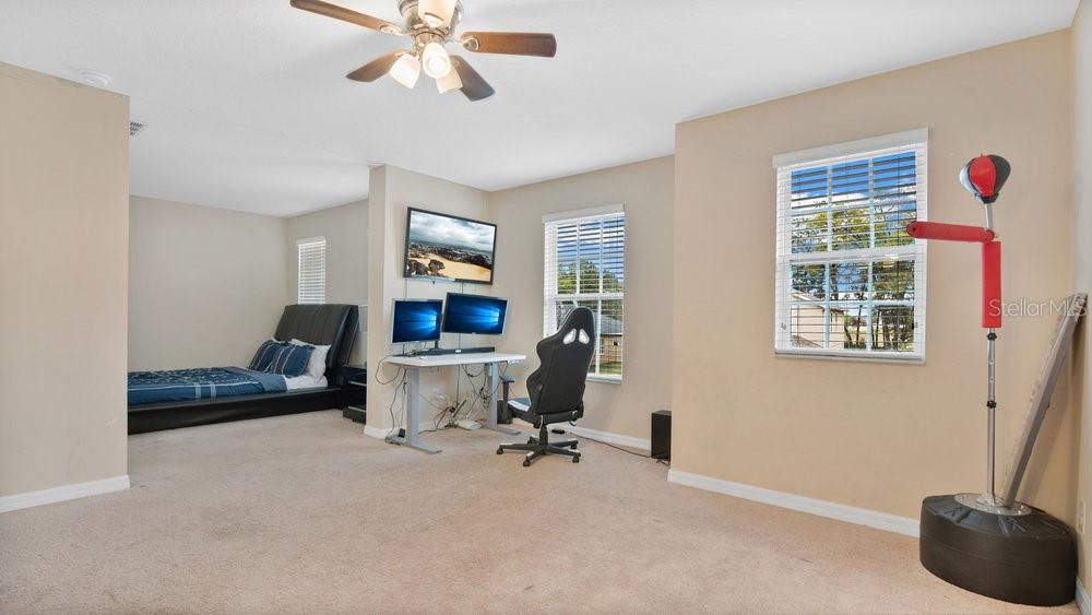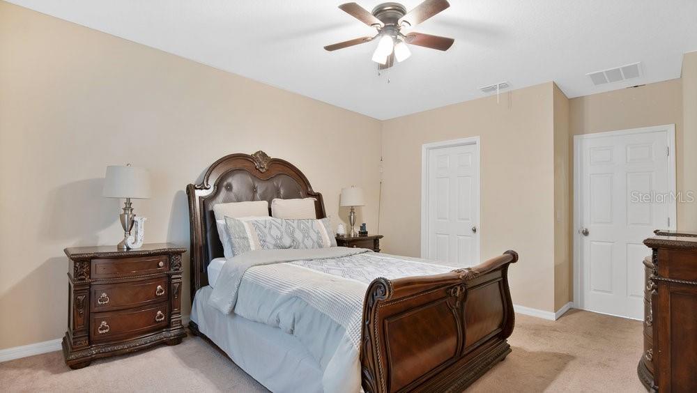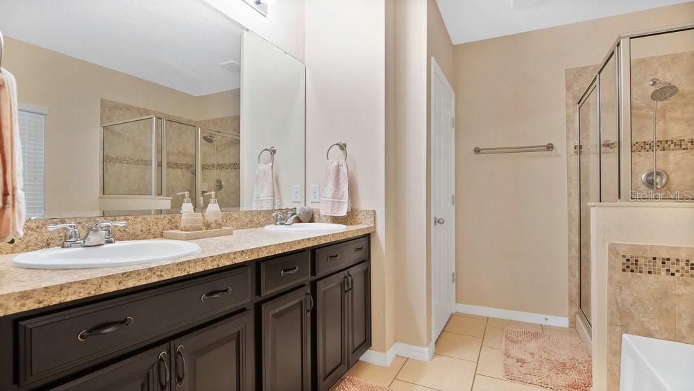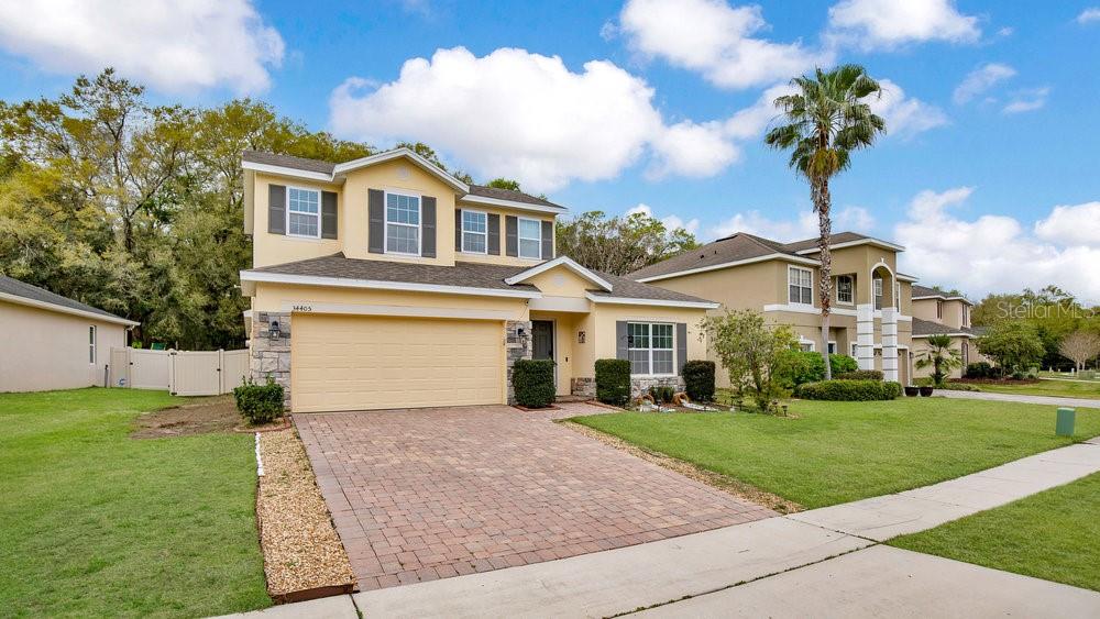 Welcome to this lovely, double master suite, 4 bed 3 bath home in the gated Golf community of Sorrento Springs. The upstairs is just a second Master suite/Bonus room with attached bath! The versatile floor plan of the Monica Grande has made it a top choice among buyers. The second floor of the home is the perfect space for a teenager, home office, game room or in law. The first floor features a well appointed master suite, formal living/dining room, open concept kitchen overlooking the family room plus 2 additional bedrooms and a flex space. Upgrades include 42 inch Expresso cabinets with crown molding, granite counter top in the kitchen, stainless steel appliances and ceramic tile extended throughout the first floor living space. The covered lanai overlooks a beautiful treed conservation area and good sized back yard. This lovely home features paved drive and walkways, giving the home a great curb appeal. Please schedule you showing today!