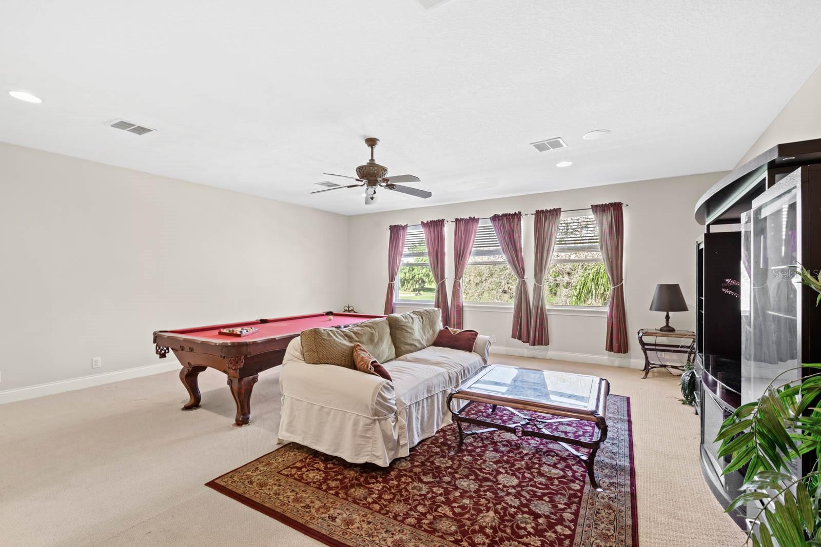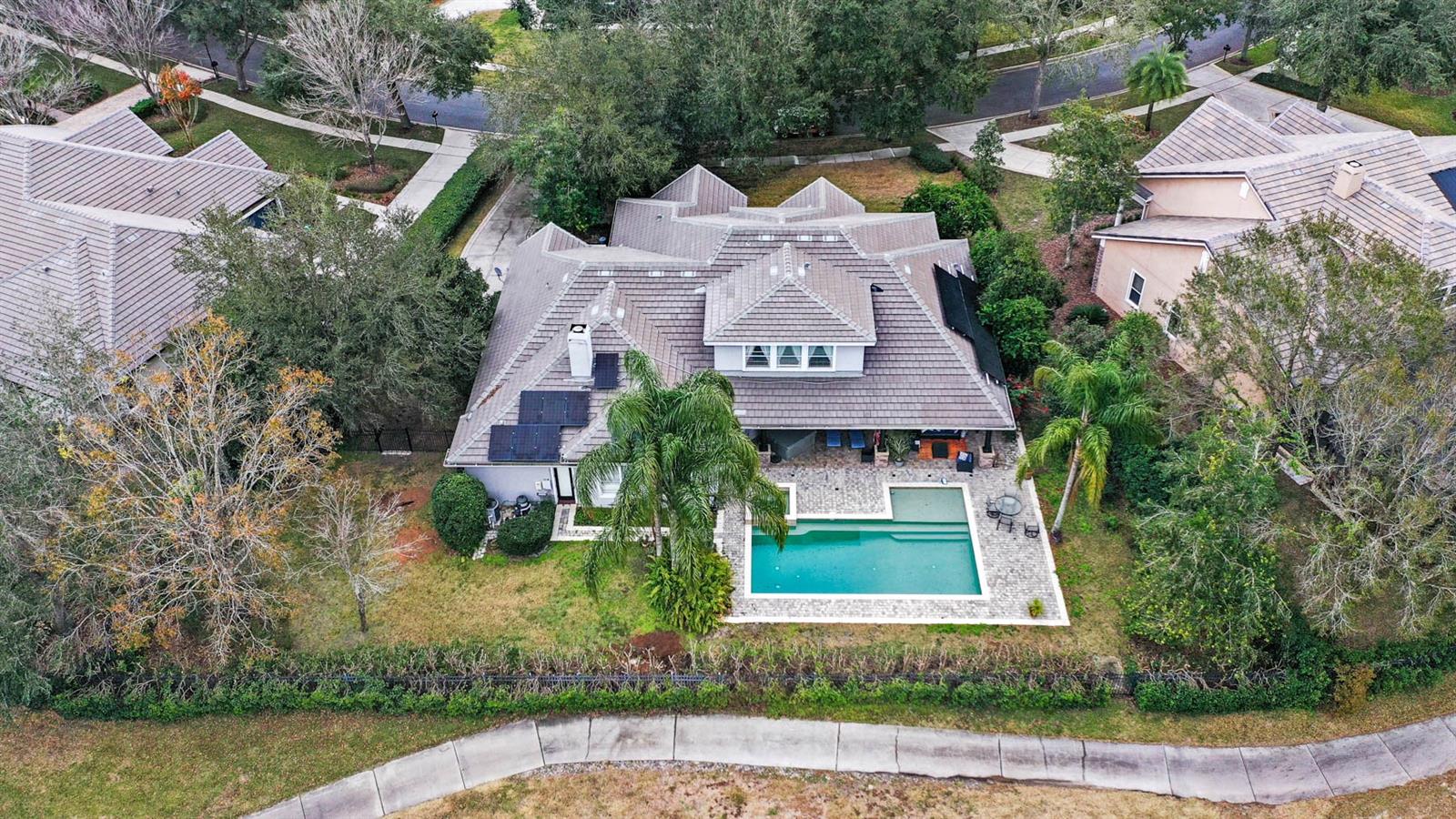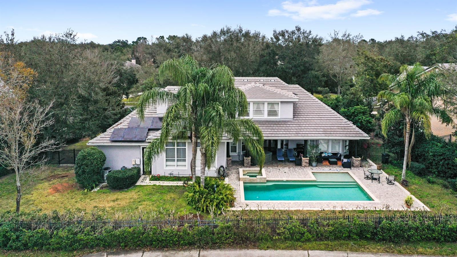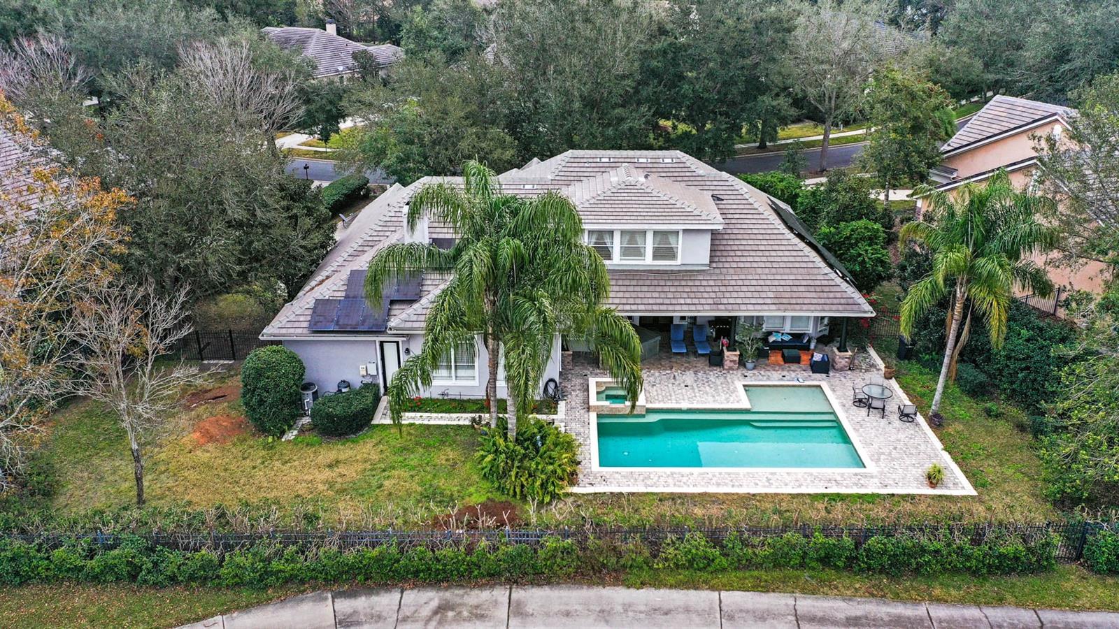 Welcome home to 25515 Hawks Run Lane! SLATE TILE ROOF REPLACED IN 2023! Located within the coveted gated and golf course community of Red Tail (Heathrow Country Estates), this David Weekley home offers it all. This 4,000 square foot pool home is situated on 0.44 acres and offers panoramic views of the fairway on the 2nd hole of the golf course. The home boasts 4 bedrooms, 4 full bathrooms, an office and an upstairs bonus room. When you enter through the grand double door entry, you are welcomed into the foyer with soaring ceilings. To the right is the formal dining room and to the left is the dedicated office with french doors. Straight ahead is the formal living room with views directly out to the private pool and spa. A stand out feature of this home is the split floor plan. On the left side of the home is the first floor primary suite with a large bay window overlooking the pool and golf course. The primary extends into the en-suite with a soaking tub, dual vanities, walk-in shower and large walk-in closet. The right side of the home offers 3 guest bedrooms. One of the bedrooms is situated with its own full bathroom, as well as an access door to the lanai. The remaining 2 bedrooms feature a Jack-and-Jill bathroom with separate vanities. The kitchen is situated in the center of the home and is designed to be the ultimate entertaining space. The kitchen features a large island and overlooks all of the main living areas of the home, making a great feel for the open concept kitchen, living room and breakfast nook. The living room features extended ceiling height, large windows and a beautiful fireplace. Upstairs is the bonus room, which can also double as an oversized 5th bedroom, because there is a full bathroom upstairs. The outdoor area is spacious and offers an incredible pool that goes all the way to 8ft in depth. The slate tile roof was replaced in 2023! The home includes a fully paid off solar panel system. Convenience is a huge part of living in Red Tail! Located only minutes to the 429 Expressway and 15 mins from Downtown Mount Dora, access in and out is easy. PLUS the Wekiva parkway extension is fully open, allowing you to drive from Red Tail all the way to I4 in Lake Mary in only 15 minutes. This is your chance to take advantage of all that Red Tail has to offer, while also enjoying all of the nearby amenities that living in Sorrento brings to you. Call today to schedule your private tour.