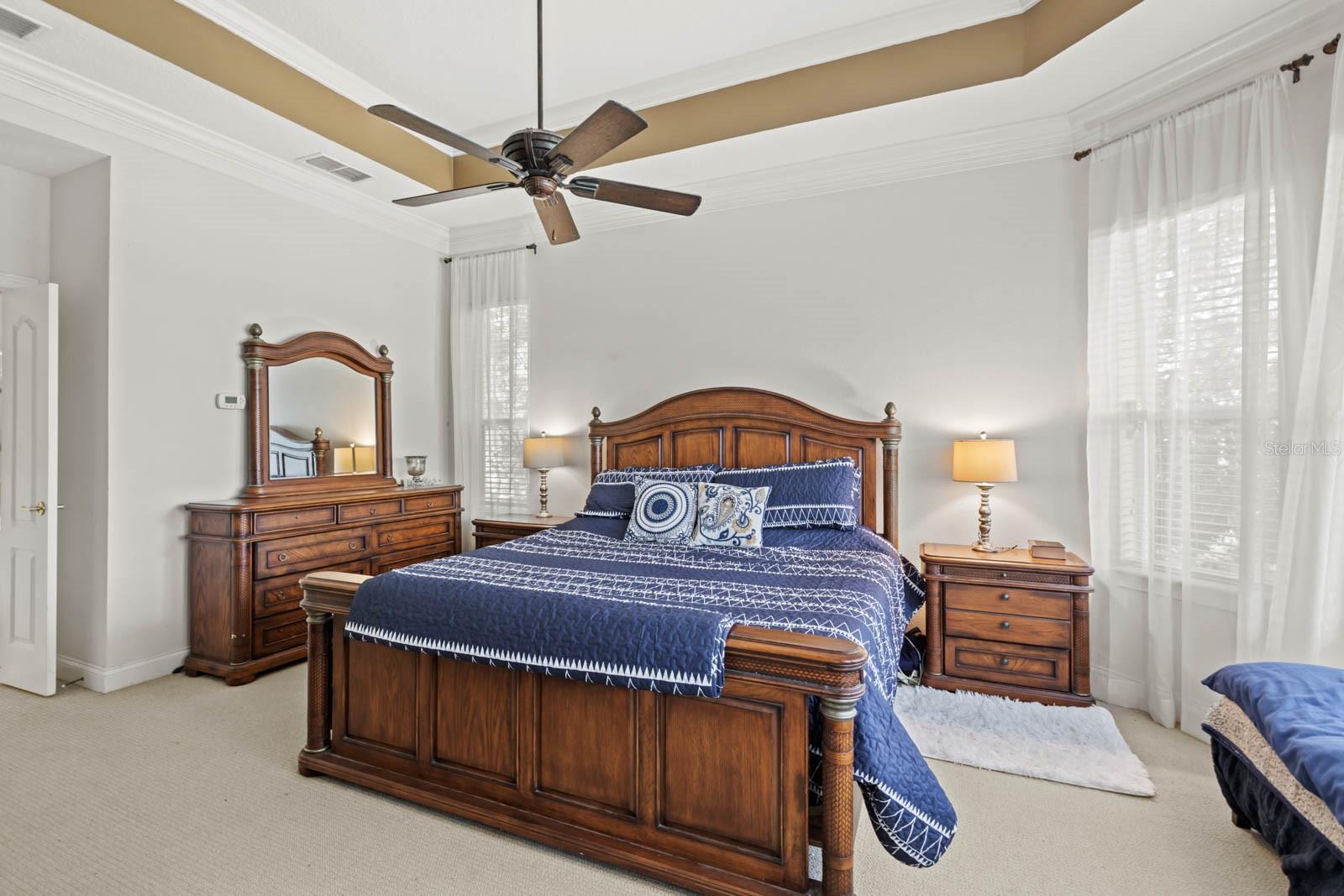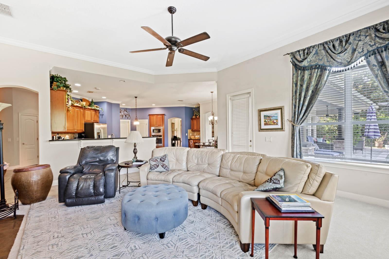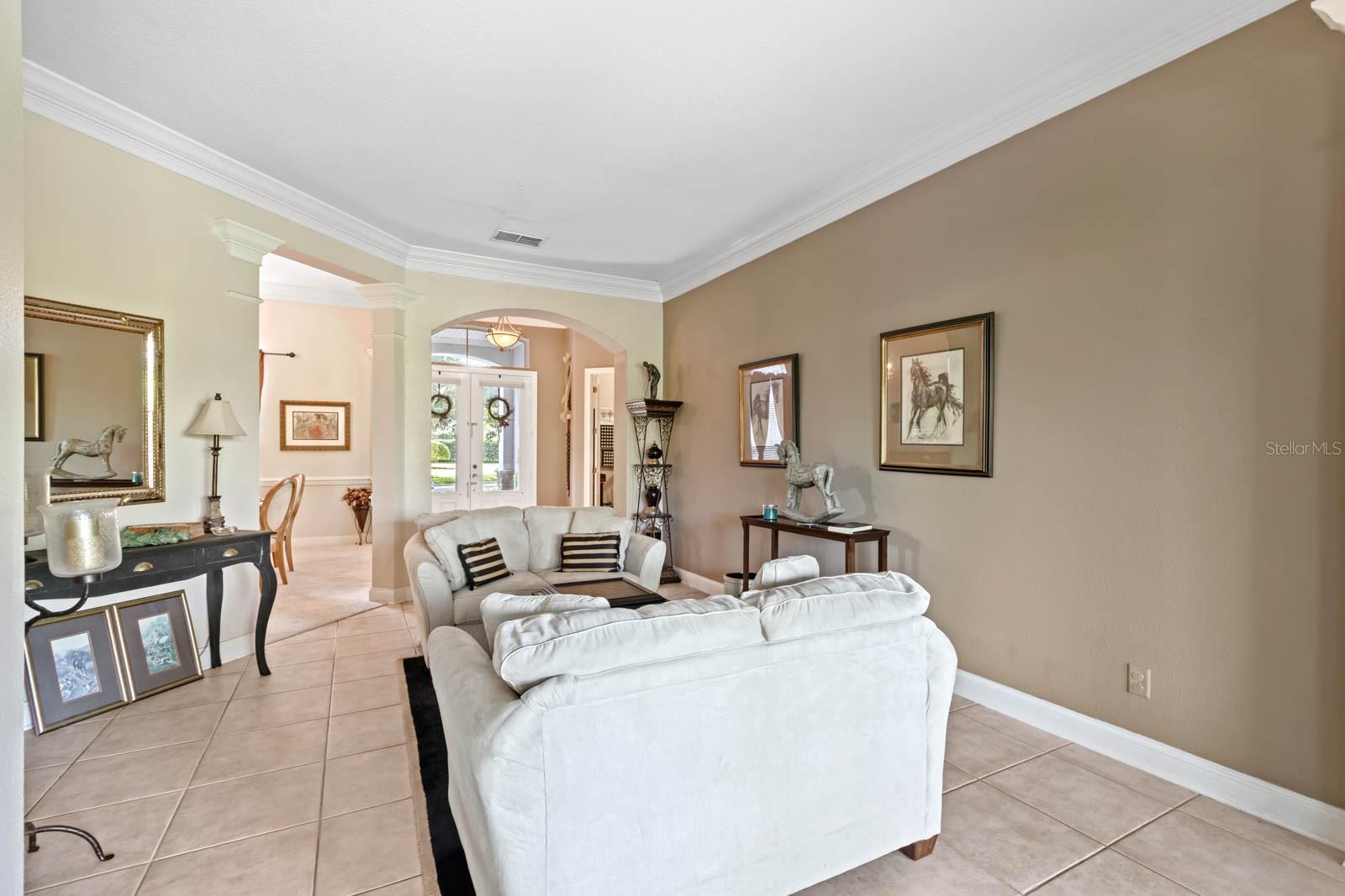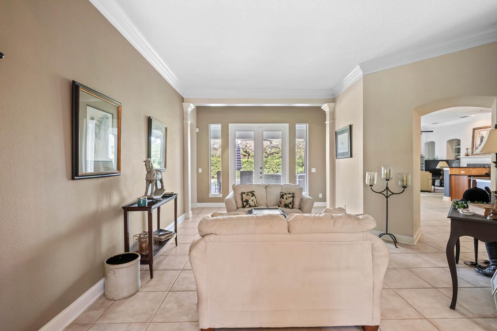 Welcome home to 25515 Hawks Run Lane! SLATE TILE ROOF REPLACED IN 2023! Located within the coveted gated and golf course community of Red Tail (Heathrow Country Estates), this David Weekley home offers it all. This 4,000 square foot pool home is situated on 0.44 acres and offers panoramic views of the fairway on the 2nd hole of the golf course. The home boasts 4 bedrooms, 4 full bathrooms, an office and an upstairs bonus room. When you enter through the grand double door entry, you are welcomed into the foyer with soaring ceilings. To the right is the formal dining room and to the left is the dedicated office with french doors. Straight ahead is the formal living room with views directly out to the private pool and spa. A stand out feature of this home is the split floor plan. On the left side of the home is the first floor primary suite with a large bay window overlooking the pool and golf course. The primary extends into the en-suite with a soaking tub, dual vanities, walk-in shower and large walk-in closet. The right side of the home offers 3 guest bedrooms. One of the bedrooms is situated with its own full bathroom, as well as an access door to the lanai. The remaining 2 bedrooms feature a Jack-and-Jill bathroom with separate vanities. The kitchen is situated in the center of the home and is designed to be the ultimate entertaining space. The kitchen features a large island and overlooks all of the main living areas of the home, making a great feel for the open concept kitchen, living room and breakfast nook. The living room features extended ceiling height, large windows and a beautiful fireplace. Upstairs is the bonus room, which can also double as an oversized 5th bedroom, because there is a full bathroom upstairs. The outdoor area is spacious and offers an incredible pool that goes all the way to 8ft in depth. The slate tile roof was replaced in 2023! The home includes a fully paid off solar panel system. Convenience is a huge part of living in Red Tail! Located only minutes to the 429 Expressway and 15 mins from Downtown Mount Dora, access in and out is easy. PLUS the Wekiva parkway extension is fully open, allowing you to drive from Red Tail all the way to I4 in Lake Mary in only 15 minutes. This is your chance to take advantage of all that Red Tail has to offer, while also enjoying all of the nearby amenities that living in Sorrento brings to you. Call today to schedule your private tour.