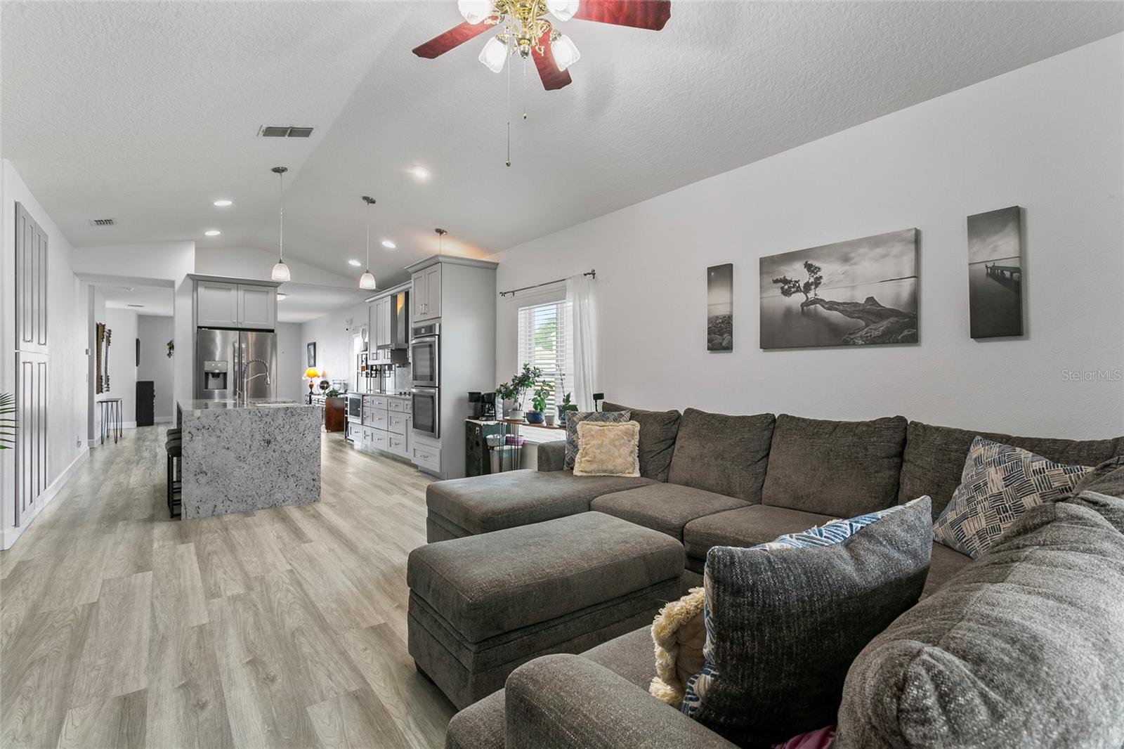 Oh yes, Finally - A Lovely Home in the Eagle Dunes Golf Course Community! This a Special Home, actually a Unique - likely, the only one of it's kind in Sorrento Springs! This Extra Special Property is perched on a Spacious Corner Lot that is fully fenced. As one approaches, Pride of ownership is readily seen! Motivated Sellers!! As you enter the spacious foyer, you will immediately fall in love with the uniqueness of the well laid PVC type laminate floorings. The recently remodeled gourmet kitchen with the granite countertops and "touchless" faucet by the island sink is a beauty to behold. Looking for lots of extra flex spaces, - you will find all that and more here. Enter the large master suite and observe the spacious walk -in closet, large roman tub with separate shower stall and double sinks. Venture upstairs and you will fancy the huge suite, bedroom, office space, huge walk in closet and spacious bathroom (could actually be another master suite upstairs). Venture outside and enjoy the offerings of the inviting screened porch and huge fenced back yard, plus many practical upgrades such as Rounded Corners on inside walls, etc. This might just be the perfect property for you. Motivated Sellers! Please note that the Water Treatment System and Charging Station Do Not Convey!