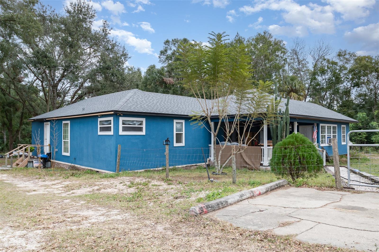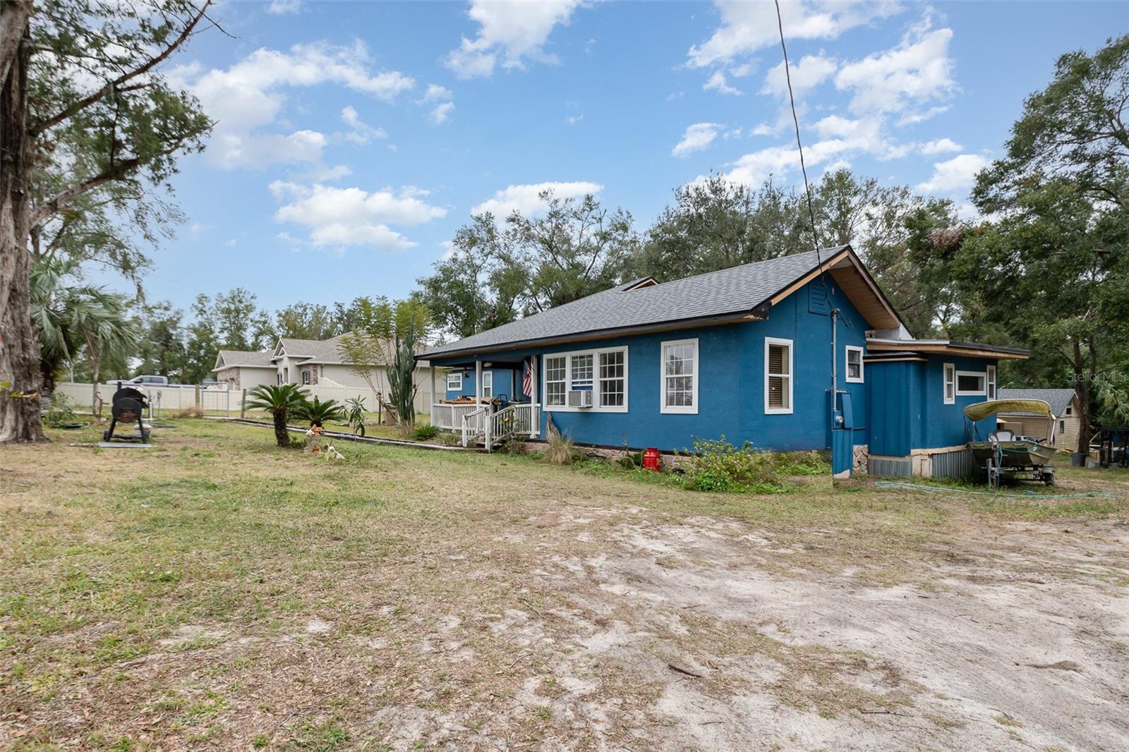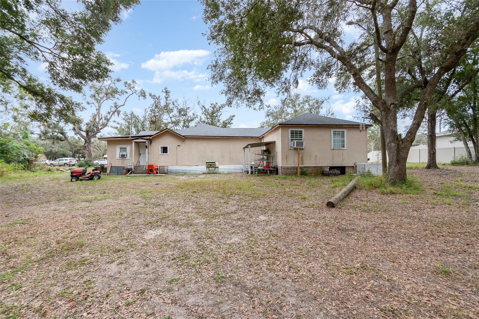 A true countryside home that alures the ideal location by being located just 15 minutes from the suburban region of Orlando. This charm features three distinct rooms, each equipped with its own bathroom and kitchen facilities. Presently, it generates a monthly rental income of $1,800 on a month-to-month lease. A NEW ROOF was installed in 2022, and the NEW well and FILTRATION SYSTEM were added in 2016. The master bedroom includes a spacious 8'x13' walk-in closet, and the master bathroom is fitted with a large jetted corner garden tub, an expansive 4'x9' walk-in shower adorned with designer ceramic tiles, and a double vanity. The room to the left of the house has been fully renovated to accommodate handicap accessibility. This presents an excellent opportunity for viewing, purchasing, and renovating.