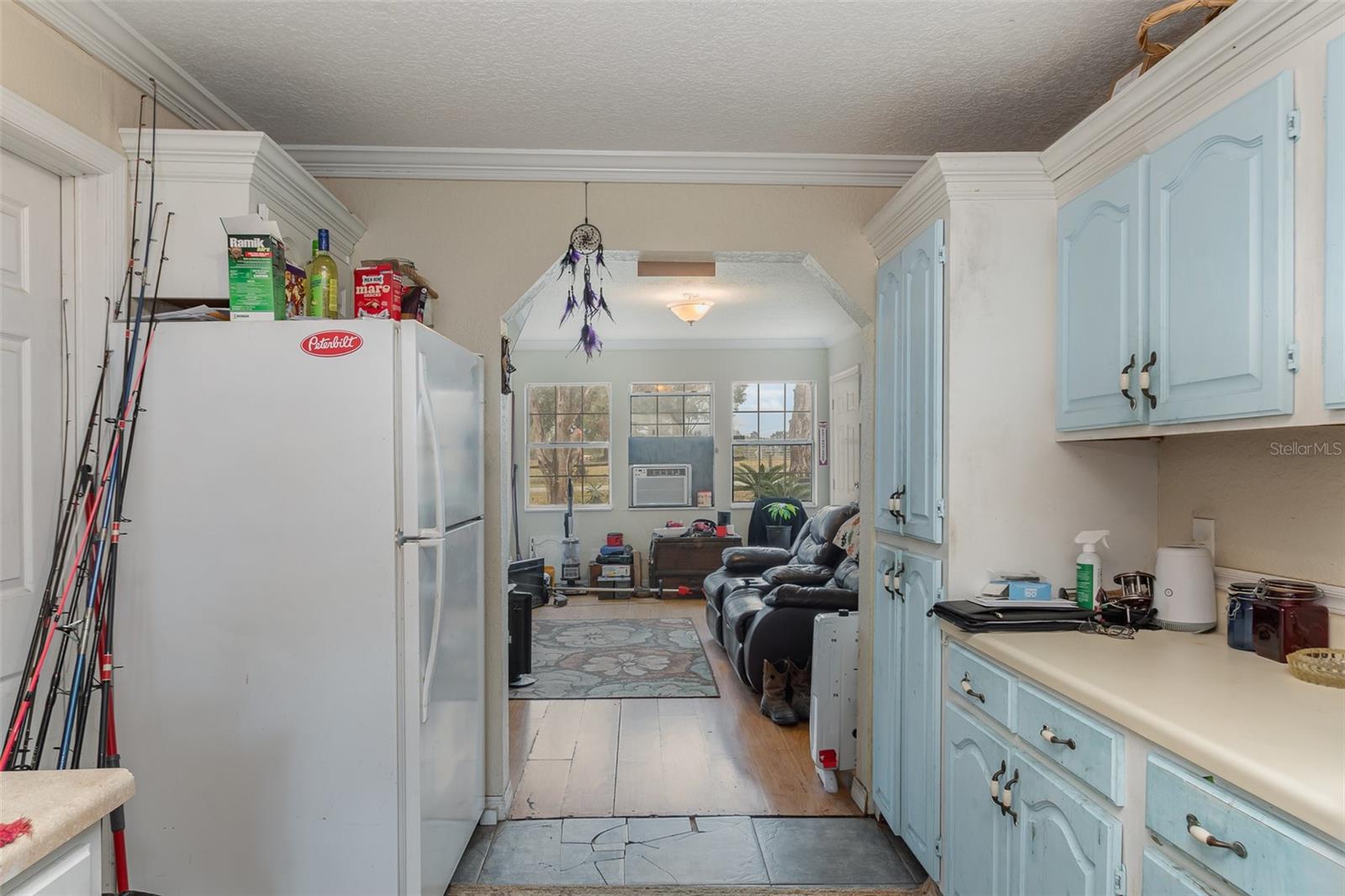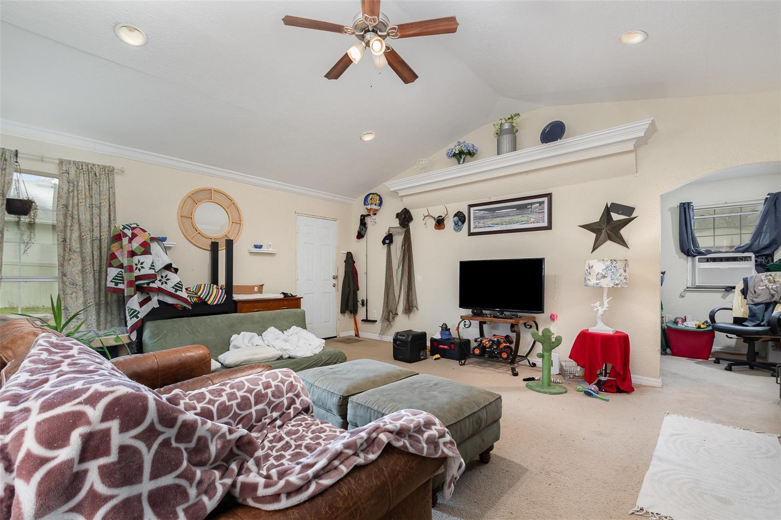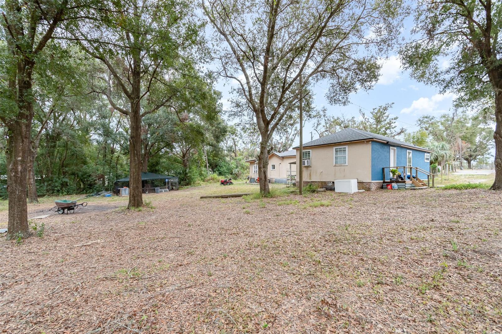 A true countryside home that alures the ideal location by being located just 15 minutes from the suburban region of Orlando. This charm features three distinct rooms, each equipped with its own bathroom and kitchen facilities. Presently, it generates a monthly rental income of $1,800 on a month-to-month lease. A NEW ROOF was installed in 2022, and the NEW well and FILTRATION SYSTEM were added in 2016. The master bedroom includes a spacious 8'x13' walk-in closet, and the master bathroom is fitted with a large jetted corner garden tub, an expansive 4'x9' walk-in shower adorned with designer ceramic tiles, and a double vanity. The room to the left of the house has been fully renovated to accommodate handicap accessibility. This presents an excellent opportunity for viewing, purchasing, and renovating.