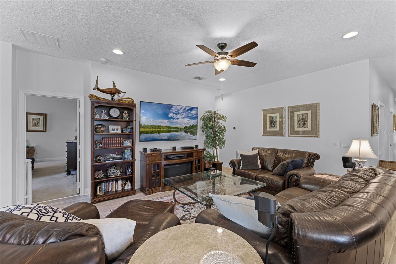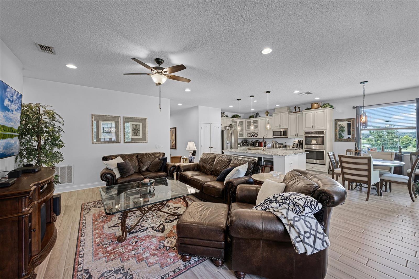 Welcome home to this impeccably maintained four bedroom three bath home with one of the best views in the neighborhood. It overlooks red tails 16th hole and water view. The beautiful craftsman home has a welcoming front porch with two rocking chairs. When you walk into the home on the left, there are two secondary bedrooms. On the right is the door accessing the large three car garage. As you continue in the home it opens to the gourmet kitchen with all the bells and whistles you'd expect in a home of this caliber. To the right is where you can access the three car garage. As you continue, it opens to the gourmet kitchen with all the bells and whistles you'd expect in a home of this caliber. Granite counters, stainless steel appliances, and a huge island that easily accommodates three barstools. It has a combination family room, dining room and sliding doors that open to the lanai where you can take in the spectacular view of the 16th hole as sandhill cranes and various species of birds descend on expansive wetland Waterview. To the right is another wetland. To the right is another secondary bedroom, making this a three-way split with the master in the rear of the home viewing the conservation area. The home sits on almost a half acre of land so you don't feel on top of your neighbor and there's plenty of room for a pool if you desire. Schedule your private showing today because it will undoubtedly be under contract within a couple days since it's attractively at $595,000.