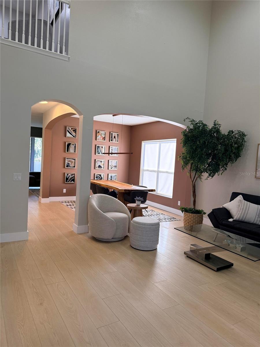 Experience elegance and comfort in this impeccably maintained four-bedroom, three-bath residence located in the heart of Sorrento, one of East Lake County’s most charming and desirable communities. This move-in-ready home combines tasteful sophistication with practical livability, offering a truly remarkable opportunity at its new, improved price. An Elegant First Impression Enter through a grand two-story foyer adorned with custom molding and rich wood stair treads. Throughout the home, luxury vinyl plank flooring provides both durability and beauty, uniting each space in seamless style. Every element reflects thoughtful design and enduring craftsmanship. Interior Highlights Owner’s Retreat: A sanctuary of comfort featuring a fireplace, deep soaking tub, waterfall shower, dual vanities, bidet, and a custom walk-in wardrobe of exceptional quality. Versatile Living Spaces: The layout includes a formal living room, an inviting family room, an open loft, and a first-floor guest or in-law suite with private bath and direct access to the backyard. Gourmet Kitchen: Designed for both daily use and gracious entertaining, this kitchen offers a large center island, Samsung appliances, and a butler’s pantry for added convenience. Refined Baths: Each bathroom evokes the tranquility of a European spa, with rainfall showers, premium finishes, and modern fixtures. Notable Enhancements This home has been updated with a number of high-value improvements, providing comfort and peace of mind for years to come: New roof (2020) and dual HVAC systems (2017