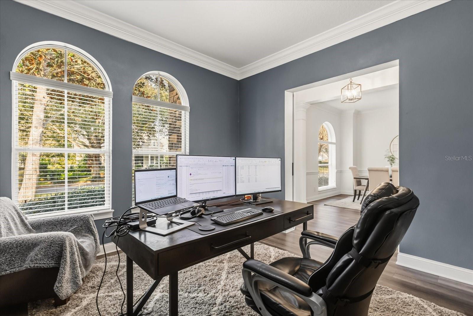 *Brand New Tile roof to be installed before closing - $70k value* Welcome to a home that blends space, serenity, and thoughtful design inside one of Central Florida’s most sought-after gated communities. From the moment you step inside, this residence feels open, airy, and exceptionally well planned, with a layout that flows effortlessly from room to room. Just off the entry, a private front office with elegant sliding doors offers the perfect space for working from home, a quiet study, or a creative retreat, designed for productivity without sacrificing style. Beyond the entry, the home opens into a beautifully upgraded kitchen that serves as the heart of the home. With ample counter space, an eat-in area, bar seating, and seamless connection to multiple dining spaces, it is ideal for everyday living and entertaining alike. A dedicated dinette and a formal dining room provide flexibility for everything from casual mornings to elegant gatherings. Between bedrooms two and three, a versatile flex or media space with stunning built-in shelving adds another layer of functionality, perfect as a library, media room, lounge, or tailored to your lifestyle needs. The oversized primary suite is a true retreat, offering generous space to unwind and recharge. Pride of ownership is evident throughout the home, with meticulous care and thoughtful maintenance at every turn, including the installation of a brand new tile roof prior to closing, providing significant peace of mind for the future homeowner. Step outside to enjoy Florida living at its finest. The rear patio overlooks a beautifully opened backyard, enclosed with elegant wrought-iron fencing. The current owner has carefully curated the landscape, removing overgrowth and nurturing the remaining trees to create a more expansive, light-filled outdoor setting that is both serene and inviting. A side entry three-car attached garage adds convenience and storage, while the oversized lot offers a sense of privacy rarely found so close to modern amenities. Located within the RedTail community, this home delivers the benefits of a golf neighborhood without the requirement of a golf membership. Residents are drawn to RedTail for its spacious homesites, gated privacy, and exceptional value. Social memberships allow the enjoyment of the clubhouse, bar, pool, and on-site dining...ideal for connecting with neighbors or enjoying a relaxed evening close to home. Despite its peaceful, resort-like atmosphere, RedTail is exceptionally well positioned. With quick access to the new expressway, residents enjoy effortless connectivity to Orlando, area airports, medical centers, dining, and shopping, making this an ideal option for full-time residents, second-home buyers, or international purchasers seeking tranquility without isolation. This is more than a home. It is a lifestyle defined by space, flexibility, and quiet luxury, all within a beautifully maintained, gated Central Florida community.