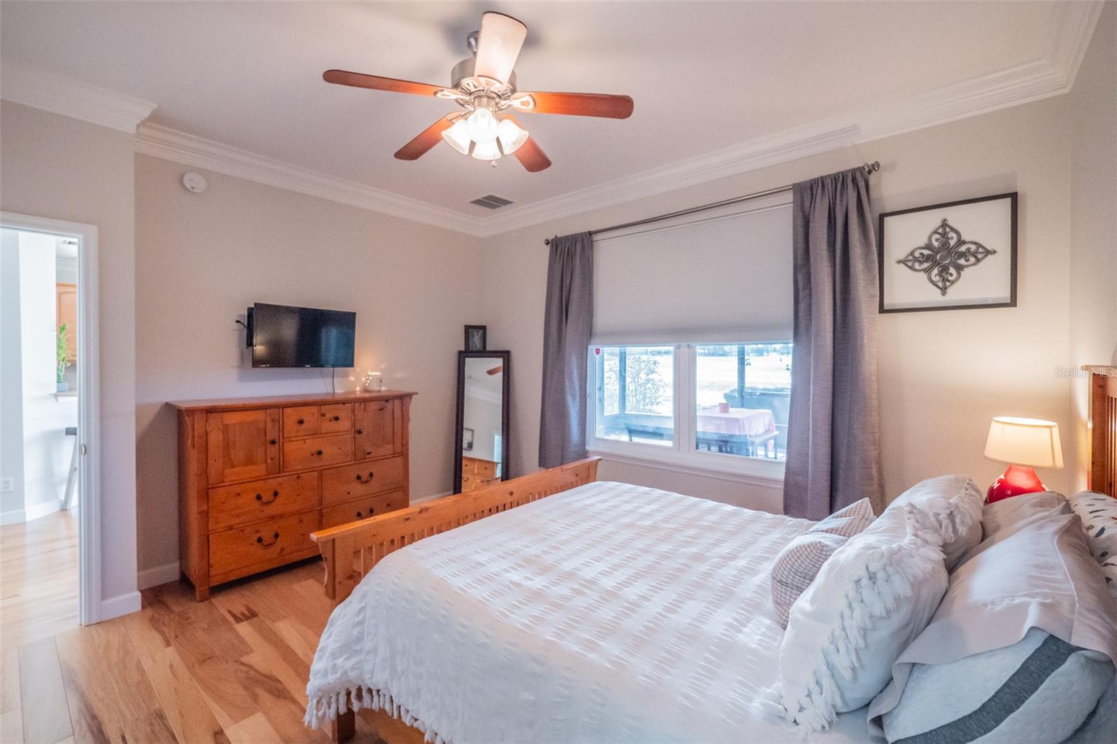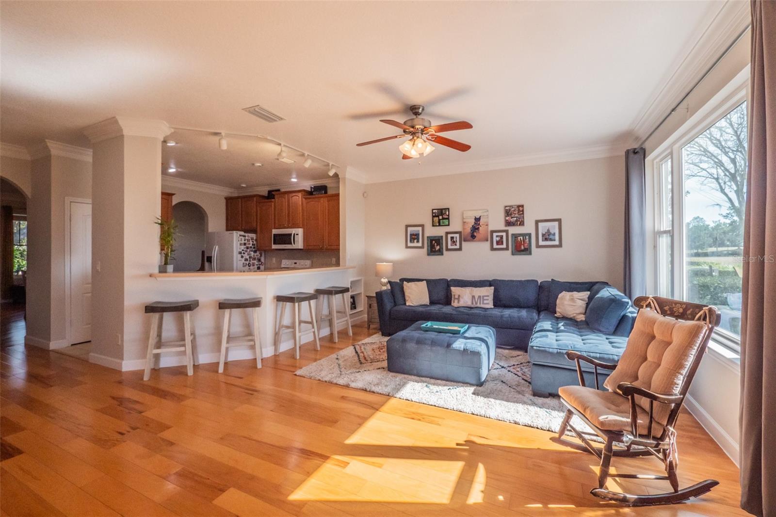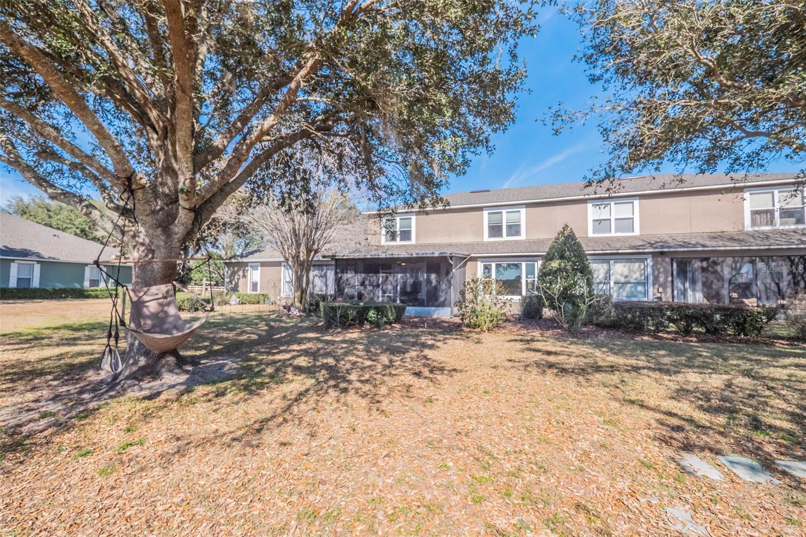 Gracefully positioned along the 9th hole of Eagle Dunes Golf Club, this impeccably maintained townhome offers sweeping golf course views and refined Florida living within the 24-hour guard-gated community of Sorrento Springs. This highly desirable three-bedroom, three and one half baths residence welcomes you with rich hardwood floors and a light-filled, open kitchen where expansive windows frame tranquil views of rolling fairways and open skies. The thoughtful layout provides both comfort and elegance, ideal for everyday living and entertaining alike. The first-floor primary suite is a peaceful retreat, featuring a generous walk-in closet and a spa-inspired en-suite bath designed for relaxation. Upstairs, two beautifully appointed en-suite bedrooms each enjoy breathtaking golf course vistas, while an open loft space with built-in desk and storage offers a perfect setting for a home office, reading nook, or creative workspace. Step outside to the supersized covered and screened patio, where serene panoramic views create a soothing backdrop for morning coffee, sunset evenings, or quiet moments of reflection—an outdoor sanctuary to be enjoyed year-round. Truly oversized two-car garage with extra storage space forward of the parking spaces and a pull-down attic access provides exceptional storage, while the exterior-maintenance-free lifestyle ensures effortless, turn-key living. Residents of Sorrento Springs/Sorrento Hills enjoy an exceptional array of amenities, including the 18-hole Eagle Dunes Golf Course, clubhouse with fitness center, resort-style community pool, pavilion, playground, tennis courts, and basketball court. Ideally located just minutes from shopping, dining, Publix, and professional services, with easy access to major roadways, SR-429, and only 15 minutes from the charm of historic downtown Mount Dora. This is a rare opportunity to embrace refined golf-front living in a beautifully maintained home where comfort, convenience, and natural beauty come together in perfect harmony.