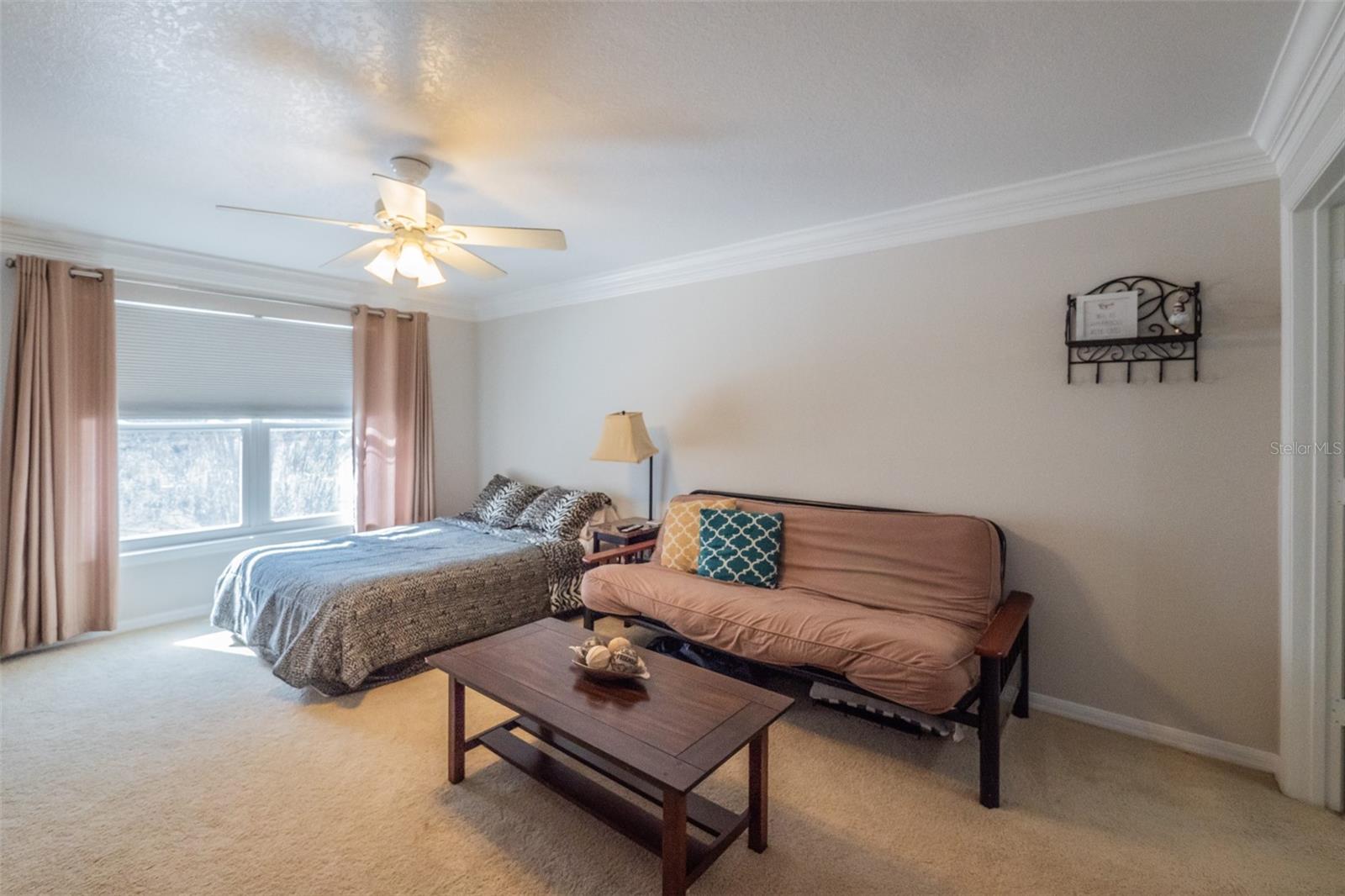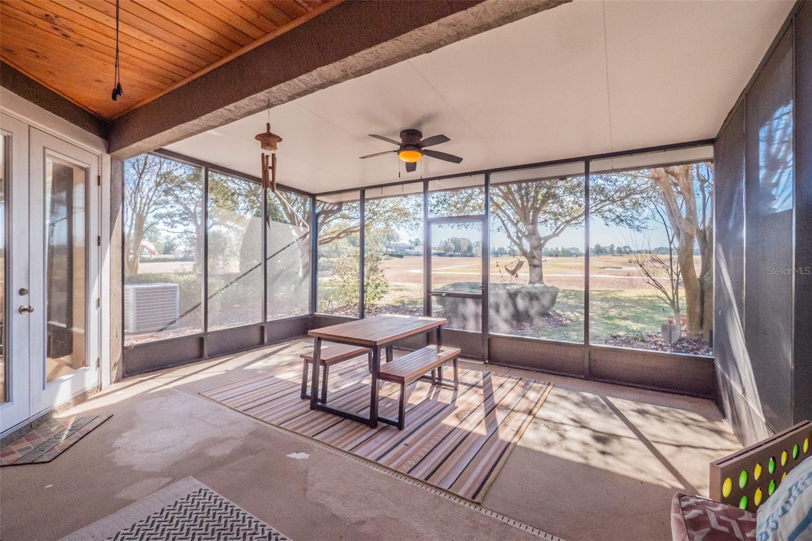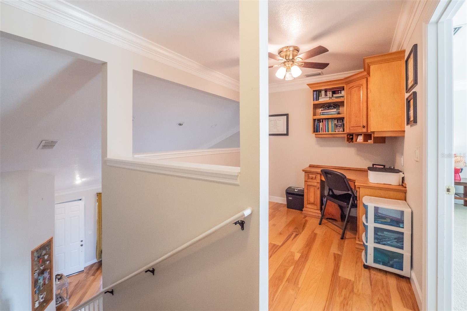 Gracefully positioned along the 9th hole of Eagle Dunes Golf Club, this impeccably maintained townhome offers sweeping golf course views and refined Florida living within the 24-hour guard-gated community of Sorrento Springs. This highly desirable three-bedroom, three and one half baths residence welcomes you with rich hardwood floors and a light-filled, open kitchen where expansive windows frame tranquil views of rolling fairways and open skies. The thoughtful layout provides both comfort and elegance, ideal for everyday living and entertaining alike. The first-floor primary suite is a peaceful retreat, featuring a generous walk-in closet and a spa-inspired en-suite bath designed for relaxation. Upstairs, two beautifully appointed en-suite bedrooms each enjoy breathtaking golf course vistas, while an open loft space with built-in desk and storage offers a perfect setting for a home office, reading nook, or creative workspace. Step outside to the supersized covered and screened patio, where serene panoramic views create a soothing backdrop for morning coffee, sunset evenings, or quiet moments of reflection—an outdoor sanctuary to be enjoyed year-round. Truly oversized two-car garage with extra storage space forward of the parking spaces and a pull-down attic access provides exceptional storage, while the exterior-maintenance-free lifestyle ensures effortless, turn-key living. Residents of Sorrento Springs/Sorrento Hills enjoy an exceptional array of amenities, including the 18-hole Eagle Dunes Golf Course, clubhouse with fitness center, resort-style community pool, pavilion, playground, tennis courts, and basketball court. Ideally located just minutes from shopping, dining, Publix, and professional services, with easy access to major roadways, SR-429, and only 15 minutes from the charm of historic downtown Mount Dora. This is a rare opportunity to embrace refined golf-front living in a beautifully maintained home where comfort, convenience, and natural beauty come together in perfect harmony.