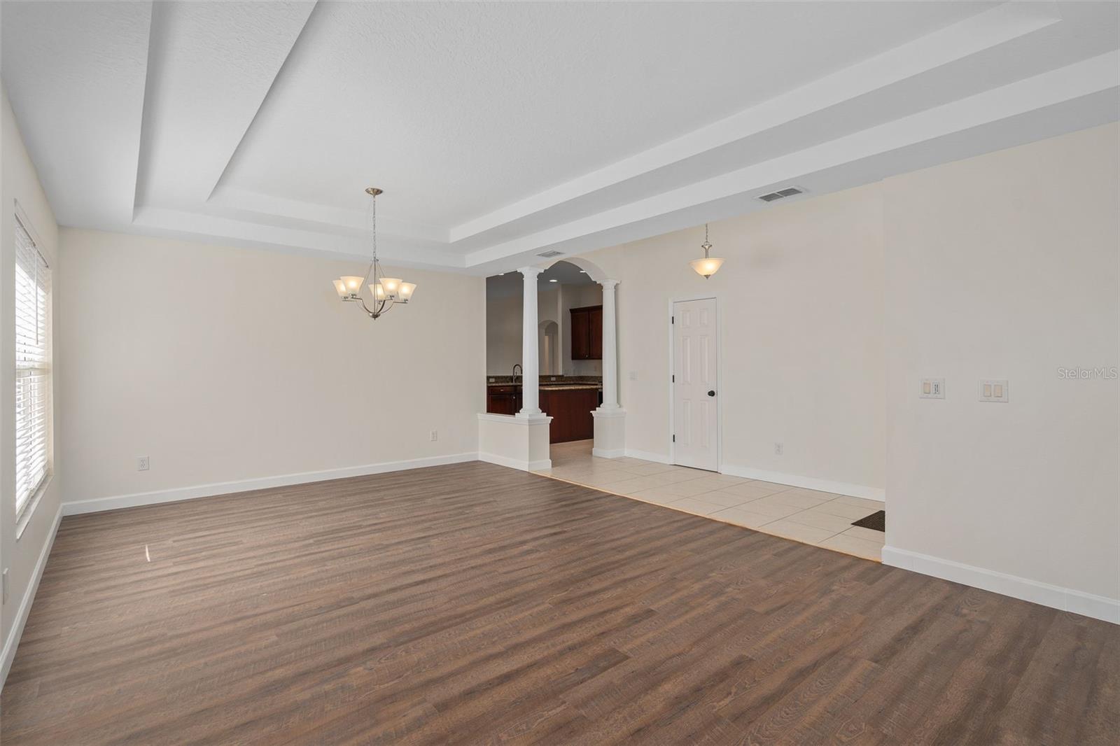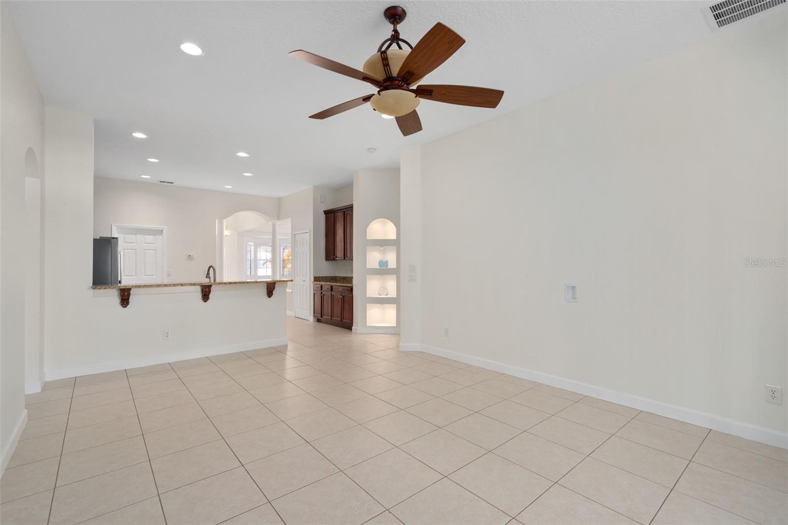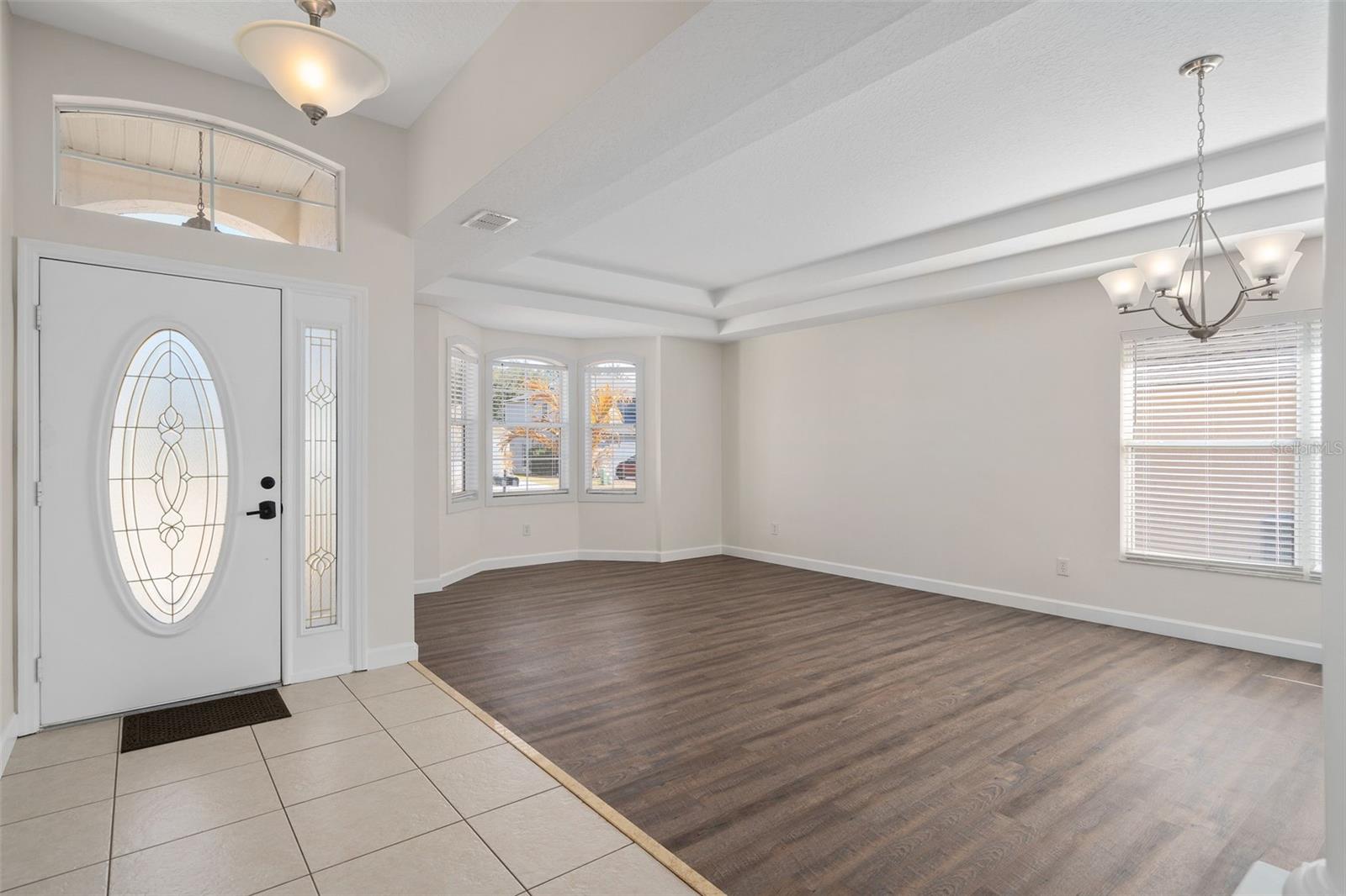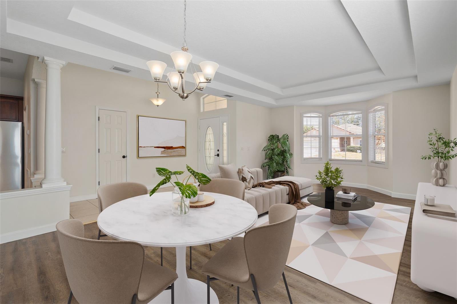 One or more photo(s) has been virtually staged. Wonderful 3Br 2bath in quiet neighborhood on open space area with no neighbors in rear to see the peaceful sunsets. Kitchen has new appliances dishwasher, refrigerator, electric Induction range, and hot water heater. Granite kitchen counter tops and Island. Fresh Interior paint. Waterproof luxury vinyl plank flooring in the dining and living room with Tray Ceiling. Bedrooms also have Laminate flooring. Master Bedroom with vaulted ceiling has walk-in closet and master bath Roman tub and separate large walk in shower. Second full bathroom has tub/shower. Separate laundry room with washer and dryer hook up. High Hat Lighting throughout and in 2nd and 3rd bedrooms. Large cathedral screened patio, 24’ wide by 15’ deep, overlooking former golf course giving a feeling of open space and serenity. Garage 2 car, has Great work area and storage. Also outdoor shed. Outdoor lighting with Landscaping recently refreshed and mulched. Newer HVAC and roof replacement in May 2021. Close to shopping, restaurants and entertainment.