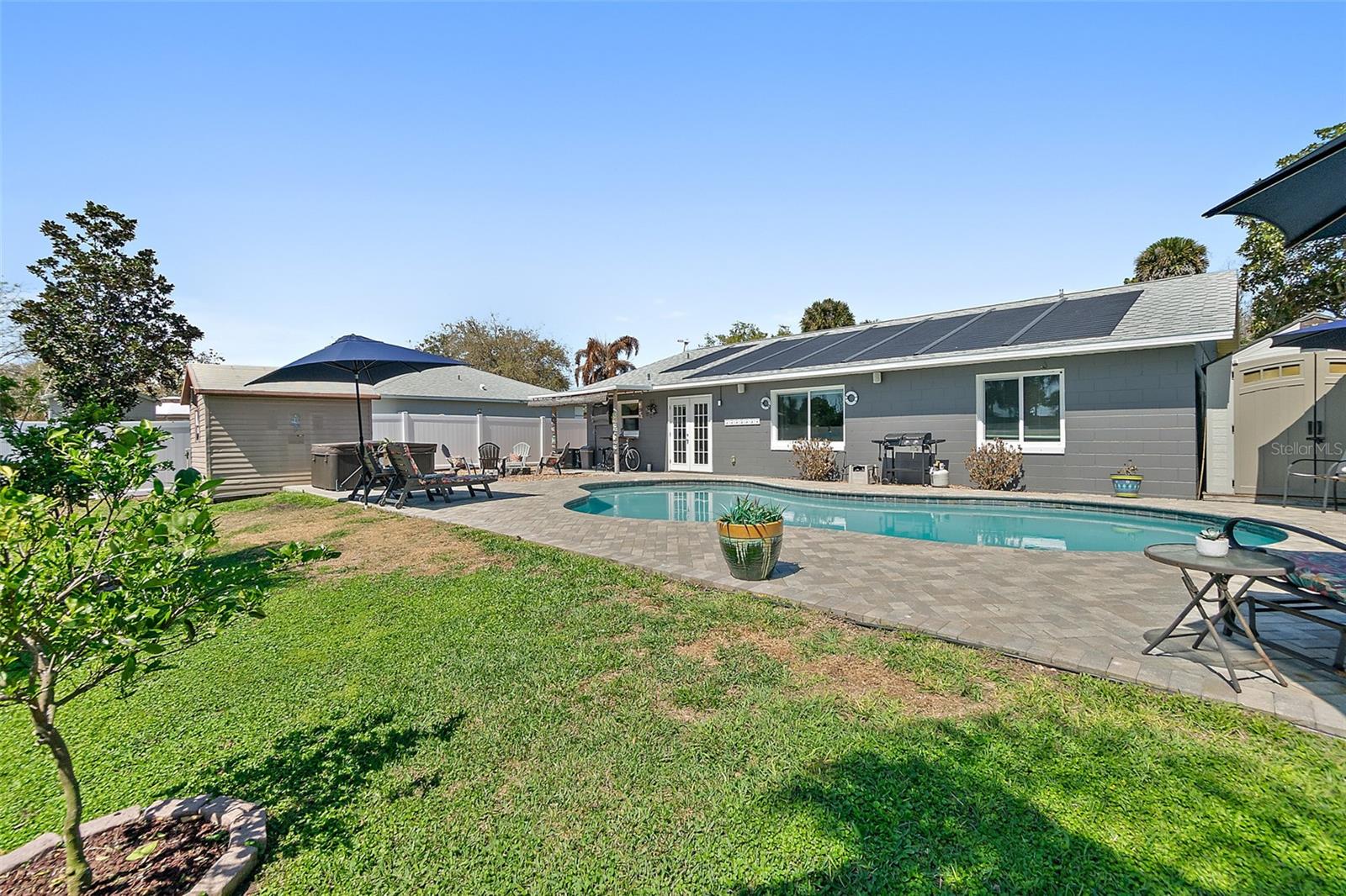**Florida Ranch-Style Retreat with Saltwater Pool & Modern Upgrades** Welcome to your slice of Florida paradise! This beautifully maintained ranch-style home blends comfort, style, and the ultimate backyard lifestyle. Thoughtfully updated and meticulously cared for, this property is truly move-in ready and perfect for anyone who loves relaxing, entertaining, and enjoying the Florida sunshine. Inside, you’ll find a bright and welcoming living space highlighted by **custom shiplap detailing in the living room**, adding warmth and character to the heart of the home. The kitchen has been tastefully upgraded with **brand new cabinets installed in 2024**, along with a **new range and refrigerator added in 2025**. One of the kitchen’s standout features is the **sink positioned beneath a window overlooking the pool**, letting you enjoy the backyard view while cooking or entertaining. This home has seen significant improvements that add both value and peace of mind. It was **freshly painted in 2026**, new energy-efficient windows installed in 2022, and boasts a **new roof completed in 2024**. Additional updates include a **new hot water heater** and a **solar system** to help reduce energy costs. The home is also equipped with **full hurricane shutters** for added protection during storm season. Step outside and experience the lifestyle that makes Florida living so special. The backyard is fully enclosed with a **durable vinyl privacy fence**, creating a private oasis centered around the **saltwater pool**. The pool is equipped with a **heat pump that can both heat or cool the water**, making it comfortable year-round. The **outdoor living area** is designed for unforgettable gatherings and everyday relaxation. Enjoy evenings around the **gas fire pit**, play music through the **outdoor speaker system**, and host friends and family in a space that truly feels like a private resort. The property also includes **convenient storage sheds** for tools, lawn equipment, and pool supplies—keeping everything organized and out of sight. Whether you're hosting pool parties, grilling with friends, or simply unwinding after a long day, this home is built for entertaining and enjoying the Florida lifestyle. If you’ve been searching for a well-maintained, upgraded home with incredible outdoor living, this one checks all the boxes. Come see why this Florida ranch is the perfect place to call home.