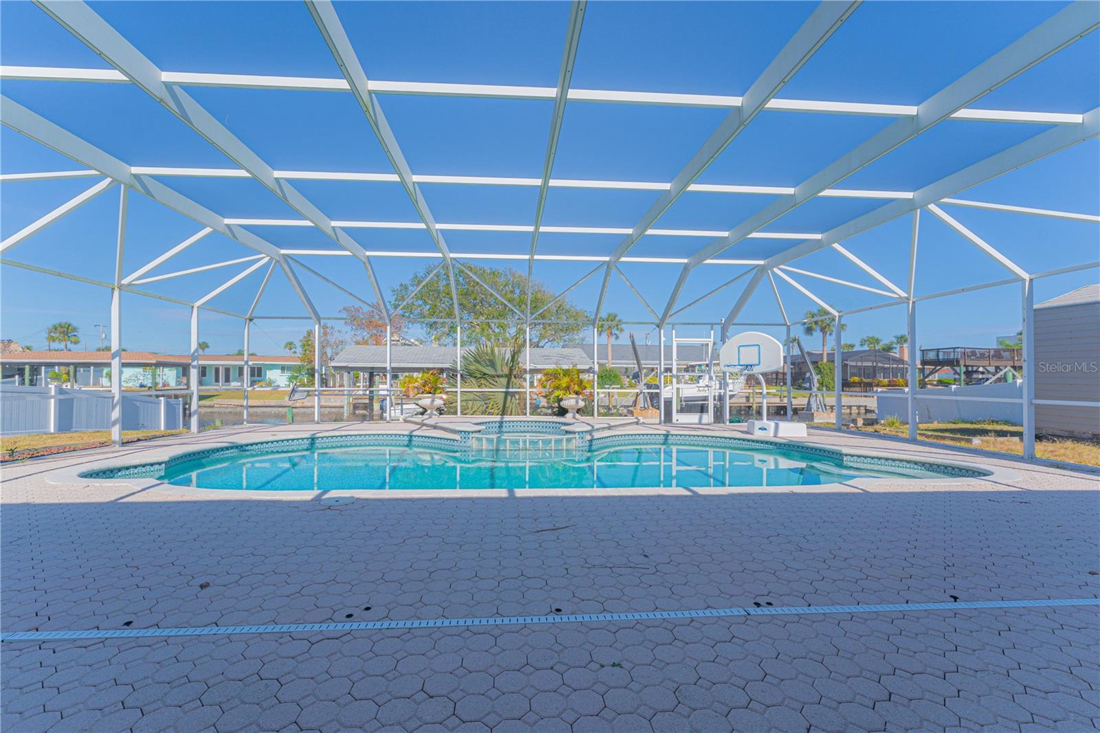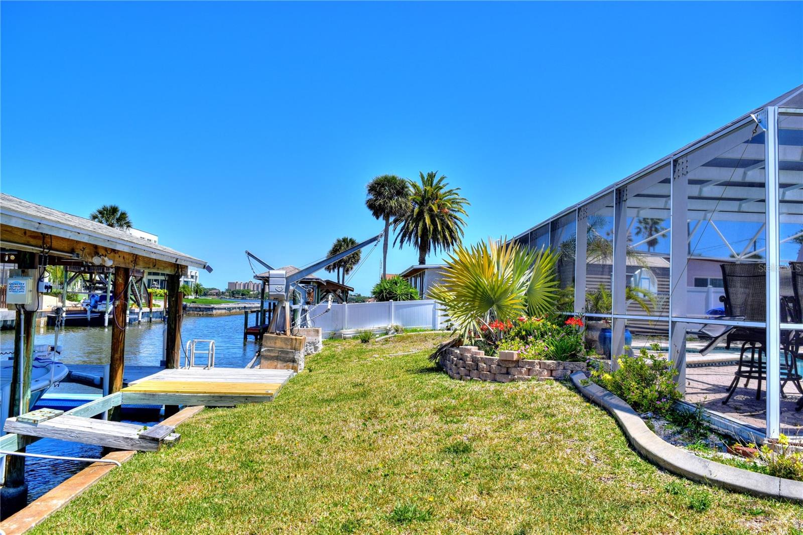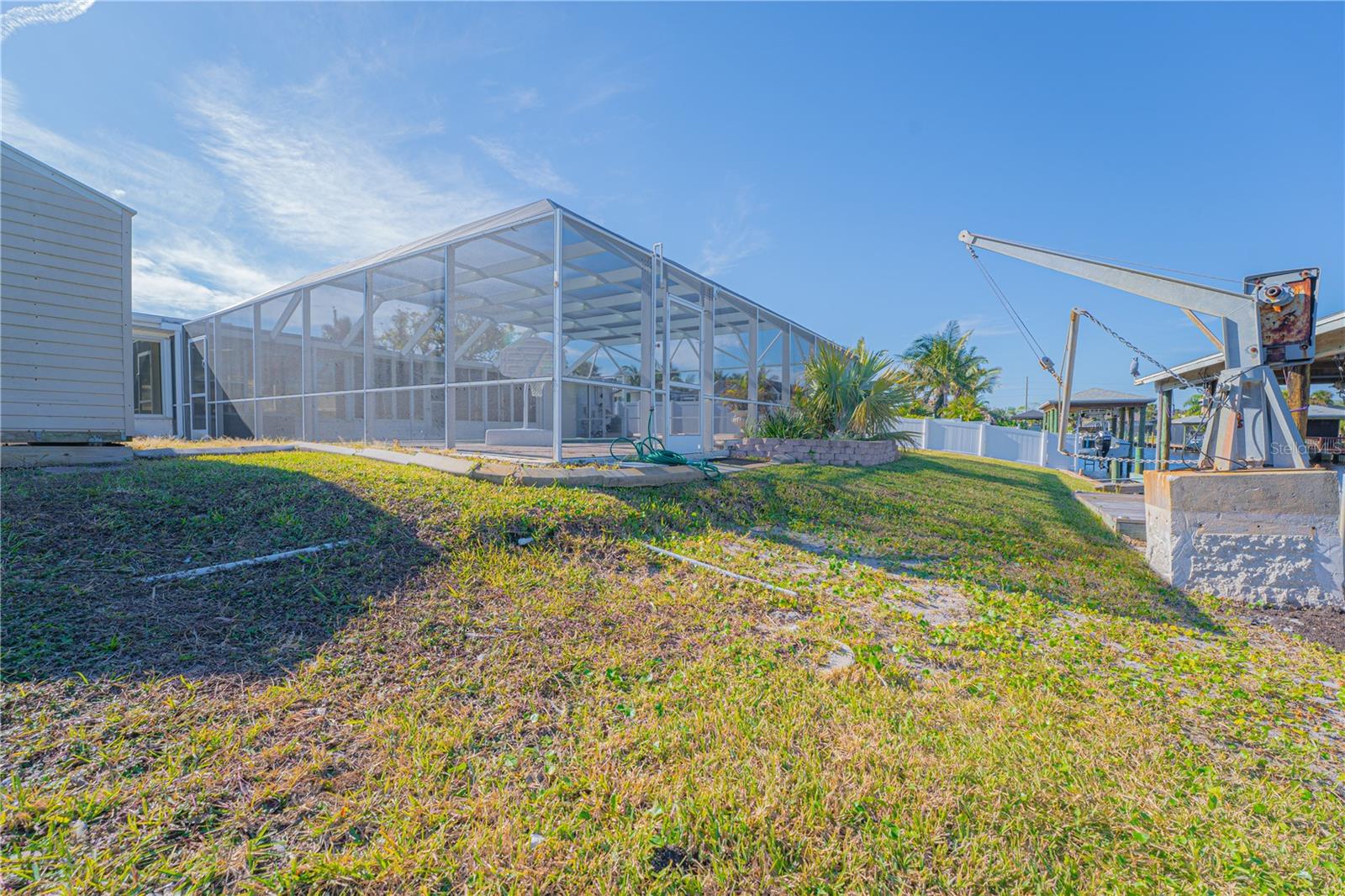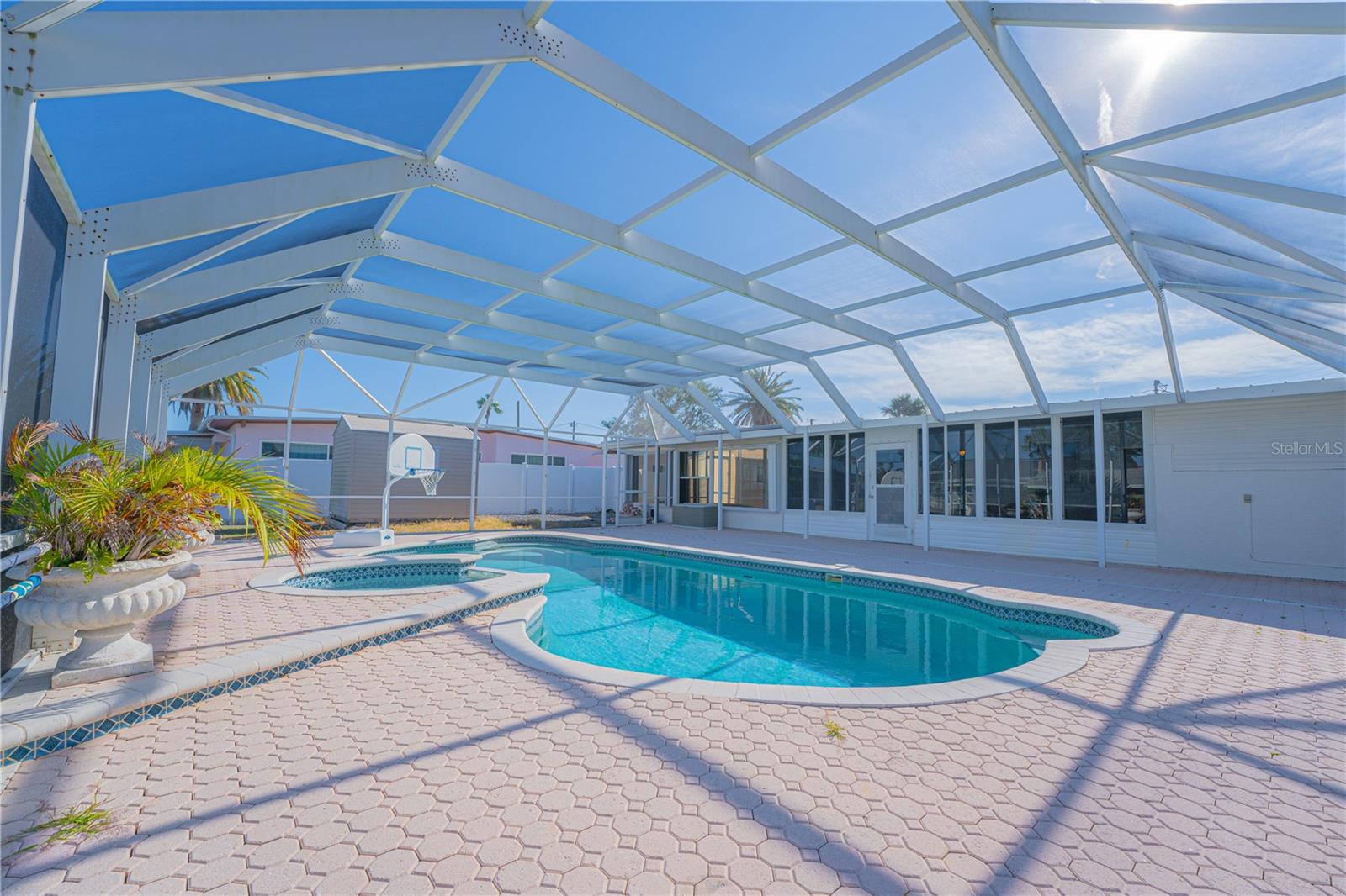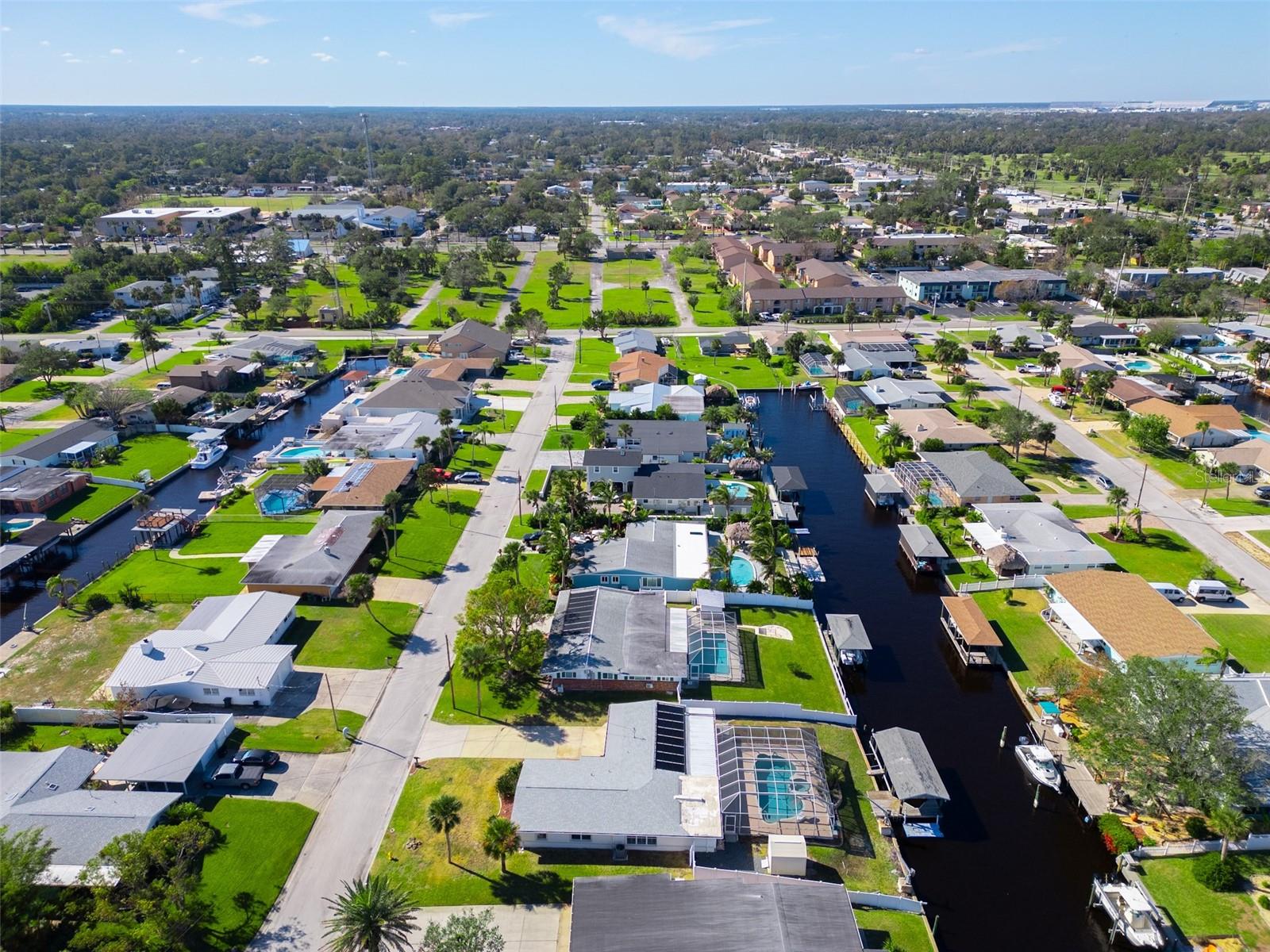 WATERFRONT! Improved Beautiful Canal Front Home! Bring your boat, jet skis and have them docked just steps out of your back door. This home is located on a wide and deep saltwater canal that leads directly out to the Intracoastal waterway and out to the Atlantic Ocean in minutes. Relax on your screened in lanai with a solar heated pool and integrated hot tub or on the 30' boathouse and take in breathtaking sunrises and frequent manatee visits, great fishing and gentle ocean breezes. This home sits high and stays dry and has been beautifully updated with new LVP flooring, a new primary bathroom, roof from 2021 and AC 2019. Featuring 3 bedrooms & 2 full bathrooms PLUS a FLEX room with 9' windows. The open kitchen is centrally located and provides ample storage with pull out drawers and a mixer pull out to cater to all your cooking needs. This home also offers the safety of hurricane shutters and convenience of extra storage located in Florida room and the back 8x10 shed. Don't miss the chance to enjoy waterfront living. All information is deemed to be correct however should be verified by representative and buyer.