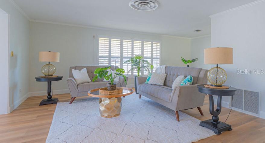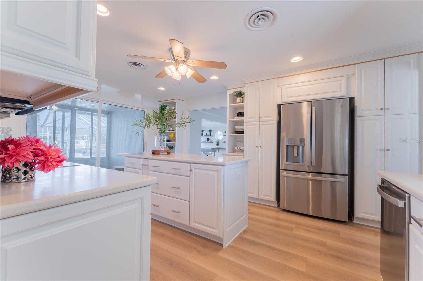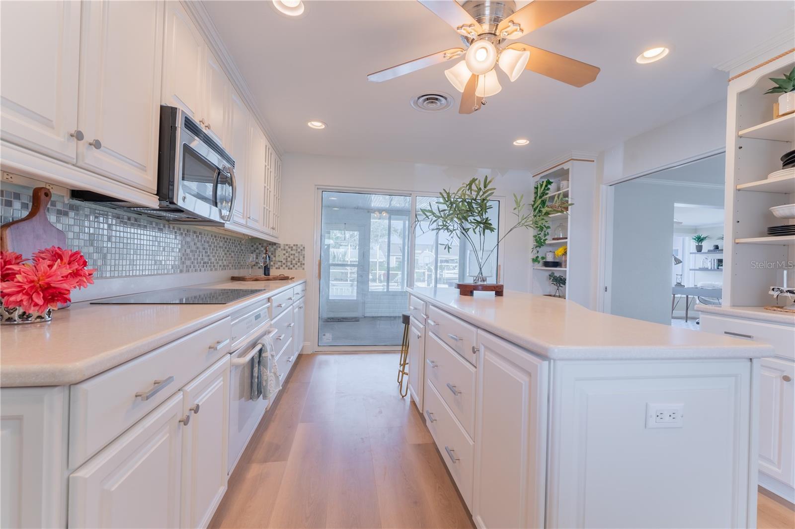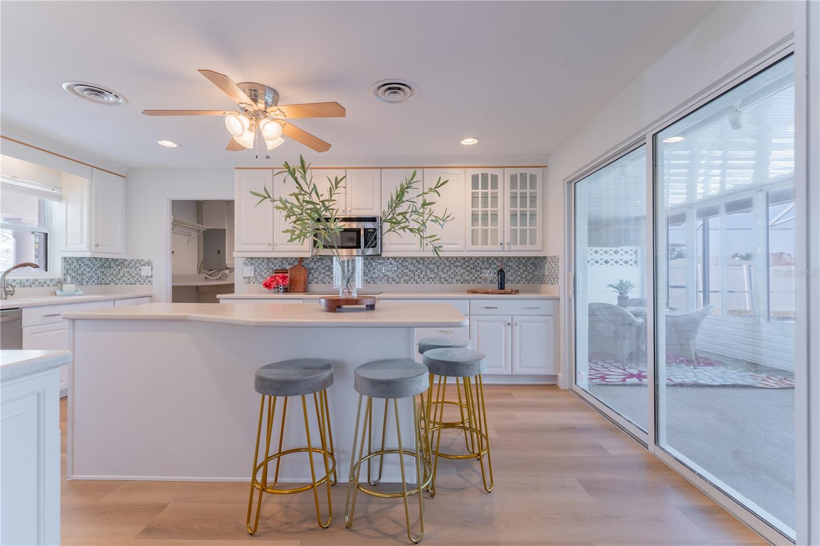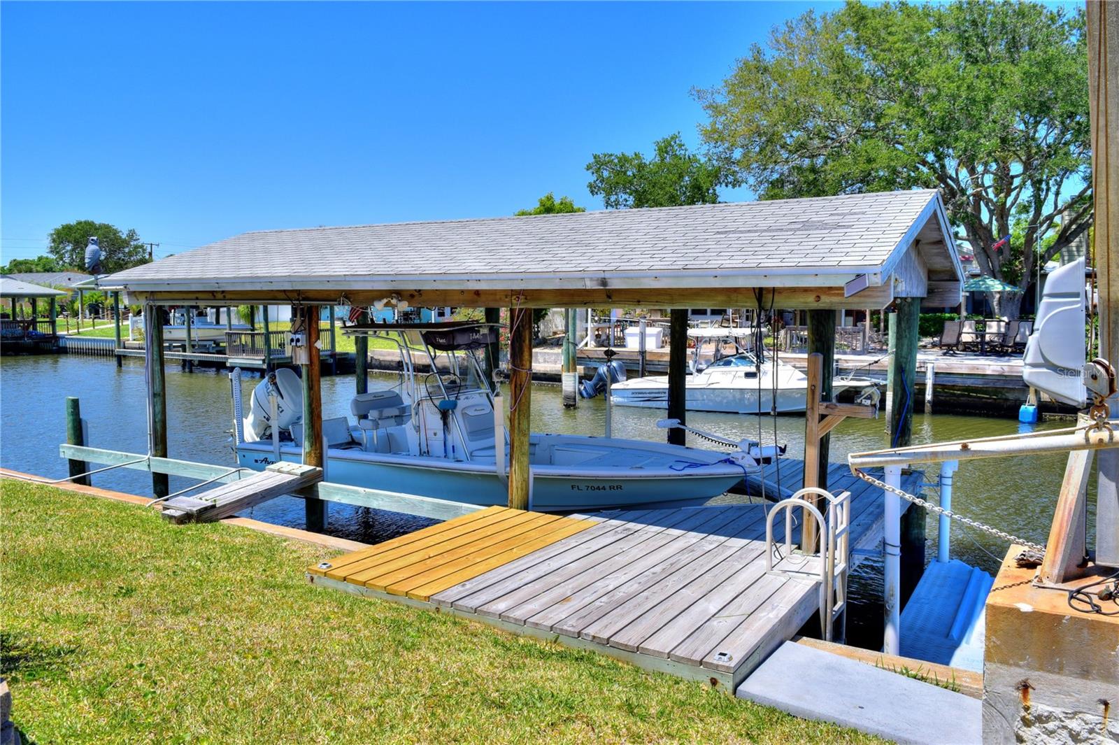 WATERFRONT! Improved Beautiful Canal Front Home! Bring your boat, jet skis and have them docked just steps out of your back door. This home is located on a wide and deep saltwater canal that leads directly out to the Intracoastal waterway and out to the Atlantic Ocean in minutes. Relax on your screened in lanai with a solar heated pool and integrated hot tub or on the 30' boathouse and take in breathtaking sunrises and frequent manatee visits, great fishing and gentle ocean breezes. This home sits high and stays dry and has been beautifully updated with new LVP flooring, a new primary bathroom, roof from 2021 and AC 2019. Featuring 3 bedrooms & 2 full bathrooms PLUS a FLEX room with 9' windows. The open kitchen is centrally located and provides ample storage with pull out drawers and a mixer pull out to cater to all your cooking needs. This home also offers the safety of hurricane shutters and convenience of extra storage located in Florida room and the back 8x10 shed. Don't miss the chance to enjoy waterfront living. All information is deemed to be correct however should be verified by representative and buyer.