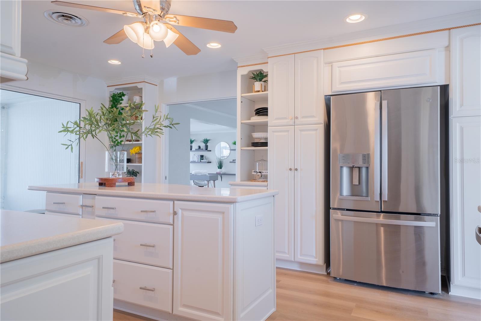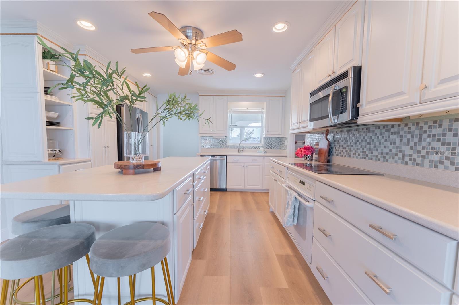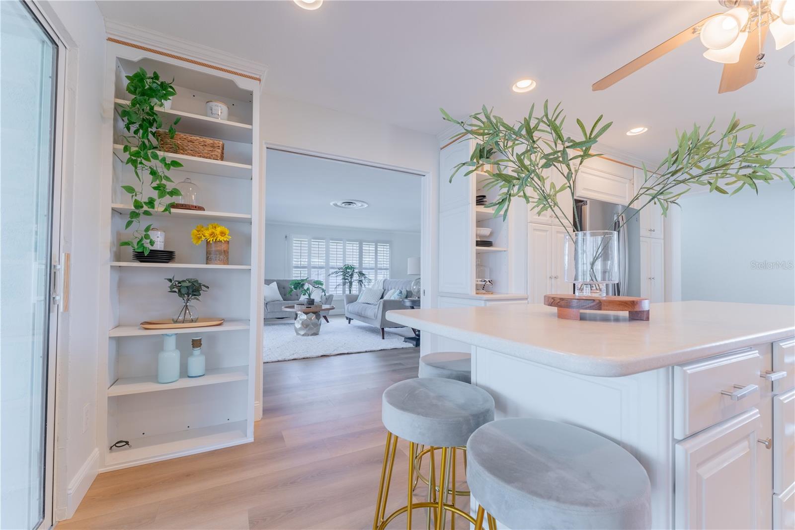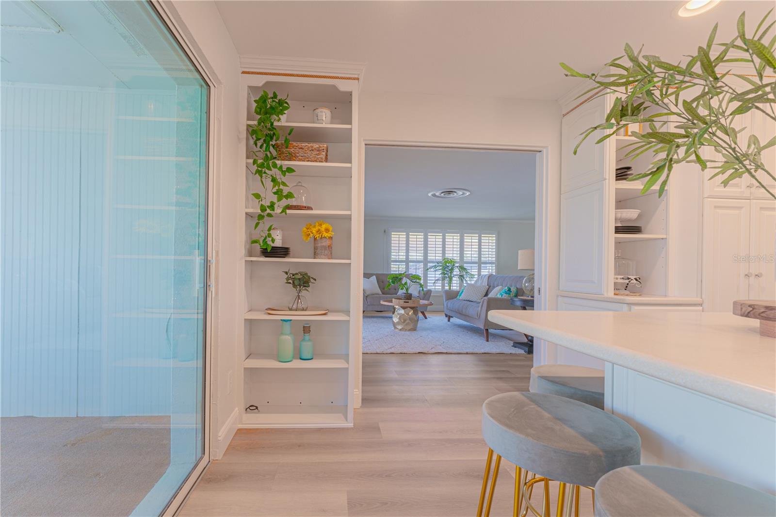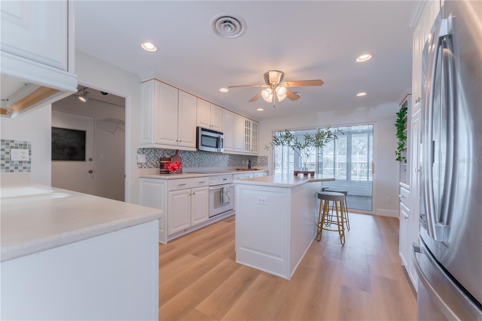 WATERFRONT! Improved Beautiful Canal Front Home! Bring your boat, jet skis and have them docked just steps out of your back door. This home is located on a wide and deep saltwater canal that leads directly out to the Intracoastal waterway and out to the Atlantic Ocean in minutes. Relax on your screened in lanai with a solar heated pool and integrated hot tub or on the 30' boathouse and take in breathtaking sunrises and frequent manatee visits, great fishing and gentle ocean breezes. This home sits high and stays dry and has been beautifully updated with new LVP flooring, a new primary bathroom, roof from 2021 and AC 2019. Featuring 3 bedrooms & 2 full bathrooms PLUS a FLEX room with 9' windows. The open kitchen is centrally located and provides ample storage with pull out drawers and a mixer pull out to cater to all your cooking needs. This home also offers the safety of hurricane shutters and convenience of extra storage located in Florida room and the back 8x10 shed. Don't miss the chance to enjoy waterfront living. All information is deemed to be correct however should be verified by representative and buyer.