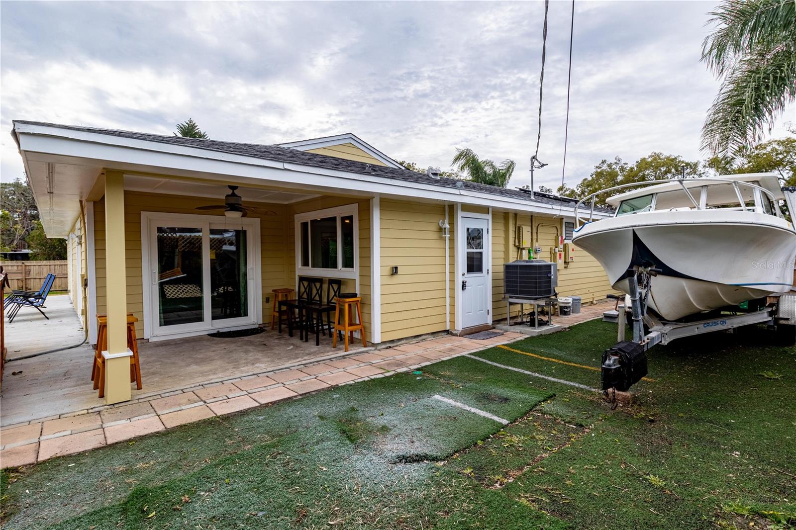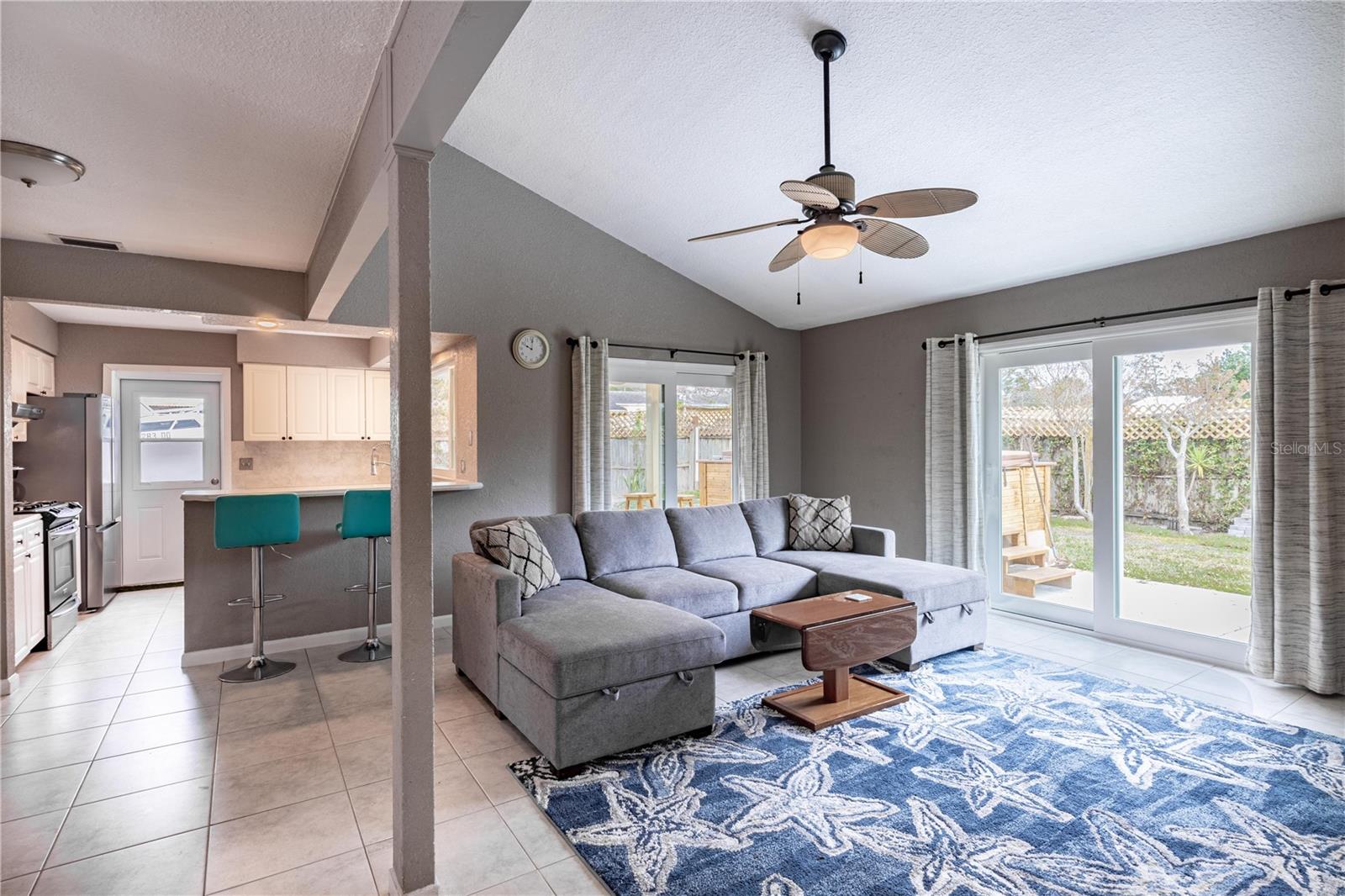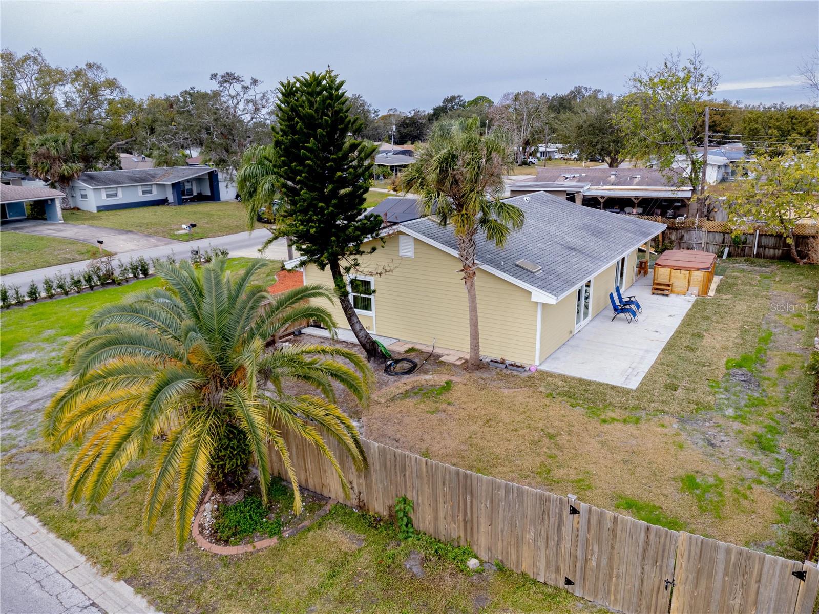 Assume this home at 2.5% and save thousands annually. No HOA!!! Short term rental friendly. Discover this furnished and thoughtfully updated 3-bedroom, 2-bathroom home offering both style and practicality. The curb appeal is welcoming with new landscaping, shrubs and budding grass under a canopy of palms. Inside you'll find the vaulted ceilings enhance the sense of space and light, creating a warm and inviting atmosphere. The backyard is a standout feature, with covered patio, storage shed and three gated entrances that make storing your boat, RV, or other toys incredibly convenient. Recent updates include new impact windows, Hardie board siding, and solar panels for energy efficiency. The AC and water heater have also been replaced within the past two years, ensuring modern comfort. For added relaxation, a SwimSpa is available for an additional fee. This home is centrally located and just a 5 minute drive to the beach. Don't miss the chance to call this move-in-ready gem your own! Assumable Mortgage! This home is also available as a lease-option to make it easy to buy! Bring your creative financing!