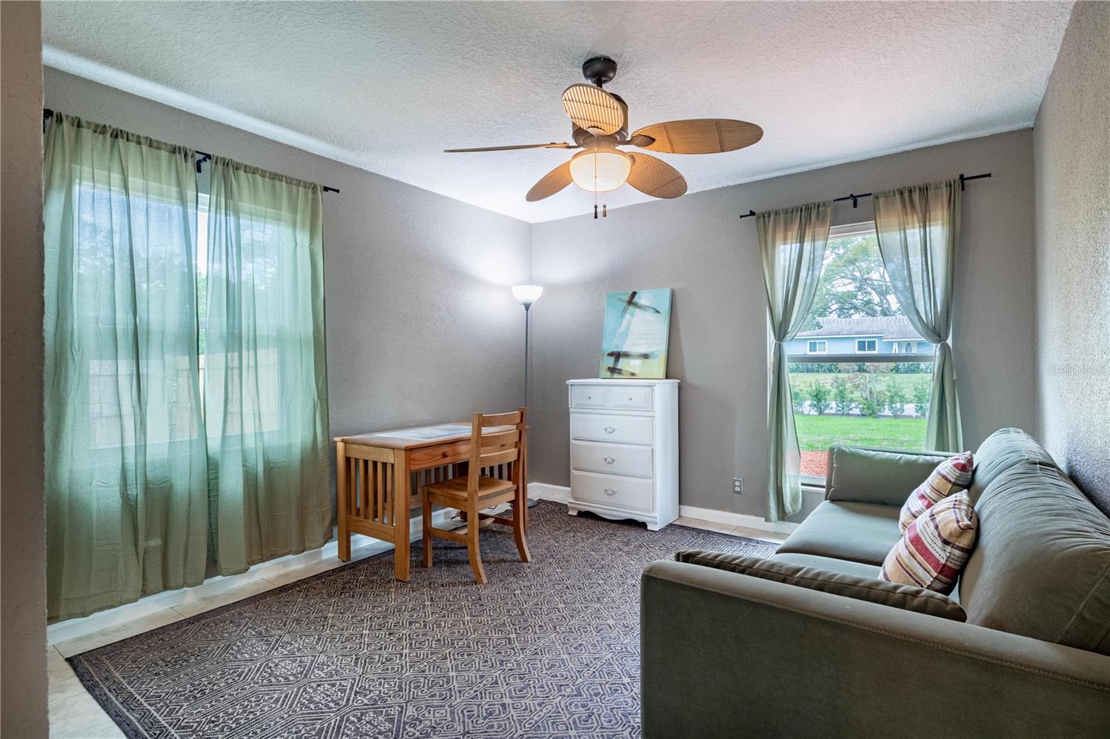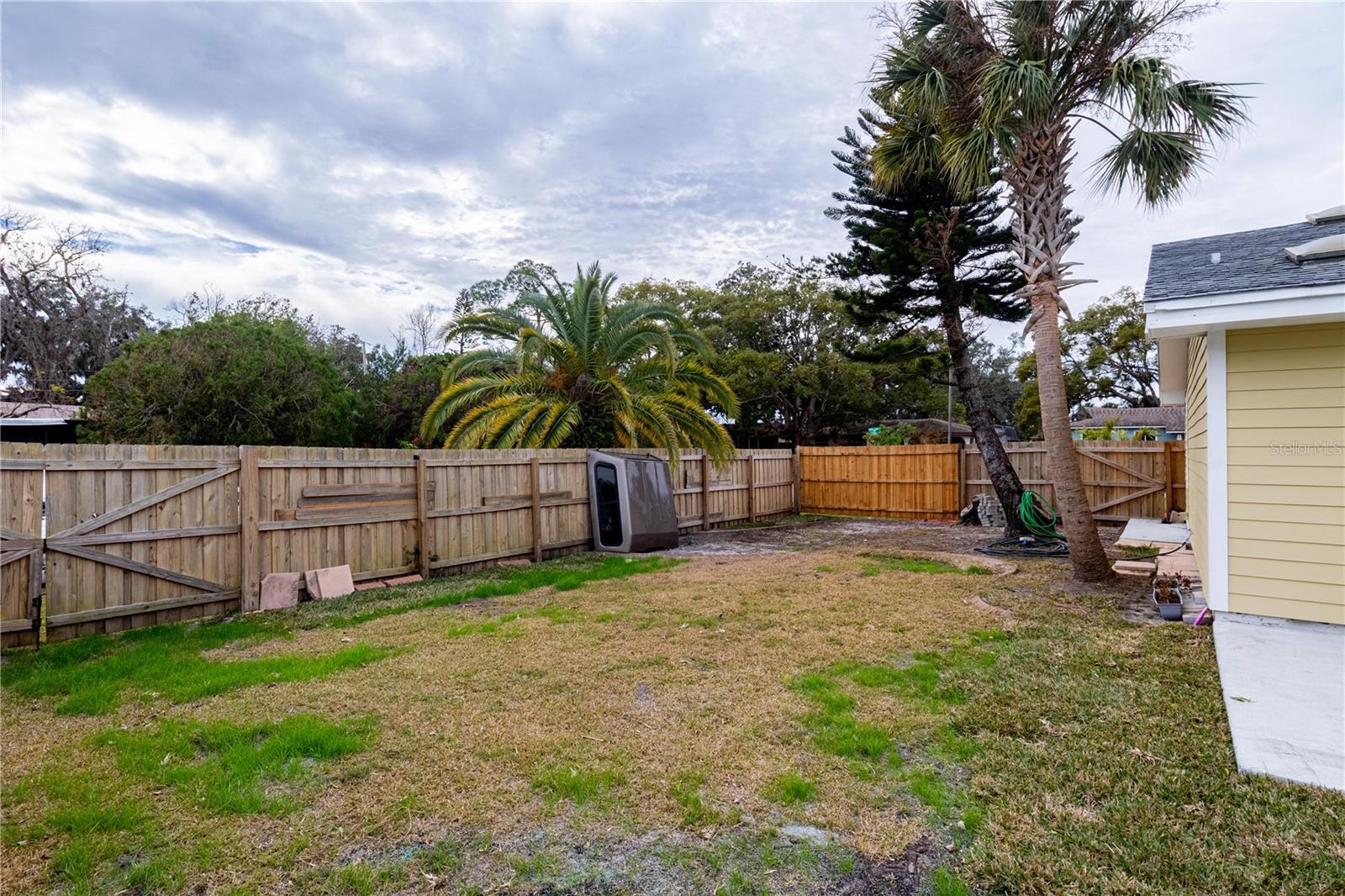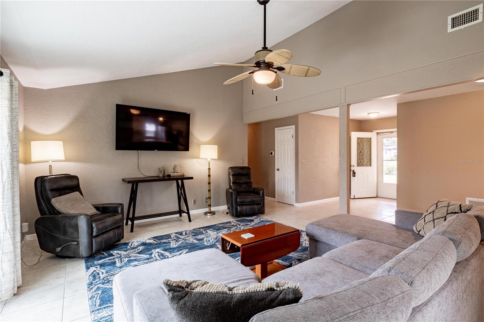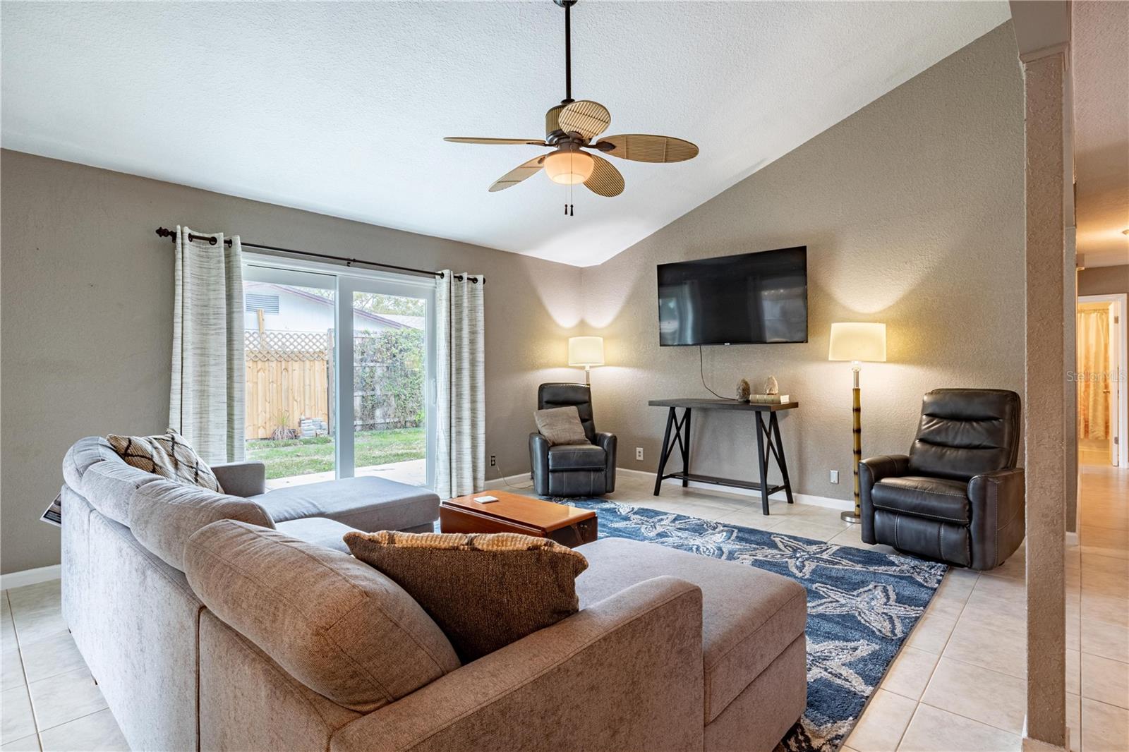 Assume this home at 2.5% and save thousands annually. No HOA!!! Short term rental friendly. Discover this furnished and thoughtfully updated 3-bedroom, 2-bathroom home offering both style and practicality. The curb appeal is welcoming with new landscaping, shrubs and budding grass under a canopy of palms. Inside you'll find the vaulted ceilings enhance the sense of space and light, creating a warm and inviting atmosphere. The backyard is a standout feature, with covered patio, storage shed and three gated entrances that make storing your boat, RV, or other toys incredibly convenient. Recent updates include new impact windows, Hardie board siding, and solar panels for energy efficiency. The AC and water heater have also been replaced within the past two years, ensuring modern comfort. For added relaxation, a SwimSpa is available for an additional fee. This home is centrally located and just a 5 minute drive to the beach. Don't miss the chance to call this move-in-ready gem your own! Assumable Mortgage! This home is also available as a lease-option to make it easy to buy! Bring your creative financing!