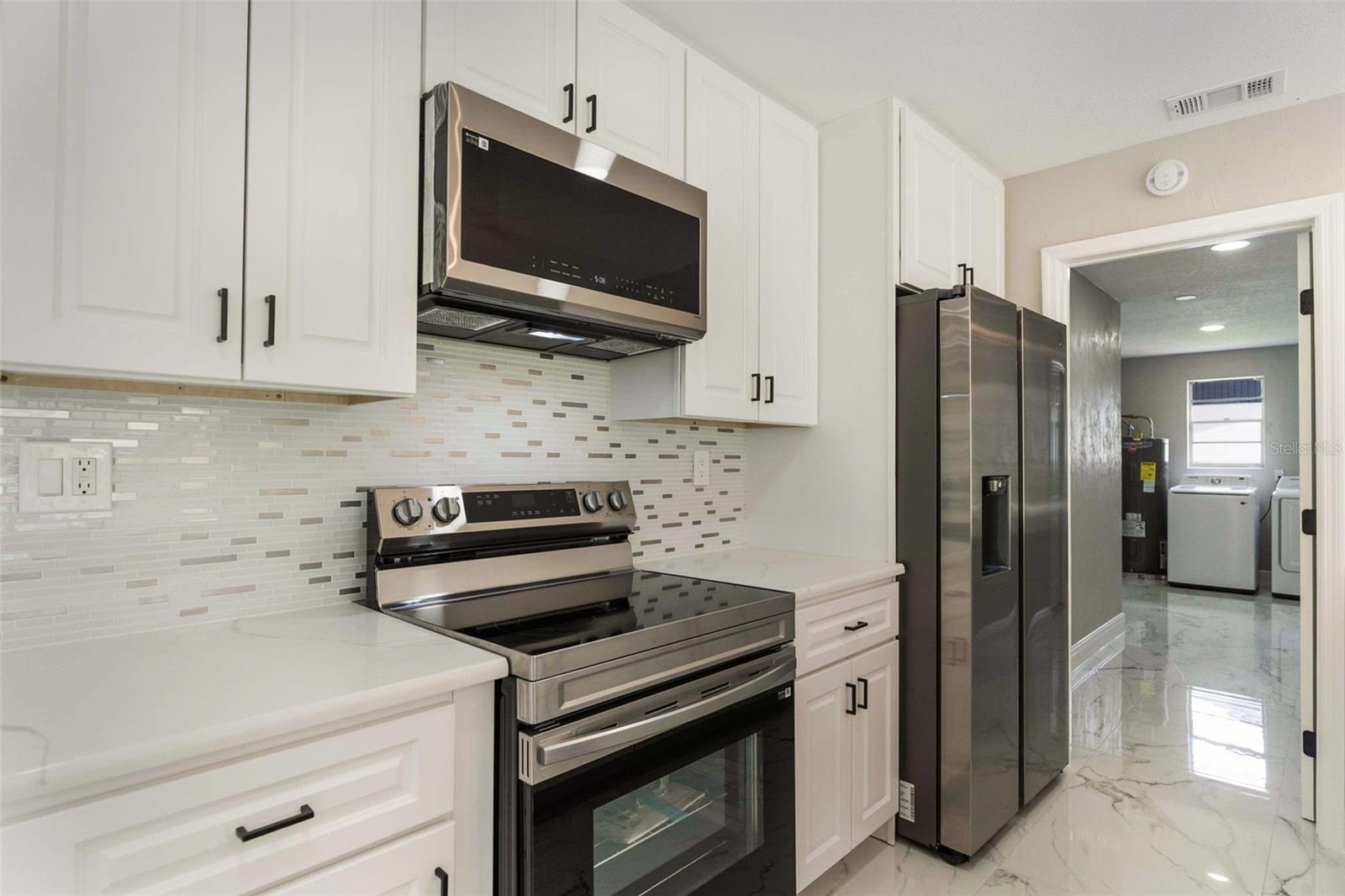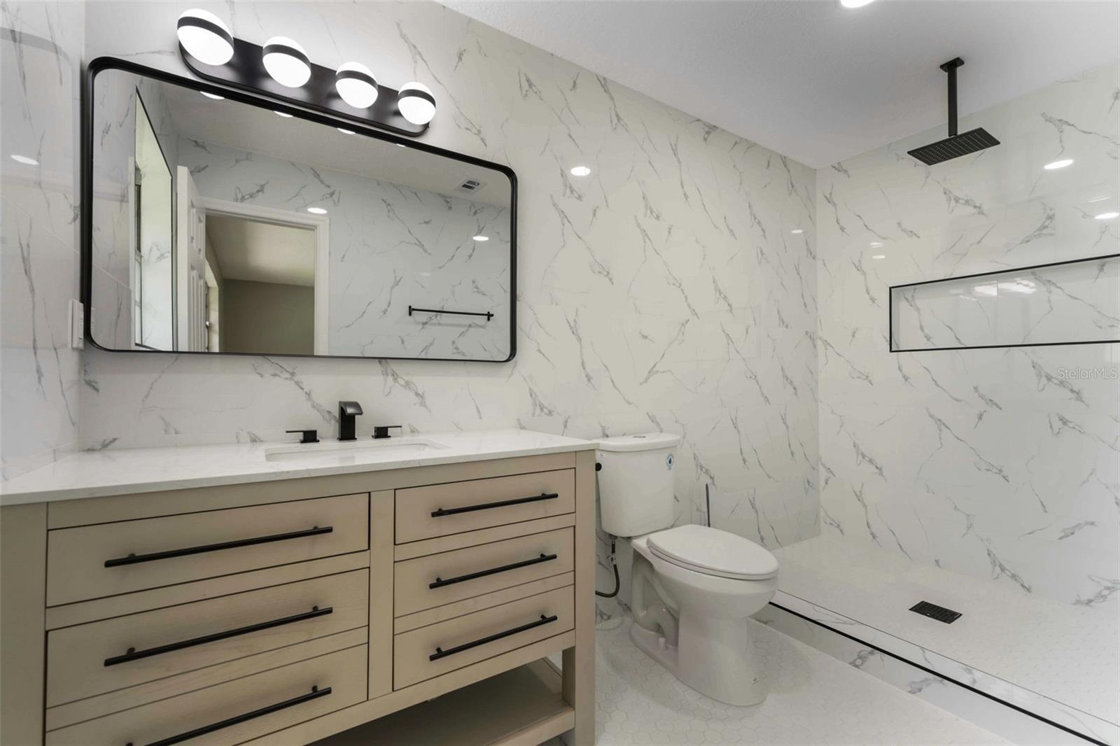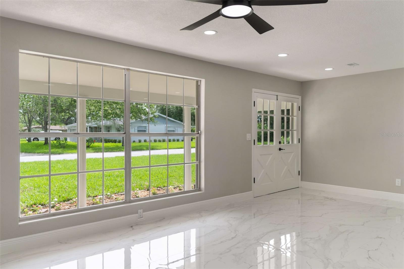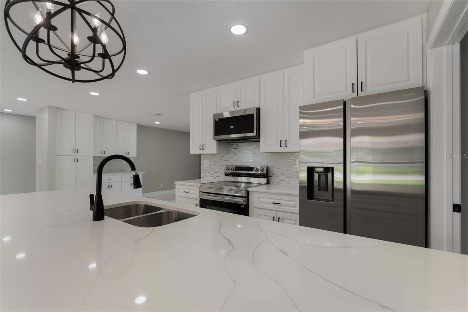One or more photo(s) has been virtually staged. Welcome to this beautifully remodeled 3-bedroom, 2-bath home in the heart of South Daytona, offering the perfect blend of style, comfort, and functionality. Step inside and be greeted by an open-concept living space featuring stunning porcelain tile floors throughout, recessed lighting, and a cozy brick fireplace that creates the perfect ambiance. The modern kitchen is a showstopper, boasting crisp white cabinetry, quartz countertops, sleek black fixtures, and a designer tile backsplash. The oversized island with geometric detail is perfect for entertaining or enjoying casual meals. Natural light floods the space through large windows, while the fresh neutral palette provides a clean, contemporary feel. Outside, the home sits on a spacious lot with mature trees and a charming front porch—ideal for relaxing with your morning coffee. Additional features include a new roof, updated lighting, and a 2-car garage. Conveniently located near local schools, parks, shopping, and dining, this move-in-ready gem won’t last long. Schedule your private tour today!