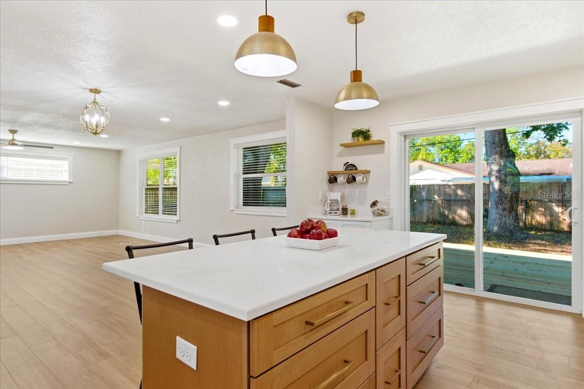 One or more photo(s) has been virtually staged. Some Photos have been virtually staged. This 3-bedroom 2-bath South Daytona home has been completely remodeled with New A/C, New Plumbing inside and to the street, New Washer/Dryer hook up in the garage, New Deck, New Appliances and New Windows. New Landscaping greets you as you pull into the driveway to your new home. Stepping inside you will be greeted with a wide-open floorplan that is perfect for entertaining large groups of family and friends. Custom trim around the windows elevates the space and provides elegance and depth to the rooms. Off to the right a brand new 2-tone kitchen with soft close white shaker uppers/lowers and natural wood island with quartz countertops. Luxury Vinyl floors and 5 1/4 baseboard guide you down the hall to 2 guest bedrooms with customized closets and a completely updated bathroom with a new tub and tile surround with soap cubby built into the wall. Continuing down the hall to the master suite with large closet and brand-new bathroom with walk in shower. The backyard has been transformed with a new deck that is perfect for outdoor furniture or grill to get you started on holiday BBQs. This is the perfect home for anyone looking for maintenence free relaxed living, schedule your showing today!