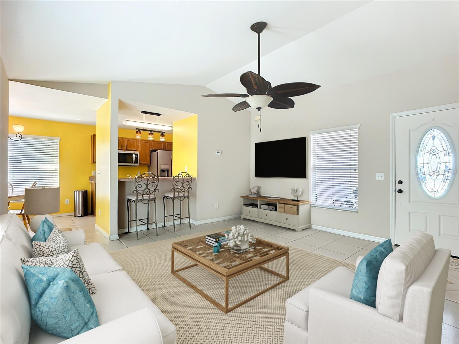 One or more photo(s) has been virtually staged. Move-In Ready 3-Bedroom Home in South Daytona! Enjoy peace of mind with recent updates, including a new roof (2023) and HVAC system (2022). Welcome to this charming 3-bedroom, 2-bathroom home in South Daytona, offering a spacious open great room and a seamless flow for everyday living. The kitchen boasts stainless steel appliances, a sunny eat-in area, and plenty of storage, making it a perfect space for cooking and gathering. Tile flooring runs through the main living areas for easy maintenance, while the bedrooms feature cozy carpet. The primary suite features a walk-in closet and a private bath, creating a comfortable retreat. Step through the French doors off the great room to your patio and fully fenced backyard, ideal for pets, entertaining, or simply enjoying Florida’s sunshine. A welcoming front porch adds curb appeal and a great spot to relax. Living in South Daytona means being minutes from world-famous Daytona Beach, where you can enjoy sandy shores, waterfront dining, and endless entertainment. Explore the Daytona International Speedway, local parks, and nearby shopping and dining—all while benefiting from a peaceful residential setting. This home is move-in ready and waiting for you! Schedule a tour today.