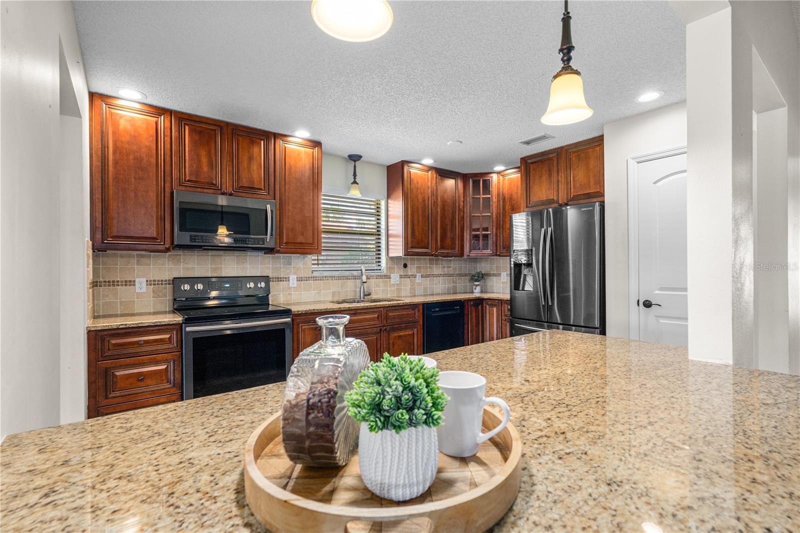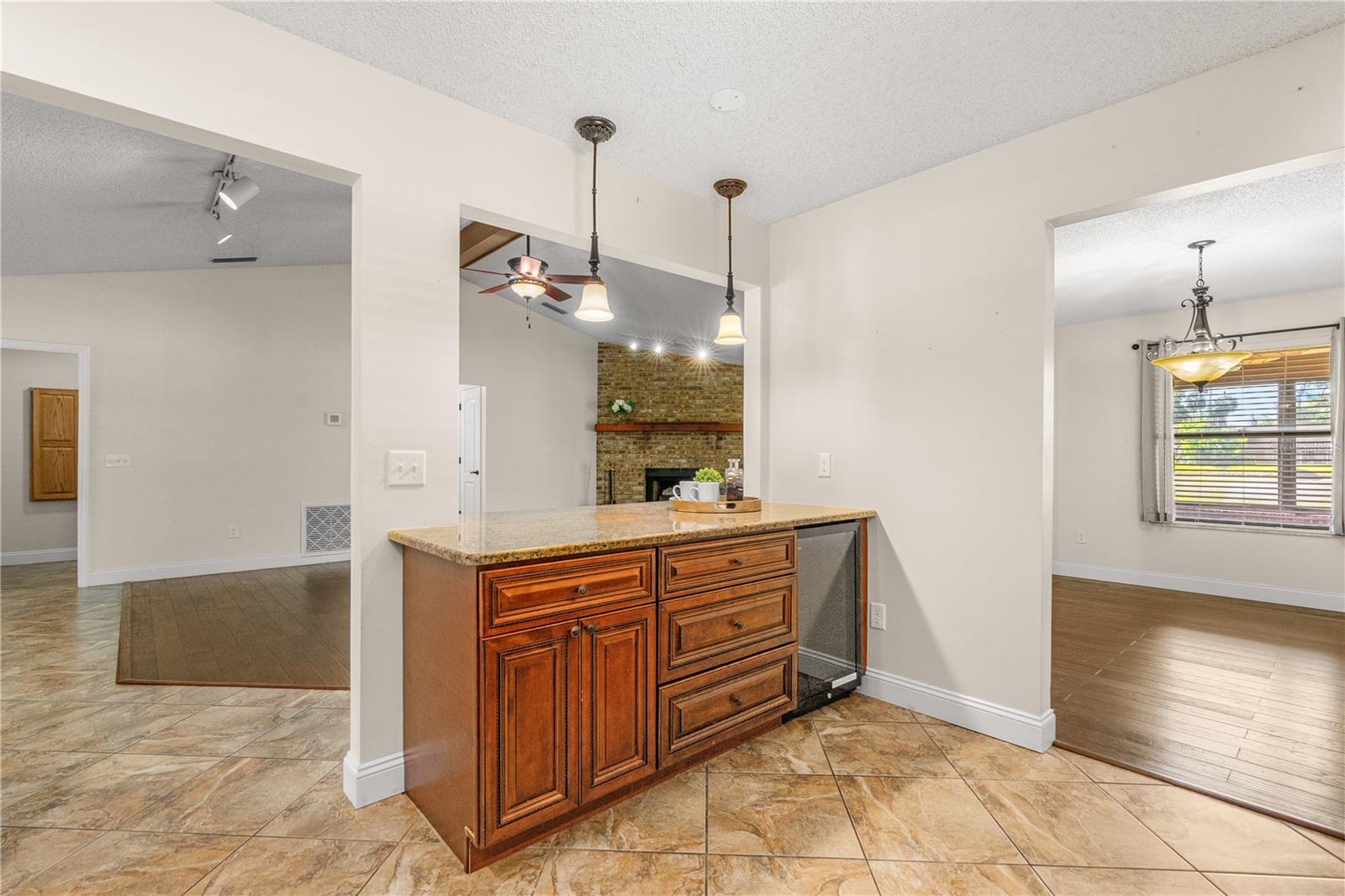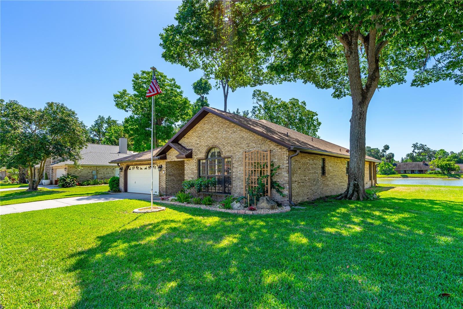 Beautifully Renovated Lakefront Beauty! This exceptional waterfront home is set in the peaceful and established community of Bryan Cave Estates. Roof is 2022. Step inside and immediately feel the warmth of the inviting living space featuring beautiful wood flooring, oversized tile, and a charming fireplace as the focal point. The gourmet kitchen, completely remodeled to the studs, features custom cabinetry, granite countertops, premium appliances, and elegant finishes that make it a chef's dream. With a split-bedroom floor plan, the home provides privacy and comfort for everyone. The primary suite is a serene retreat, while the guest bath has been fully updated with a brand-new walk-in shower and a custom vanity. Enjoy peaceful mornings on the screened-in patio, sipping coffee as you take in the tranquil lake views. The interior laundry room, separate dining room, and oversized garage with loft storage add everyday convenience to this already impressive home. Recent improvements: 2022 roof New gutters abd leaf guard system Newer HVAC system. Newer engineered wood & tile flooring. All newer interior doors, baseboards, and hardware. Newer etched-glass front entry door. Granite countertops in kitchen & bathrooms. Six newer ceiling fans & updated light fixtures throughout. Newer sliding glass door to screened patio. Newer dining room chandelier. Plantation shutters in the primary suite. Updated toilets, new irrigation pump & gutter screens. Blinds throughout. Garage loft with added flooring for storage. This is a wonderful opportunity to own a water view home with beautiful updates in a fabulous neighborhood!