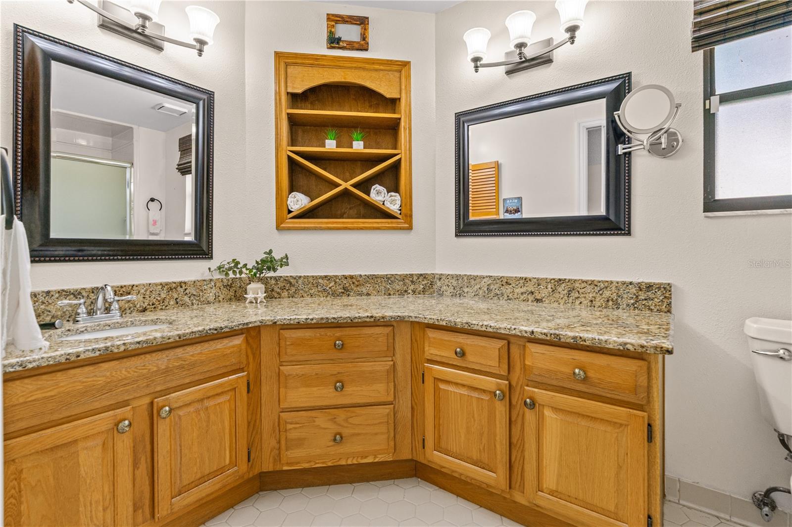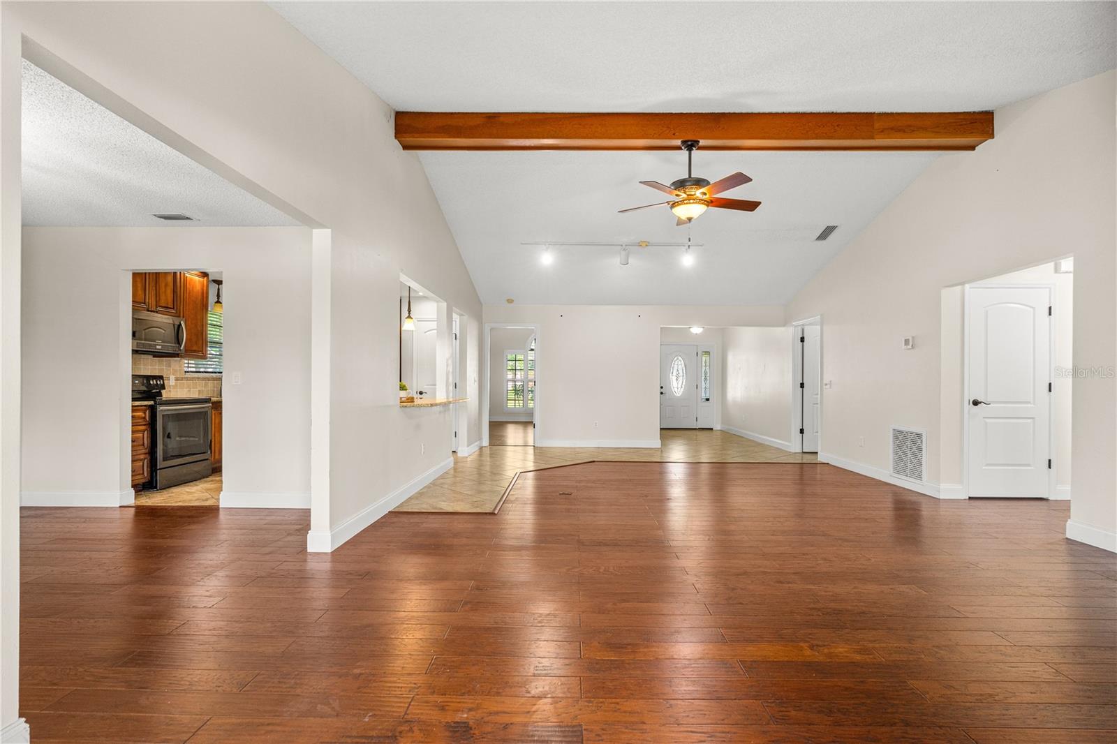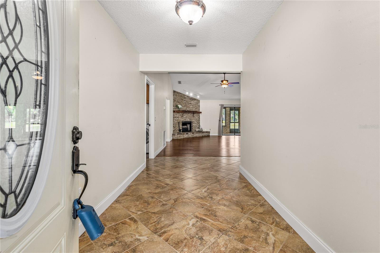 Beautifully Renovated Lakefront Beauty! This exceptional waterfront home is set in the peaceful and established community of Bryan Cave Estates. Roof is 2022. Step inside and immediately feel the warmth of the inviting living space featuring beautiful wood flooring, oversized tile, and a charming fireplace as the focal point. The gourmet kitchen, completely remodeled to the studs, features custom cabinetry, granite countertops, premium appliances, and elegant finishes that make it a chef's dream. With a split-bedroom floor plan, the home provides privacy and comfort for everyone. The primary suite is a serene retreat, while the guest bath has been fully updated with a brand-new walk-in shower and a custom vanity. Enjoy peaceful mornings on the screened-in patio, sipping coffee as you take in the tranquil lake views. The interior laundry room, separate dining room, and oversized garage with loft storage add everyday convenience to this already impressive home. Recent improvements: 2022 roof New gutters abd leaf guard system Newer HVAC system. Newer engineered wood & tile flooring. All newer interior doors, baseboards, and hardware. Newer etched-glass front entry door. Granite countertops in kitchen & bathrooms. Six newer ceiling fans & updated light fixtures throughout. Newer sliding glass door to screened patio. Newer dining room chandelier. Plantation shutters in the primary suite. Updated toilets, new irrigation pump & gutter screens. Blinds throughout. Garage loft with added flooring for storage. This is a wonderful opportunity to own a water view home with beautiful updates in a fabulous neighborhood!