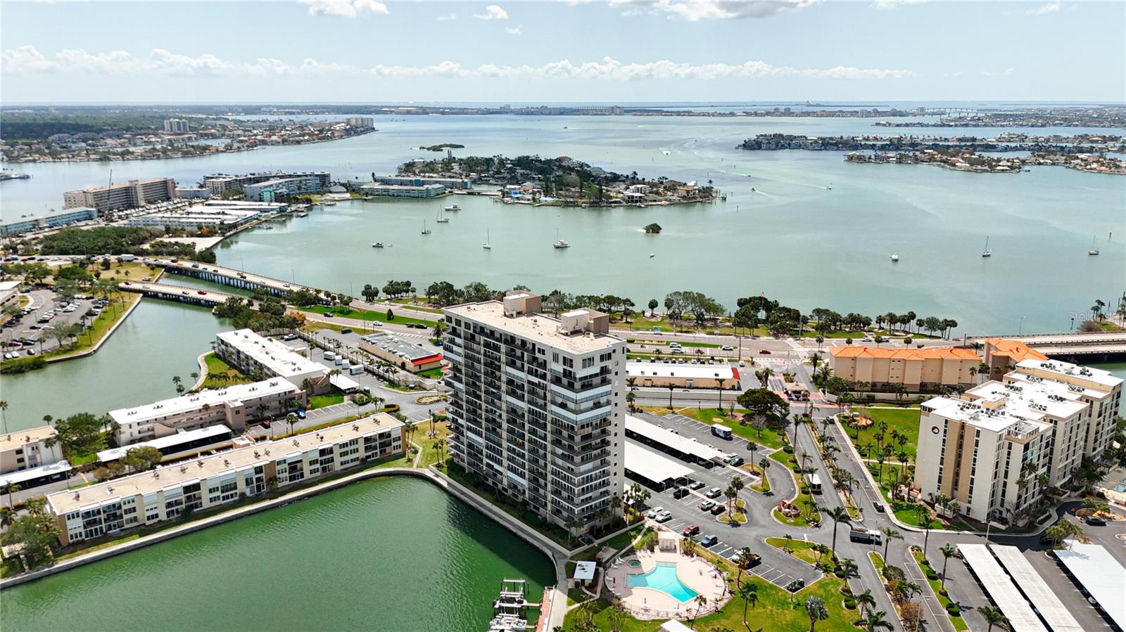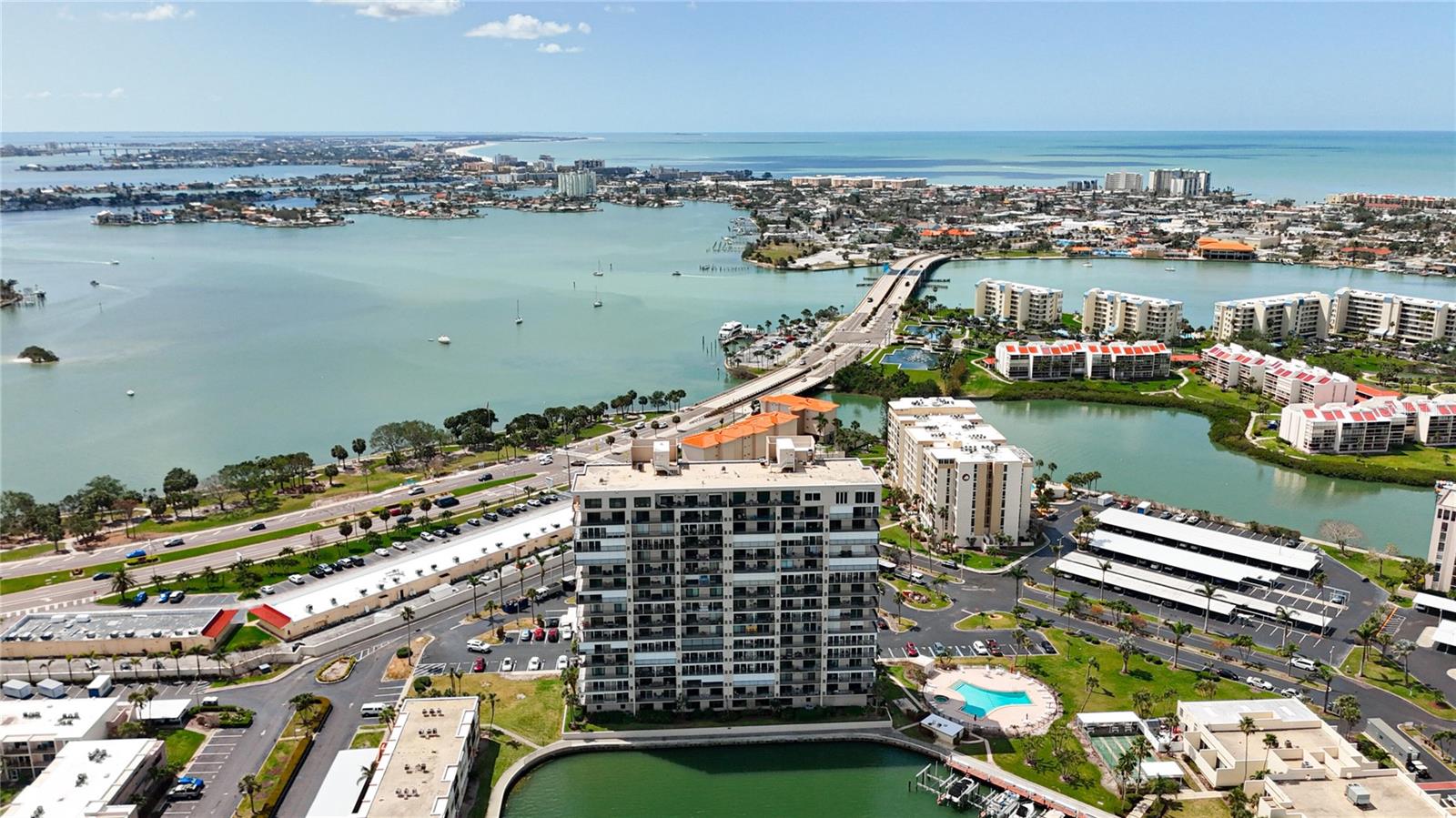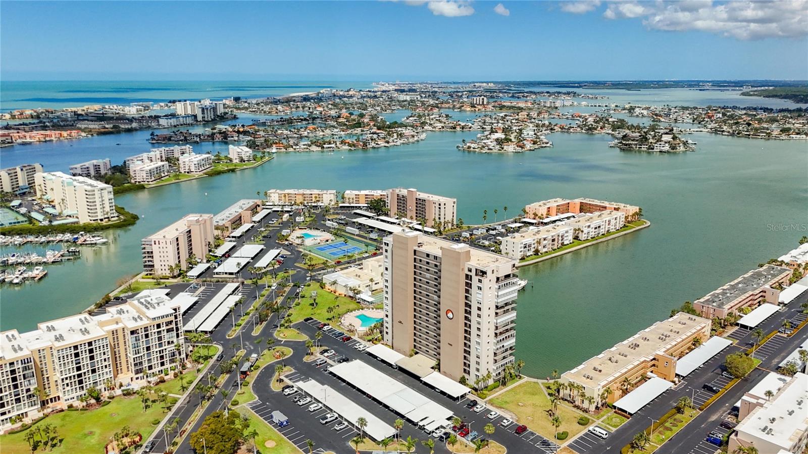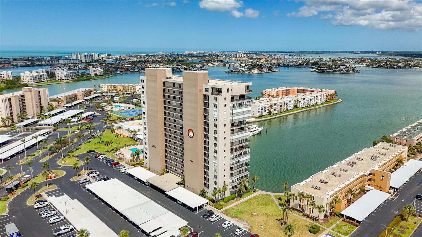 WATER VIEWS! This stunning 10th floor condo has breathtaking water views from every window. Gorgeous views of Boca Ciega Bay, the Gulf and beautiful natural sunlight throughout. This move-in-ready condo features a brand-new modern kitchen with premium stainless-steel appliances, granite countertops, custom wood cabinetry, stylish backsplash, and a spacious breakfast bar. The open-concept layout flows seamlessly into the expansive 26-foot private balcony, offering unobstructed sunrise and sunset views, plus daily dolphin sightings. The completely remodeled primary suite boasts an expanded spa-like shower, elegant finishes, and a custom walk-in closet. Additional upgrades include beautiful stylish tile flooring throughout, fresh paint, and a full-size washer and dryer. Enjoy ample storage with a private balcony closet, an extra hallway closet, and a climate-controlled walk-in storage unit on the ground floor. The unit also includes assigned covered parking for convenience. Located in a gated, 24-hour secured community, Bay Island offers resort-style living with six heated pools, a fitness center with saunas, tennis and pickleball courts, a marina with boat slips (waitlist available), and a 1.25-mile waterfront walking trail. In addition to outdoor grilling stations, a newly renovated clubhouse with a billiard room, game room, and social events. With the Milestone and SIRS reports completed and the seller motivated, this move-in-ready unit presents an unparalleled waterfront retreat. Don’t miss this exceptional opportunity! Just minutes from St. Pete Beach and downtown St. Petersburg, this stunning condo is a terrific blend of luxury, convenience, and coastal charm. Not to mention top-rated dining, shopping, golf, and entertainment. Enjoy a piece of Paradise.