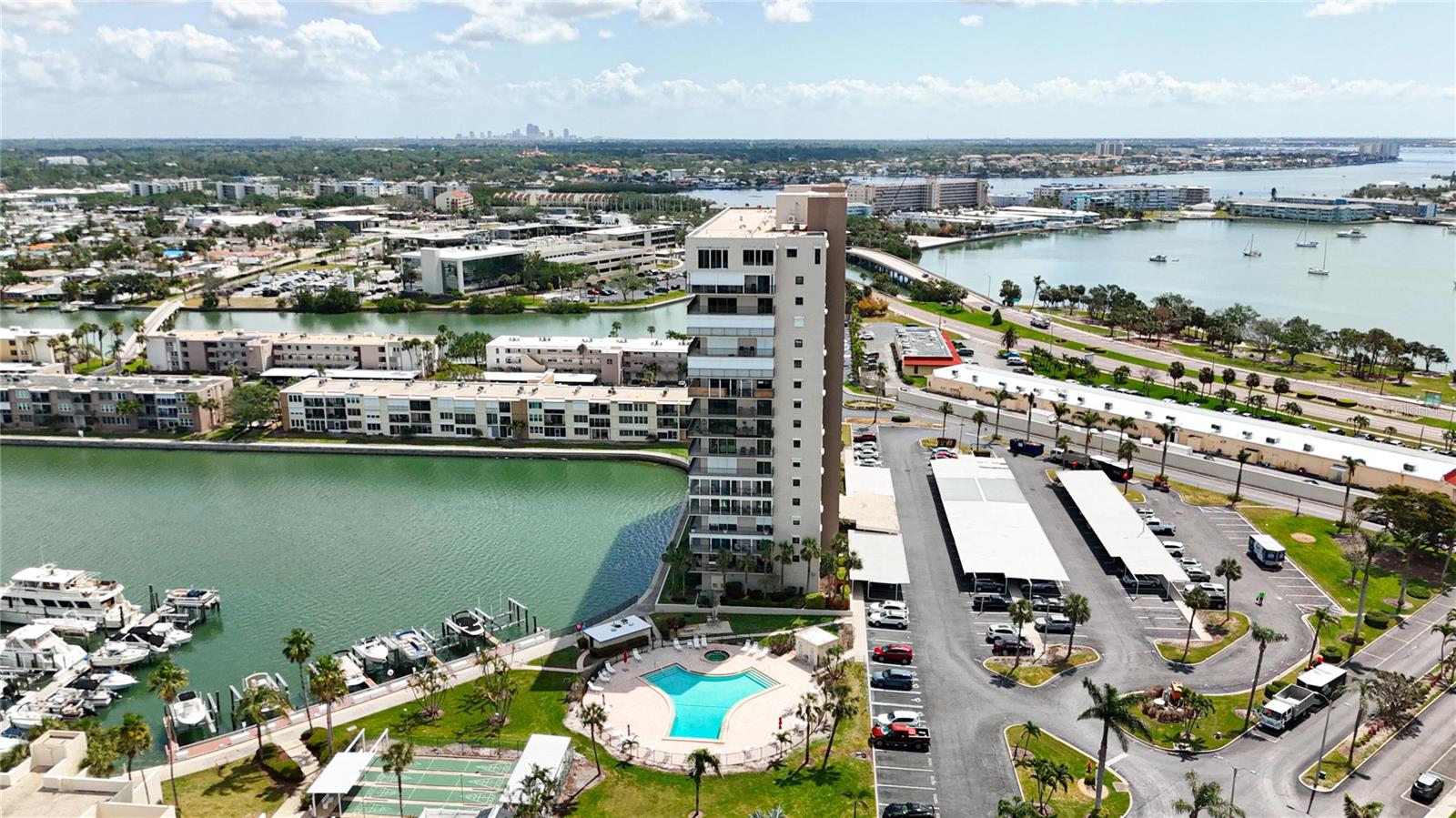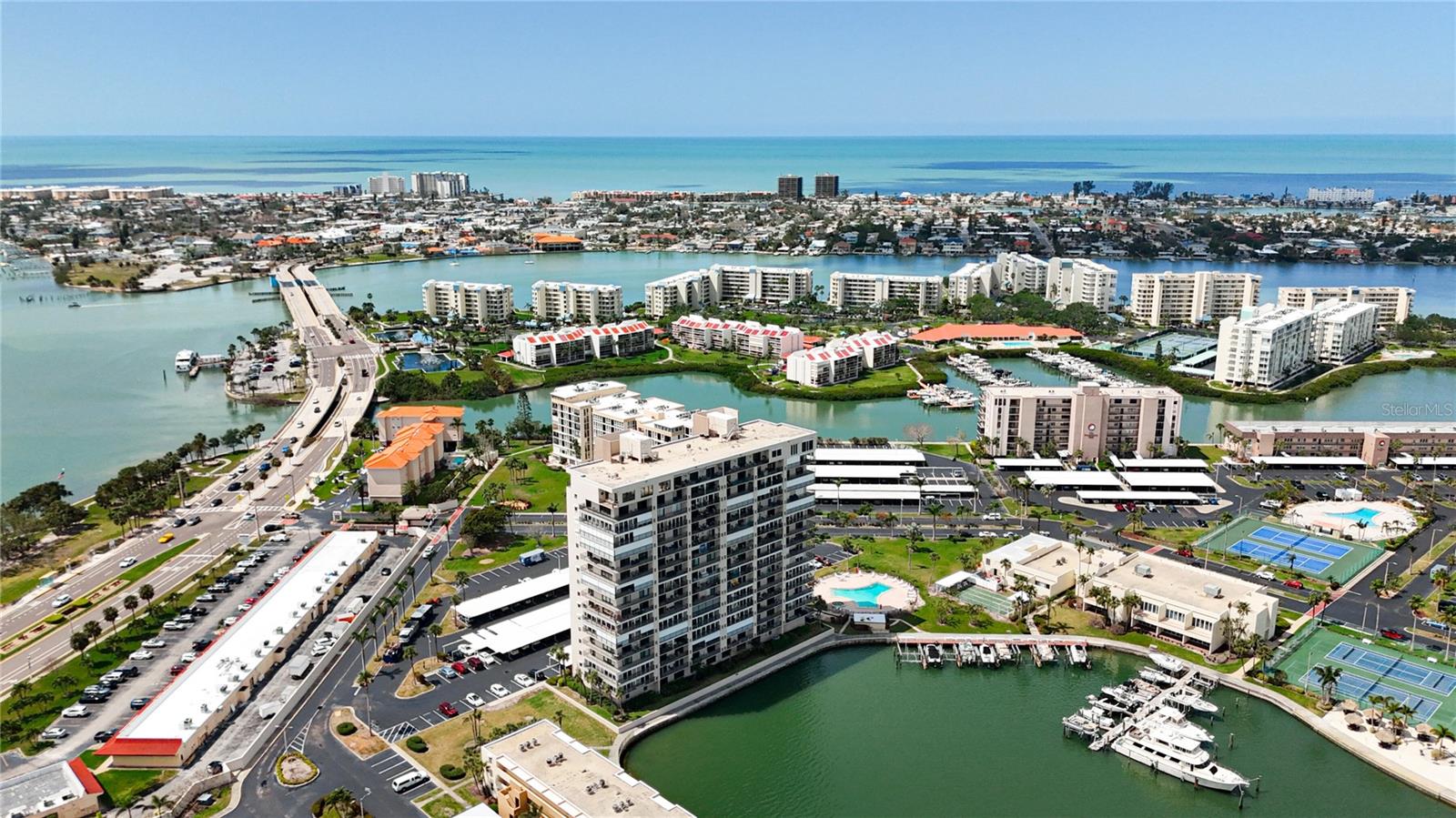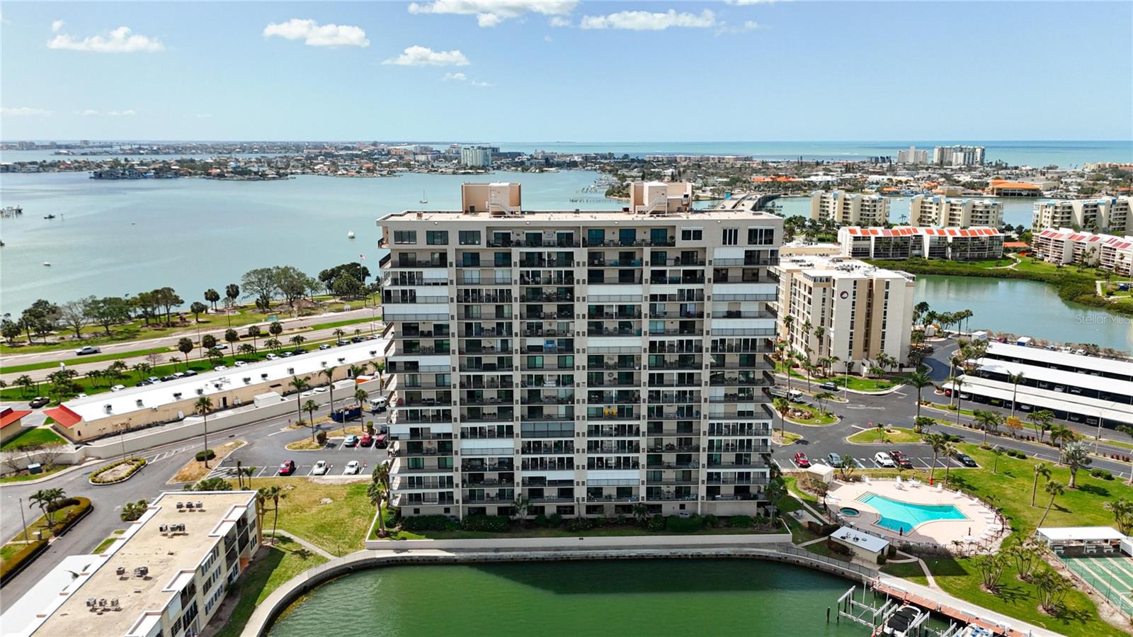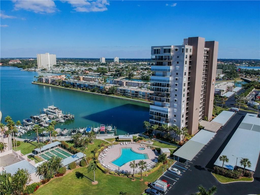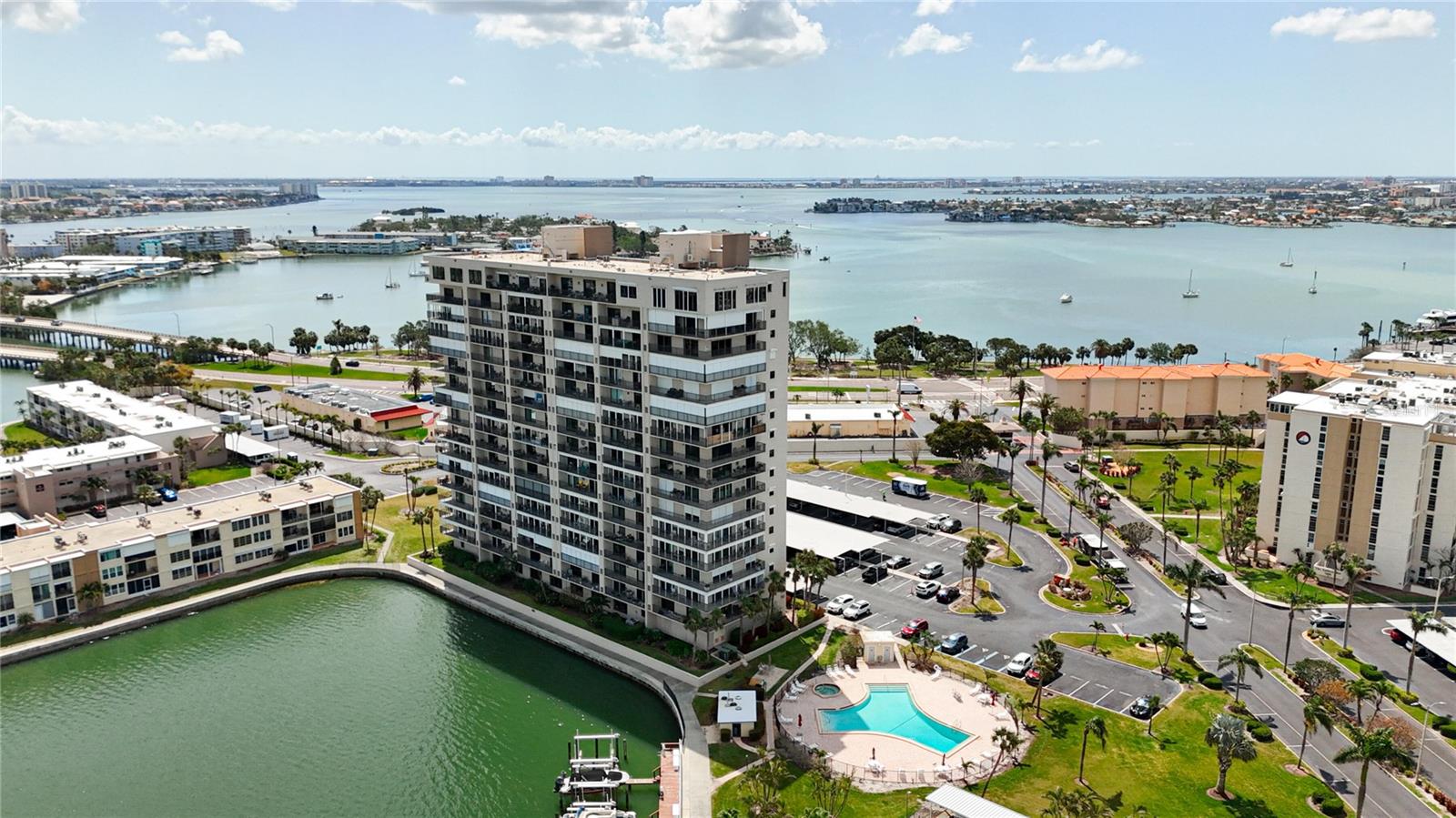 WATER VIEWS! This stunning 10th floor condo has breathtaking water views from every window. Gorgeous views of Boca Ciega Bay, the Gulf and beautiful natural sunlight throughout. This move-in-ready condo features a brand-new modern kitchen with premium stainless-steel appliances, granite countertops, custom wood cabinetry, stylish backsplash, and a spacious breakfast bar. The open-concept layout flows seamlessly into the expansive 26-foot private balcony, offering unobstructed sunrise and sunset views, plus daily dolphin sightings. The completely remodeled primary suite boasts an expanded spa-like shower, elegant finishes, and a custom walk-in closet. Additional upgrades include beautiful stylish tile flooring throughout, fresh paint, and a full-size washer and dryer. Enjoy ample storage with a private balcony closet, an extra hallway closet, and a climate-controlled walk-in storage unit on the ground floor. The unit also includes assigned covered parking for convenience. Located in a gated, 24-hour secured community, Bay Island offers resort-style living with six heated pools, a fitness center with saunas, tennis and pickleball courts, a marina with boat slips (waitlist available), and a 1.25-mile waterfront walking trail. In addition to outdoor grilling stations, a newly renovated clubhouse with a billiard room, game room, and social events. With the Milestone and SIRS reports completed and the seller motivated, this move-in-ready unit presents an unparalleled waterfront retreat. Don’t miss this exceptional opportunity! Just minutes from St. Pete Beach and downtown St. Petersburg, this stunning condo is a terrific blend of luxury, convenience, and coastal charm. Not to mention top-rated dining, shopping, golf, and entertainment. Enjoy a piece of Paradise.