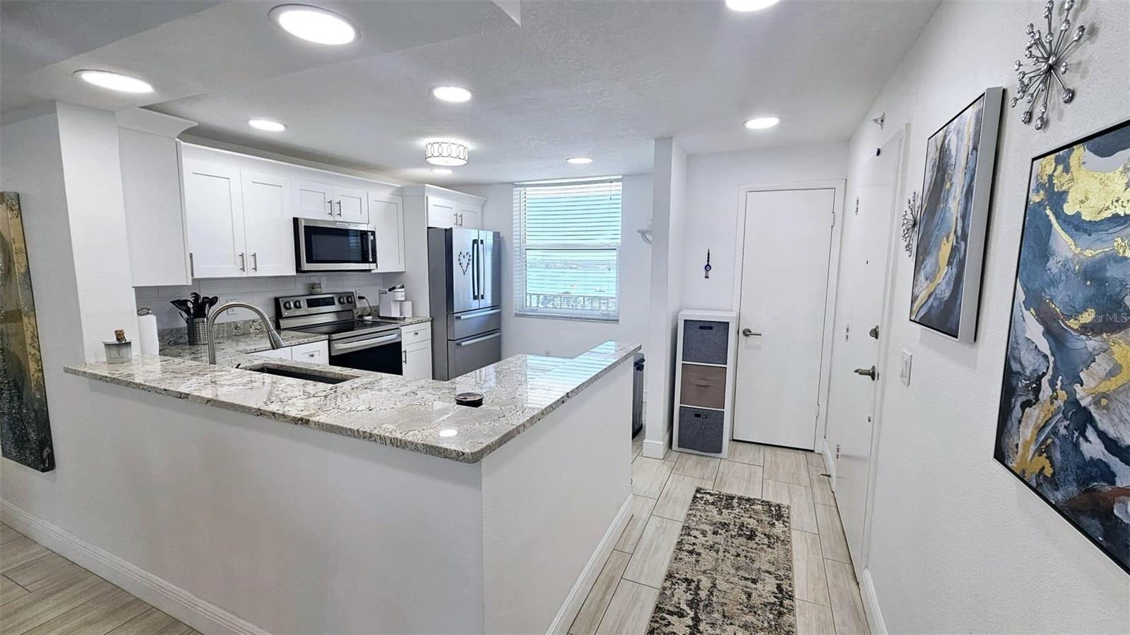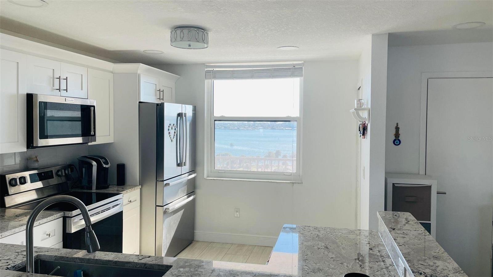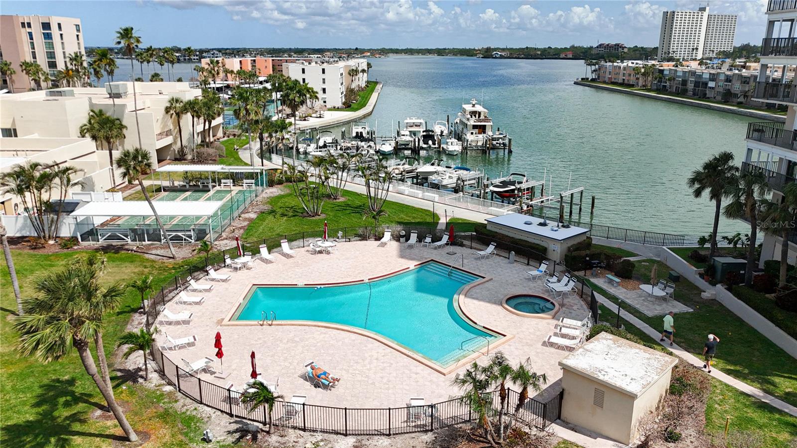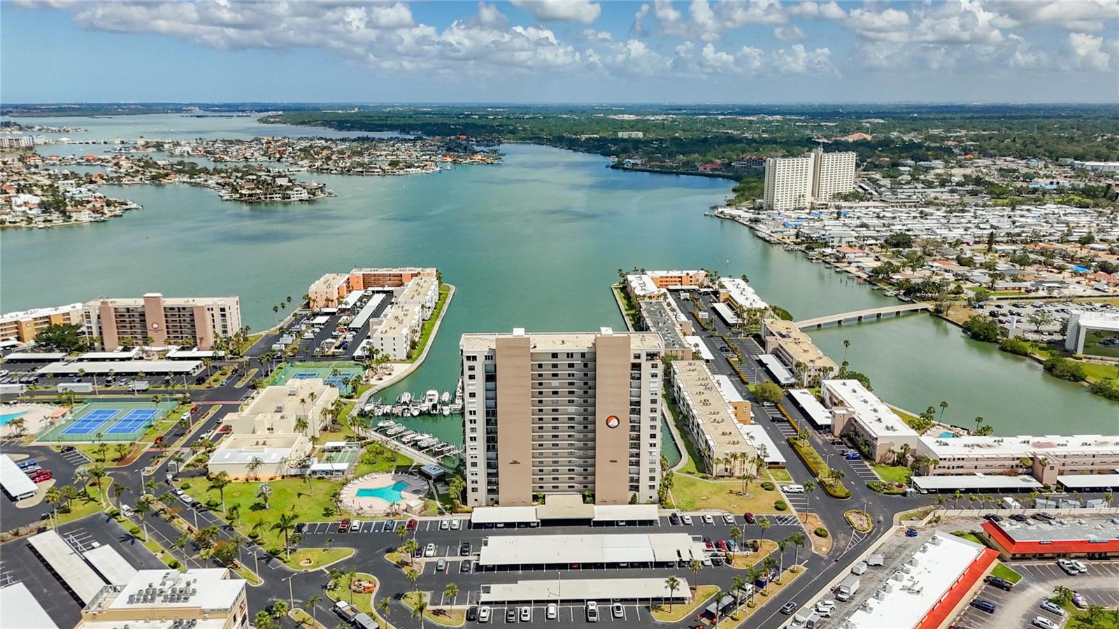 WATER VIEWS! This stunning 10th floor condo has breathtaking water views from every window. Gorgeous views of Boca Ciega Bay, the Gulf and beautiful natural sunlight throughout. This move-in-ready condo features a brand-new modern kitchen with premium stainless-steel appliances, granite countertops, custom wood cabinetry, stylish backsplash, and a spacious breakfast bar. The open-concept layout flows seamlessly into the expansive 26-foot private balcony, offering unobstructed sunrise and sunset views, plus daily dolphin sightings. The completely remodeled primary suite boasts an expanded spa-like shower, elegant finishes, and a custom walk-in closet. Additional upgrades include beautiful stylish tile flooring throughout, fresh paint, and a full-size washer and dryer. Enjoy ample storage with a private balcony closet, an extra hallway closet, and a climate-controlled walk-in storage unit on the ground floor. The unit also includes assigned covered parking for convenience. Located in a gated, 24-hour secured community, Bay Island offers resort-style living with six heated pools, a fitness center with saunas, tennis and pickleball courts, a marina with boat slips (waitlist available), and a 1.25-mile waterfront walking trail. In addition to outdoor grilling stations, a newly renovated clubhouse with a billiard room, game room, and social events. With the Milestone and SIRS reports completed and the seller motivated, this move-in-ready unit presents an unparalleled waterfront retreat. Don’t miss this exceptional opportunity! Just minutes from St. Pete Beach and downtown St. Petersburg, this stunning condo is a terrific blend of luxury, convenience, and coastal charm. Not to mention top-rated dining, shopping, golf, and entertainment. Enjoy a piece of Paradise.