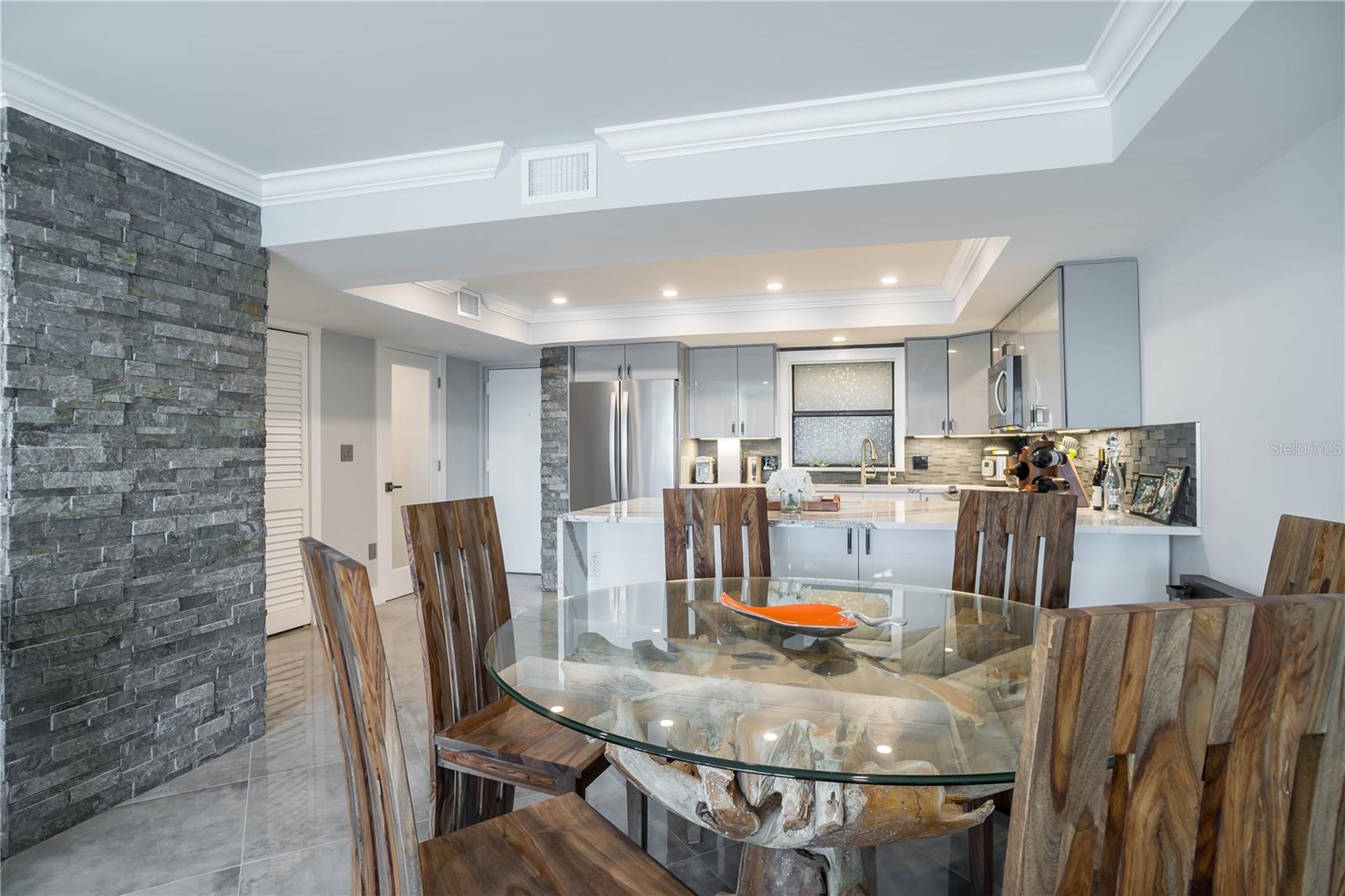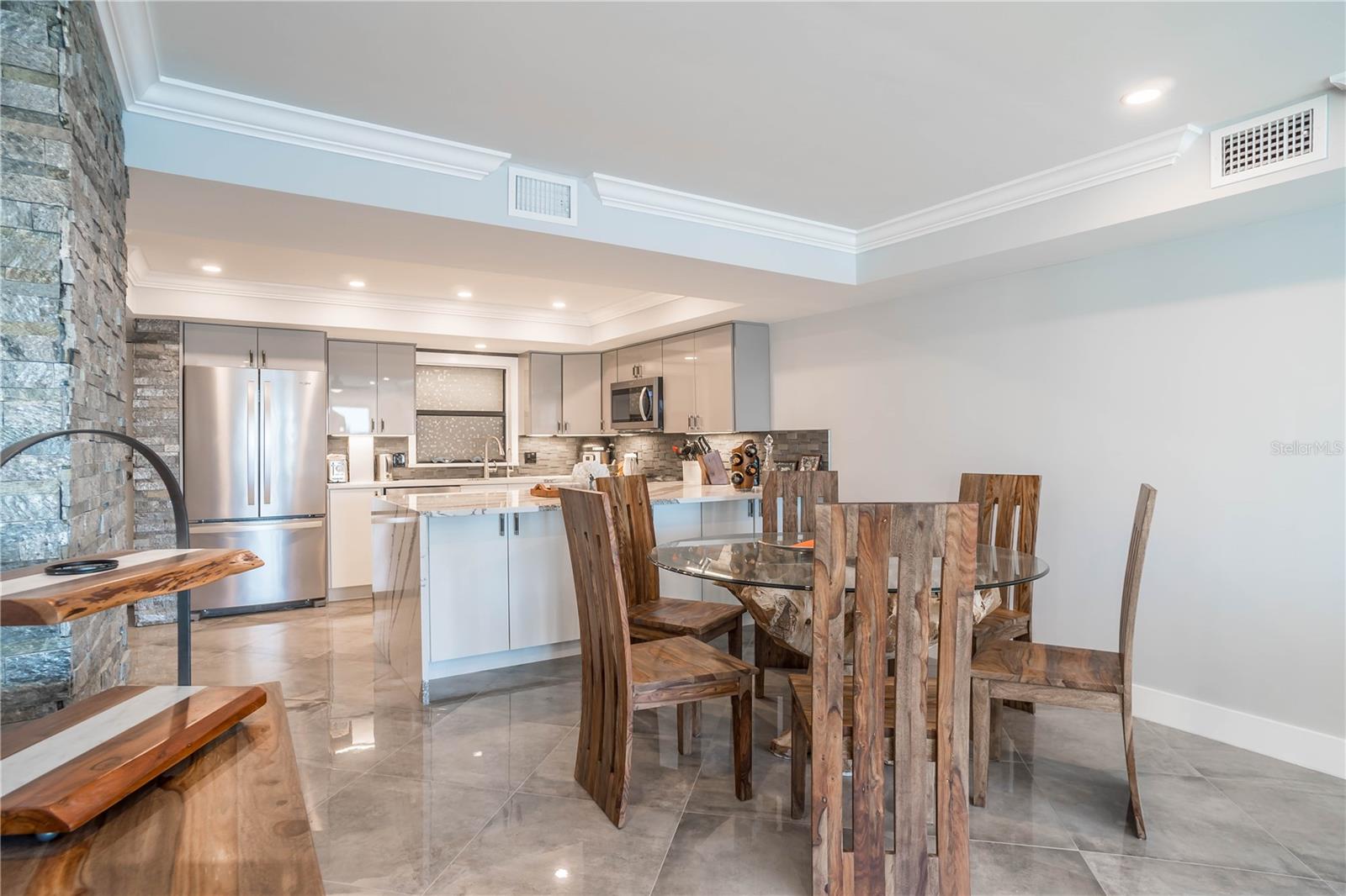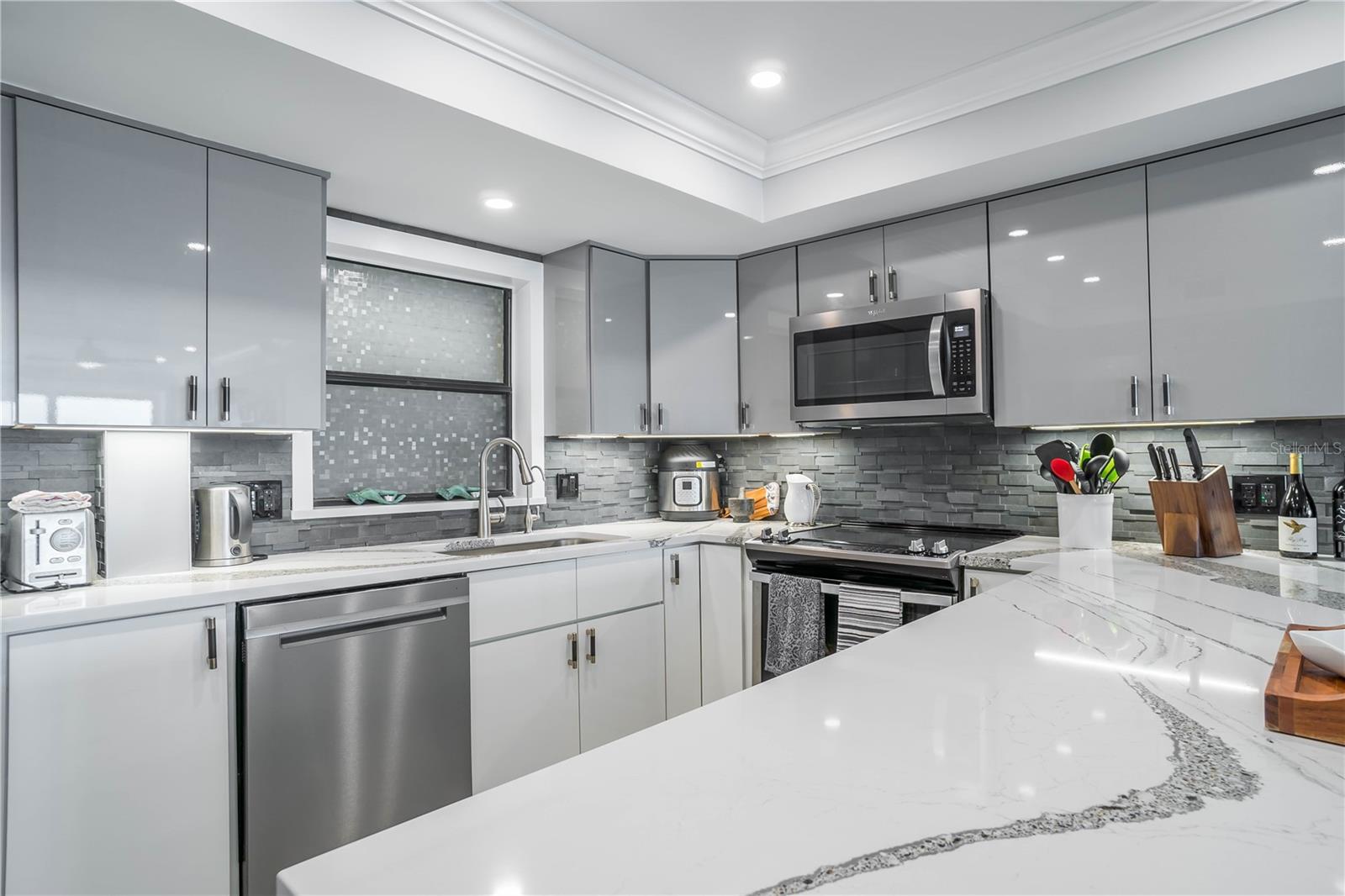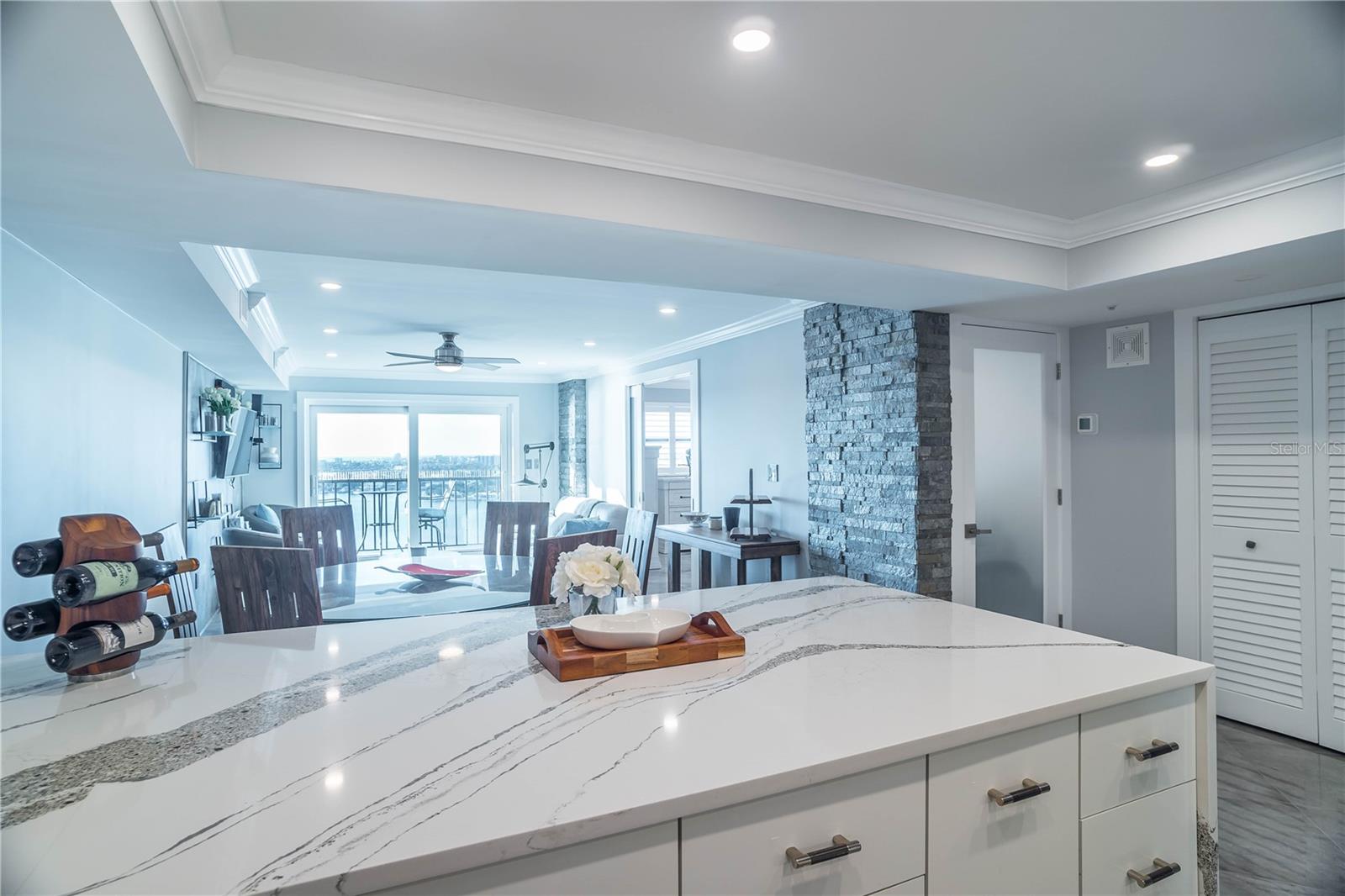 TURN KEY with high-end décor and furniture INCLUDED! LOW condo fees, STRONG Reserves, and NO Assessments! Step into the pinnacle of luxury with this exquisite penthouse condo, where unparalleled west-facing views of the Gulf await. Positioned on the top floor, this gem has undergone a comprehensive transformation, achieving a standard of luxury and sophistication that is truly rare. With every inch meticulously renovated, this home showcases the finest quality finishes and craftsmanship, promising a living experience that is as breathtaking as its views. The journey begins with striking, oversized diagonal porcelain tile flooring that sets the stage for an interior brimming with elegance and light. The heart of this home, a chef’s kitchen, boasts all-new, top-of-the-line stainless steel appliances and dazzling quartz countertops, complete with a waterfall edge. The addition of high gloss, soft-close custom cabinetry and a stylish backsplash elevates the space further. Designed with an open floor plan, the kitchen flows seamlessly into the living area, ensuring that the captivating Gulf views are always within sight. Not a detail has been overlooked in enhancing both the beauty and functionality of this penthouse. From upgraded plumbing and modern bathrooms to a tankless hot water heater and meticulously selected fixtures, every element has been chosen with the utmost care. Privacy and luxury converge in the master suite, accessible through custom pocket French doors. Here, Gulf views offer a tranquil backdrop to every moment, complemented by his and hers custom closets and an integrated office space, ensuring comfort and convenience. This penthouse's strategic location offers expedient access to the finest beaches, from Treasure Island to St. Pete Beach, and is merely a short drive from the dynamic offerings of Downtown St. Pete, Clearwater, Indian Rocks Beach, and Ft. DeSoto. With the added benefit of covered parking and the option for negotiated furnishings, this opportunity is truly unparalleled.