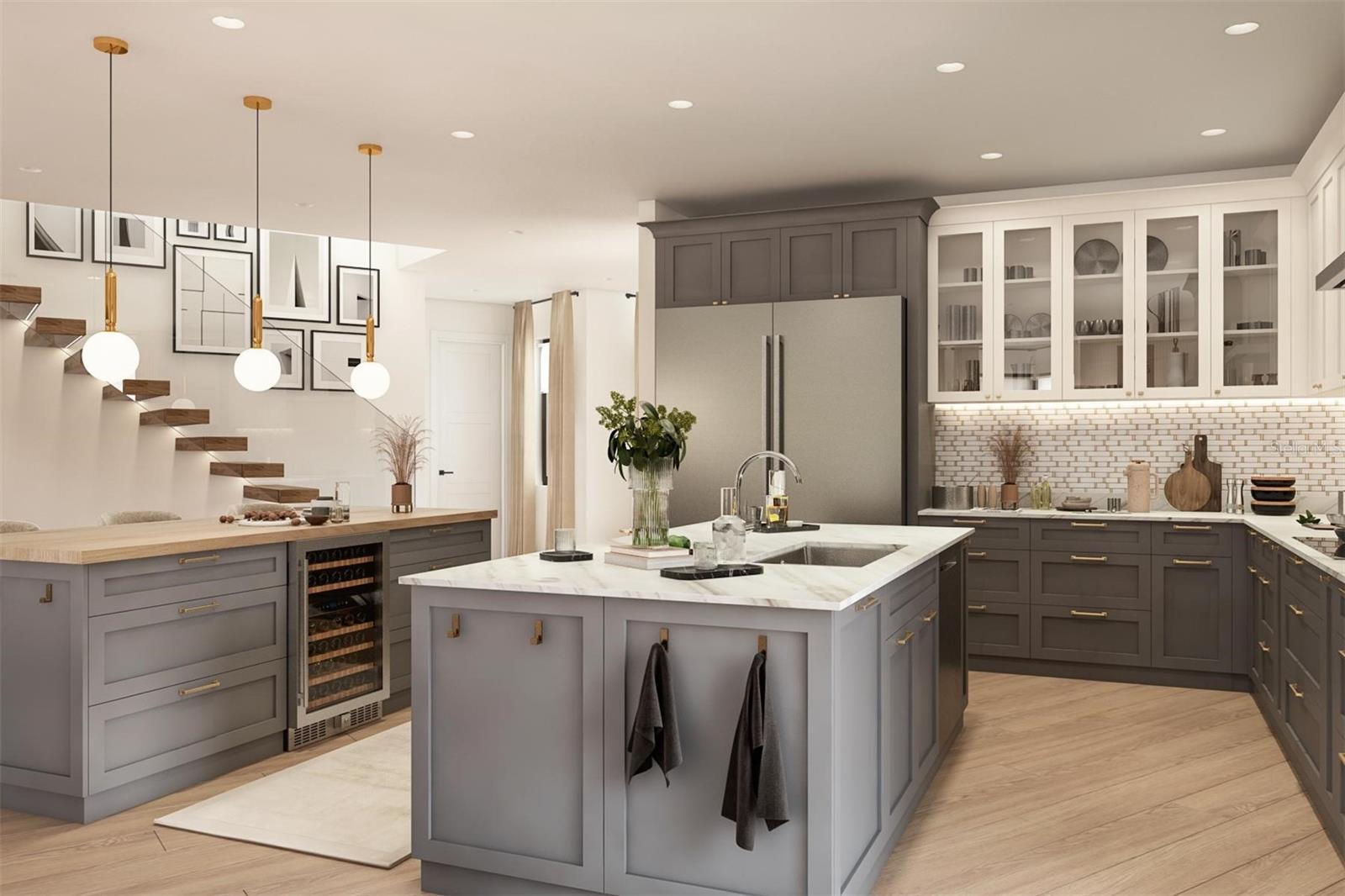 Under Construction. Another Magnificent Kelner Home with a completion date of January 2025 is now available. Welcome to this exquisite Pasadena Isle waterfront home, situated on over 1/3 of an acre and featuring a massive 132 feet of waterfront, this home offers unparalleled luxury and comfort. There is still time to pick your personal fit and finish choices if you hurry! This stunning property, in addition to a pool and dock, boasts 5 bedrooms, 5 full baths, and 2 powder baths within over 4,400 sq. ft. of living space and spans more than 8,000 sq. ft. overall. The main living area includes a chef’s designed kitchen with high-line appliances, perfect for culinary enthusiasts. The home features an elevator for convenience and over 80 feet of floor-to-ceiling glass windows and doors that overlook the pool and waterfront, providing breathtaking views. Windows and sliders are top-of-the-line, PGT Aluminum-framed hurricane impact providing exceptional impact protection, noise reduction and energy savings. The living room, dining room, and owner's suite all offer spectacular waterfront vistas, seamlessly integrated with a massive 40-foot covered lanai, ideal for enjoying the outdoors. A powder bath is conveniently located on this level for guests. The owner's suite, situated on the main living level, offers beautiful water views and includes a luxurious master bath with a glass-enclosed shower, his and her vanities, and a Roman soaking tub. The suite also features a large walk-in closet, the size of a small bedroom. On the second floor, you’ll find three additional bedrooms, each with its own walk-in closet and ensuite full bathroom. This floor also includes a large movie/media room and an additional powder bath for guests. For car enthusiasts, the property includes a 4-car garage and covered parking for 2 additional cars. Additional amenities include fireplaces, design accent walls, a floating staircase, and a wine cellar. The home is illuminated with ample LED lighting and features PGT aluminum-framed hurricane impact windows throughout, ensuring both style and safety. The luxurious pool overlooks the waterfront, creating a perfect retreat for relaxation and entertainment. A large dock with electric and water is perfect for keeping your boat, and the location offers excellent fishing opportunities. Experience the ultimate in waterfront living with this exceptional Pasadena Isle home, where every detail is crafted for luxury and comfort. And remember, this isn't just any home. It's a Kelner Home.