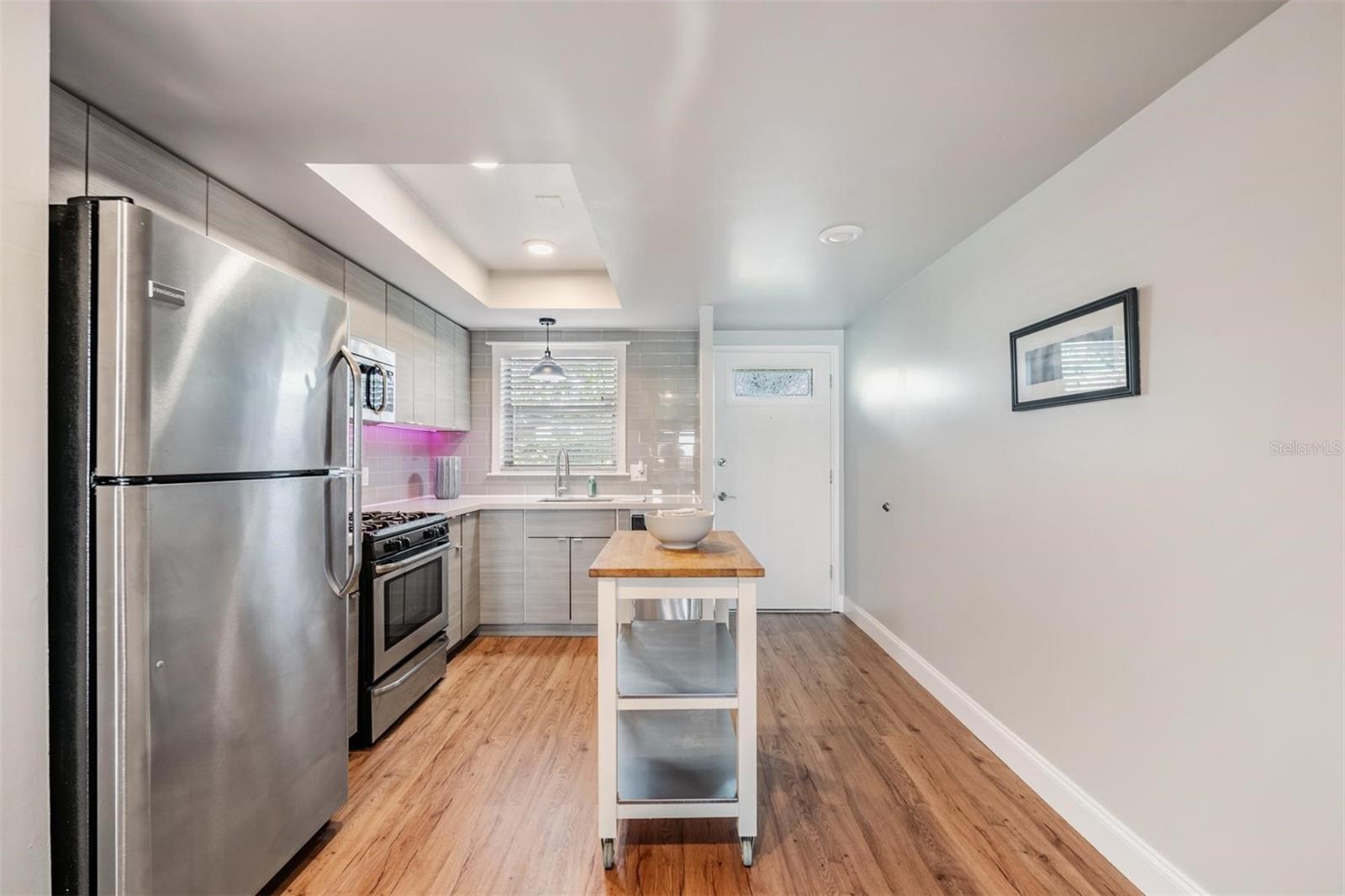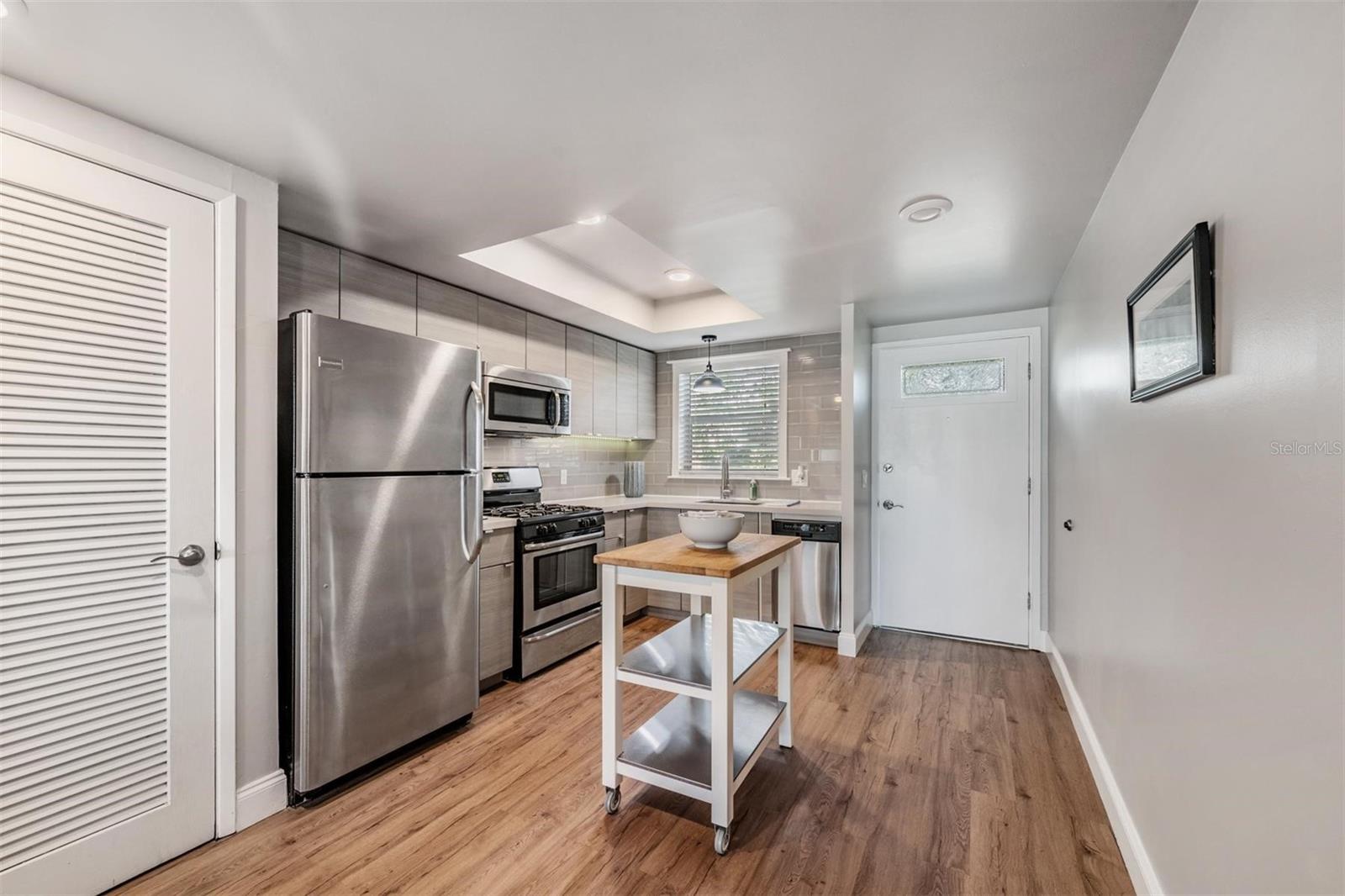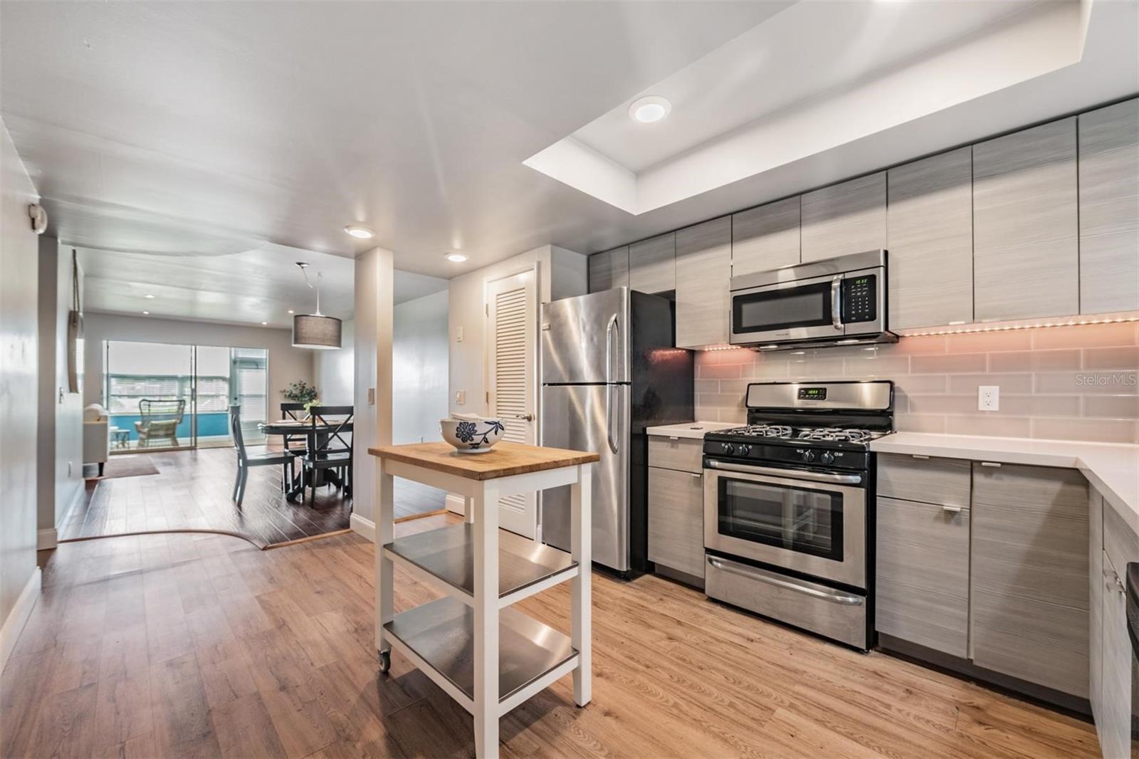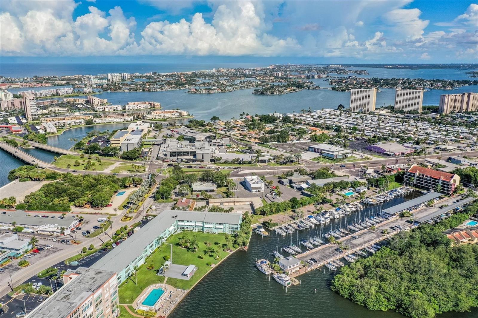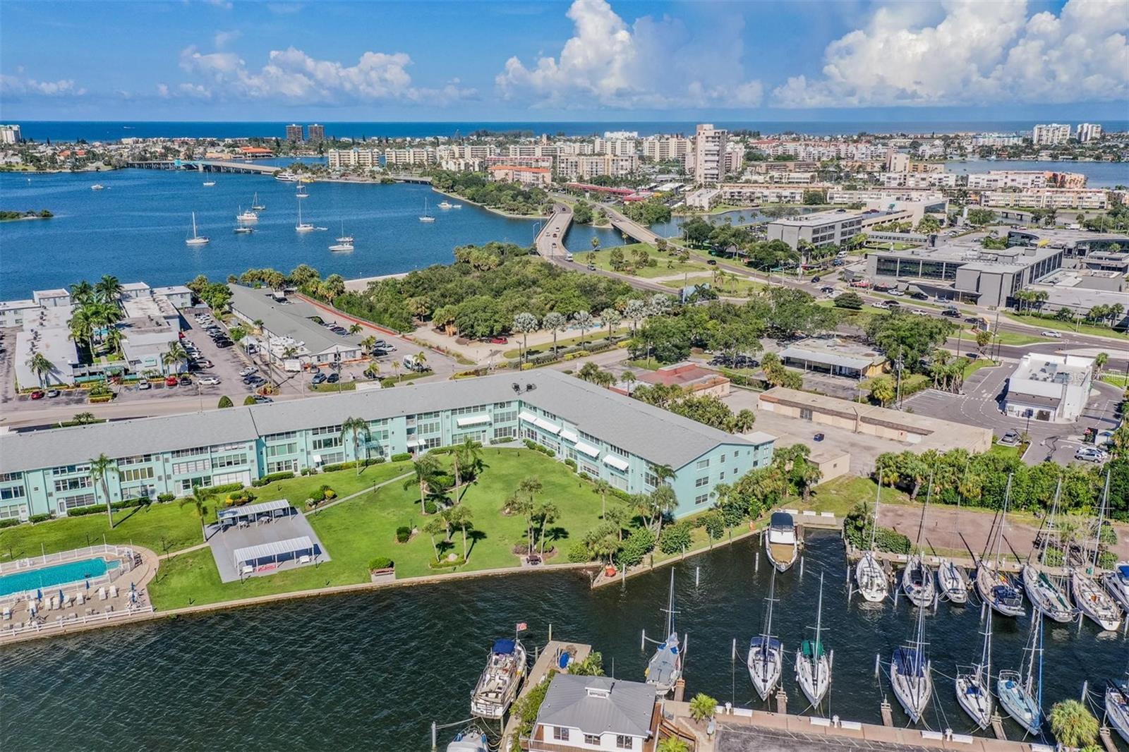 ‘RARE’ OPPORTUNITY to own a First floor condo overlooking the Boca Ciega Bay and next to Pasadena Boat Marina. This is a 55 Plus Community close to beach, shopping and restaurants. It's all about "Location" and having access to two entrance/exit doors that this property has to offer. This beautiful one bedroom/one bath condo with large walk-in closet. Featuring luxury final flooring throughout and tile in the bathroom. The Florida room can be used to relax and view Boca Ciega Bay. Watch the dolphins swim everyday! Kitchen has stainless steel appliances, quartz countertops, Gas Range in kitchen, and moveable island. Wood Blinds in all rooms and rainfall nozzle shower head in Bathroom. Parking space is located near the front door. Amenities include Pool, BBQ Grills and you can fish almost outside of your back door. Upgrades include new paint, electrical box, Kitchen cabinets, under counter lighting, baseboards, ceiling fans with lights, fan motor for central air and LED Ceiling lighting. New light switches & outlets, shelving in linen and bedroom closet, fire alarm, and thermostat faux blinds. Currently furnished for staging purposes however all furniture an be included with an offer. Pay only for electricity as all other utilities are included in the monthly maintenance fee such as water, gas, and basic cable.