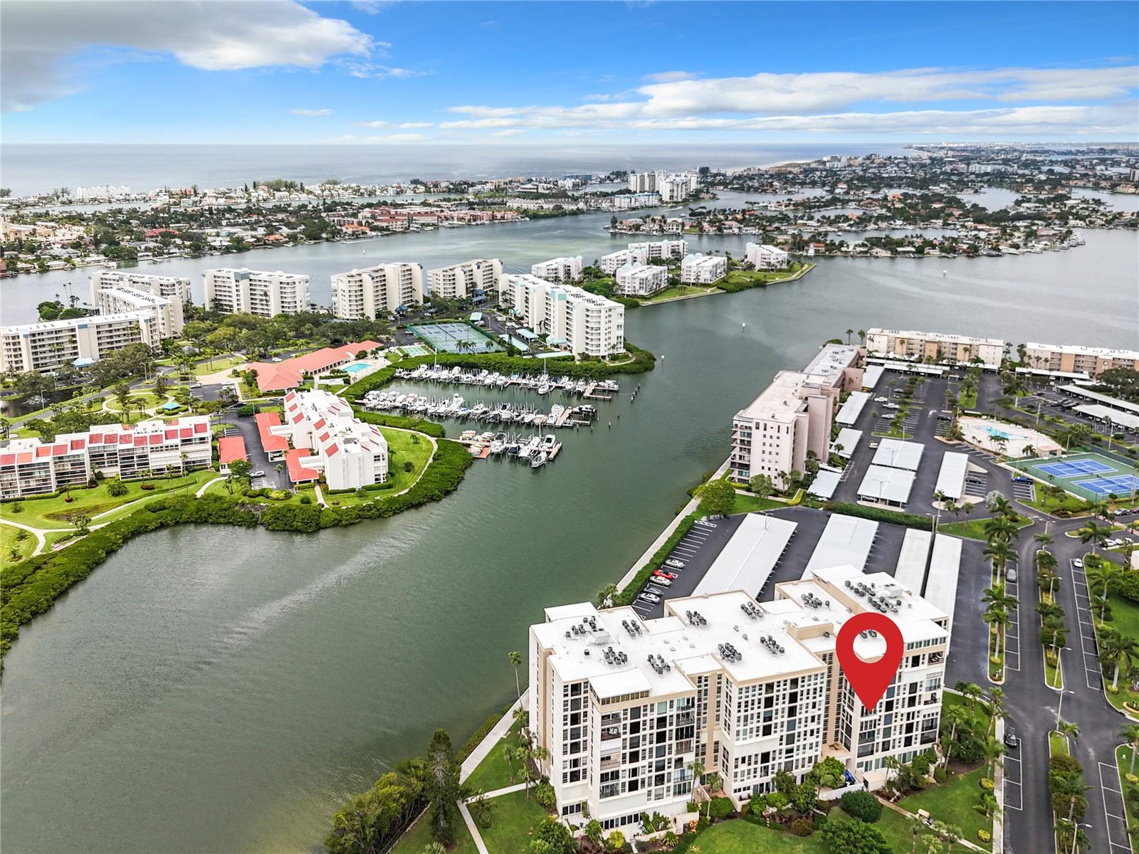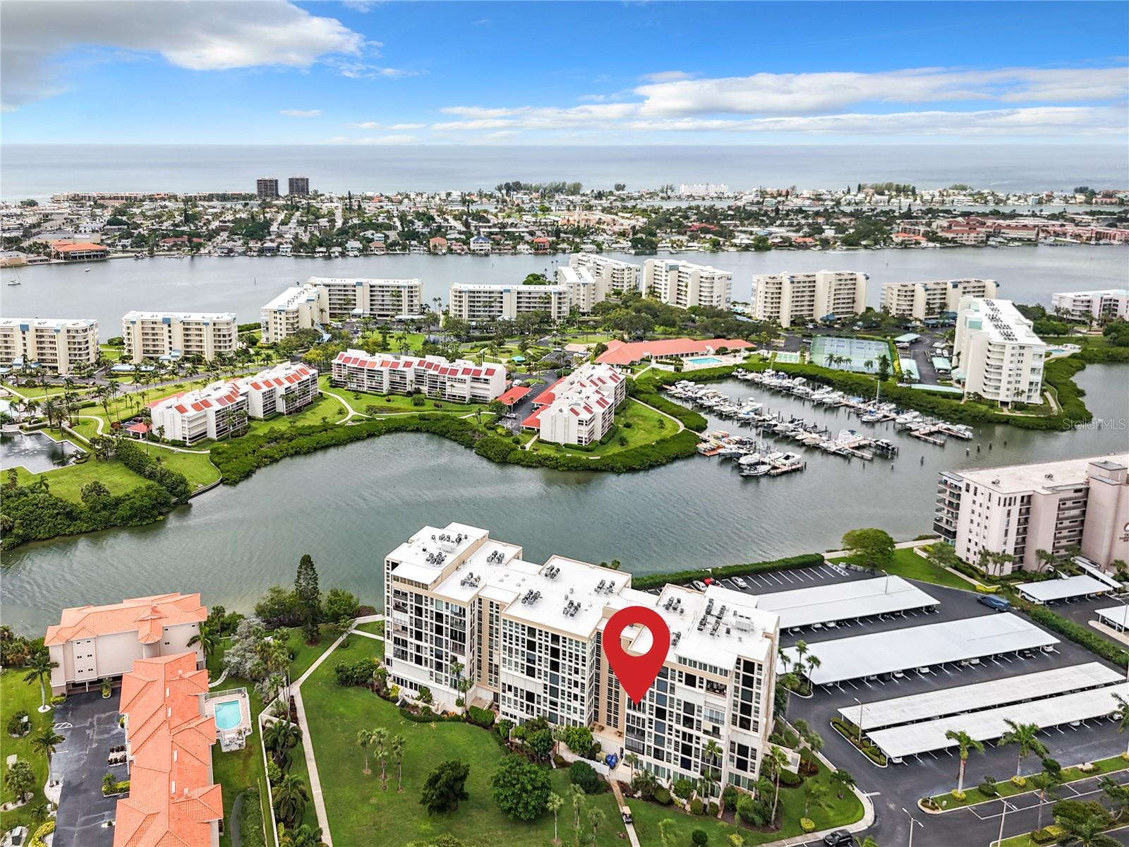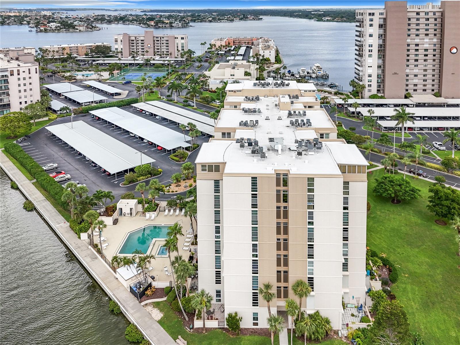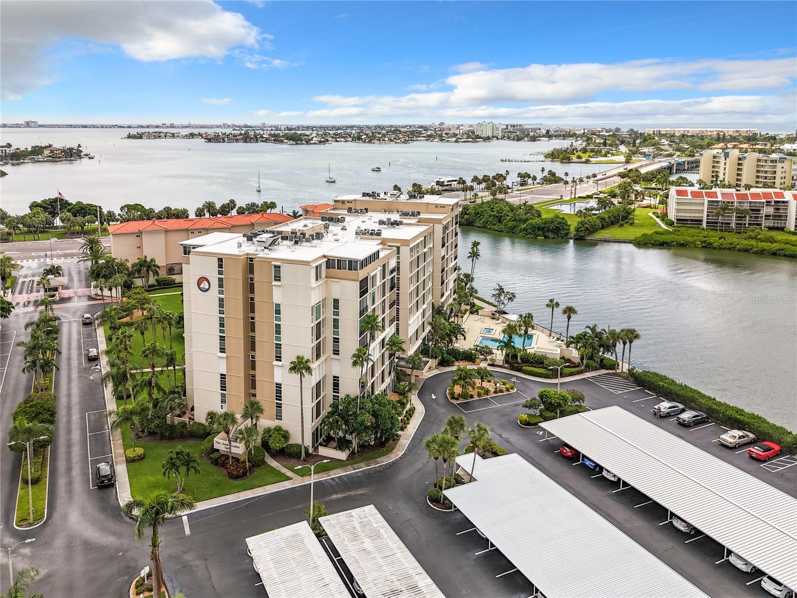 Paradise Found! You will not want to miss the opportunity to own this completely updated, fully furnished 900 square foot, one bedroom, one and half bath condo in the gated community of Bay Islands. This condo is turn-key & a great value! From the moment you drive through the guard gate & travel down the palm tree lined road.. you know you are “home”. The kitchen was completely redesigned and redone in 2021 with new stainless-steel appliances, new cabinets & countertops plus recessed lighting and decorative backsplash. The living & dining area is spacious with views looking towards the bay and downtown St. Pete. The a/c system was replaced in 2023 & the water heater was upgraded to a 50-gallon tank in 2018. This unit has impact doors and windows that were done in 2017. The entire unit was repainted in 2021 & the electrical outlets were also updated to code. The primary bedroom is a very nice size & has its own ensuite bath. For guests there is a convertible couch on the enclosed porch. The Ambassador building is perfectly situated next to one of the six pools on property with heated spa – steps away are the marina, tiki huts, and the fantastic recreational facilities of the immaculate and social neighborhood of Bay Islands, a 55+ community. Ambassador building has its own private lobby and gated door to the elevators and mailbox area. This unit comes with 1 assigned carport. This community offers a fantastic active lifestyle with a never-ending calendar full of activities or relax, either way it is a great place. The property boasts 6 pools, full gym, clubhouse, tennis courts, boat docks on 1st come basis & a 1.25 mile walk around the entire complex. Bay Island is Florida Living at its finest! Minutes to award winning beaches, the exciting vibe of downtown St Petersburg and Tampa Bay Rays baseball in the Tropicana Dome. 20 minutes to Tampa Intl Airport, Tampa Bay Buccaneers and the Stanley Cup Tampa Bay Lightning. A big plus is there is a SunRunner bus stop right outside of the community that will bring you to St. Pete Beach or to downtown St. Pete. This community is centrally located and close to shopping and restaurants. Book your appointment to see this wonderful condo today!