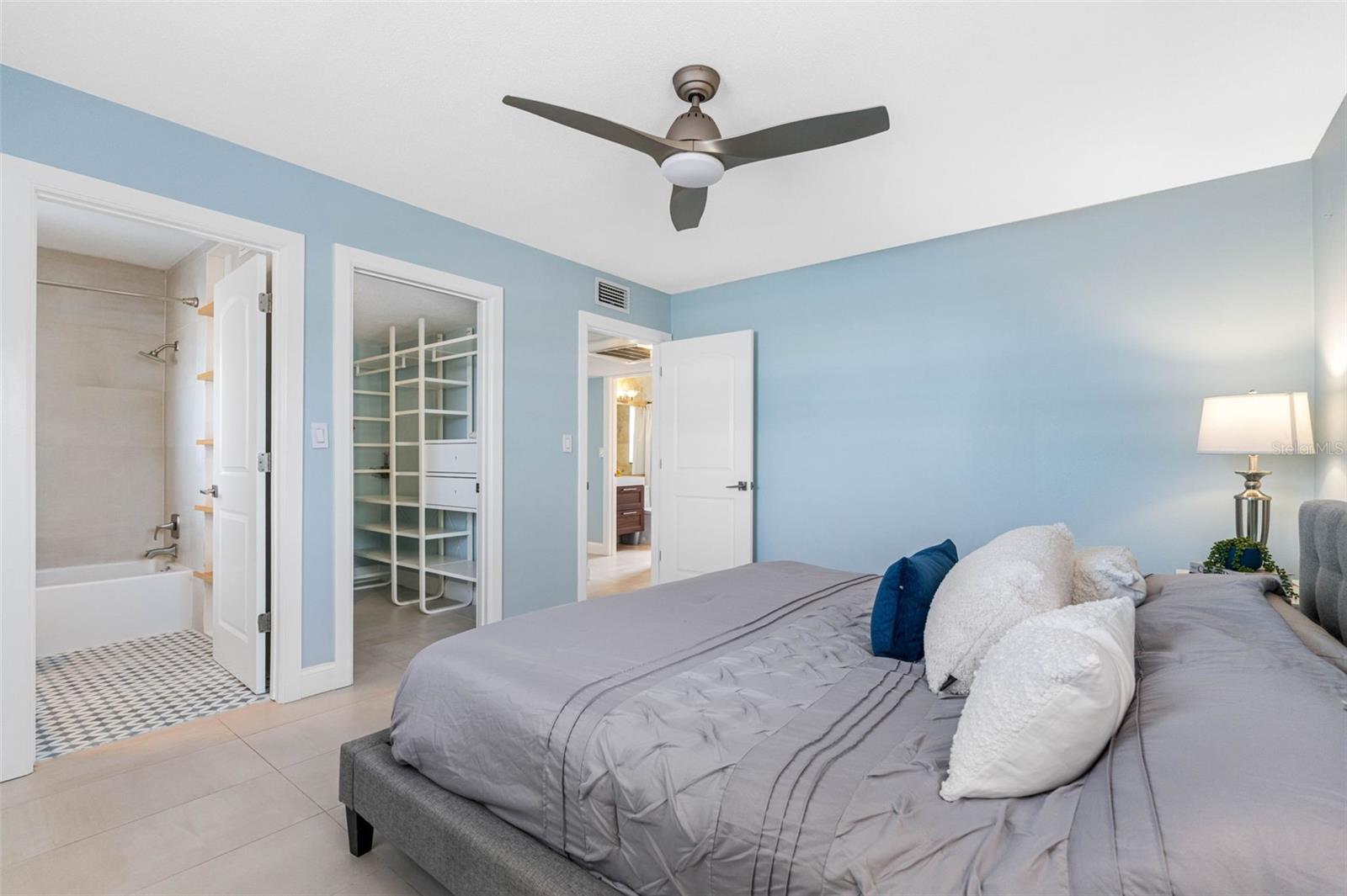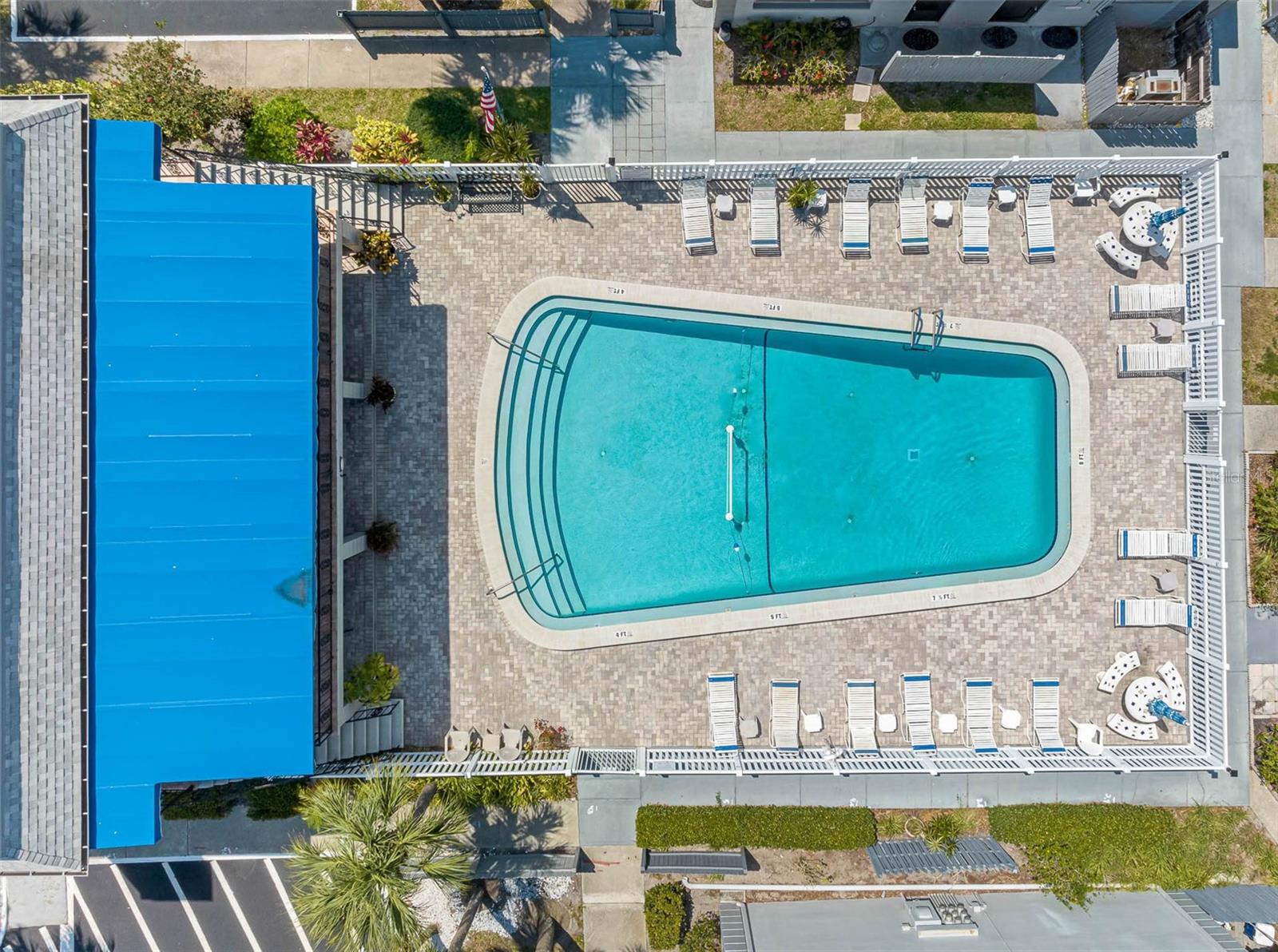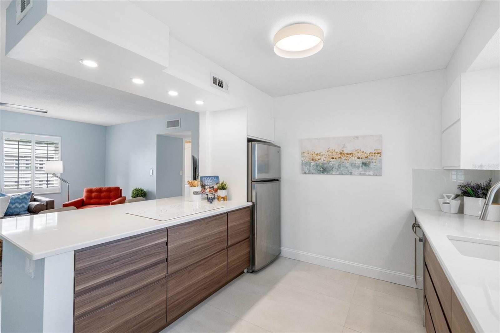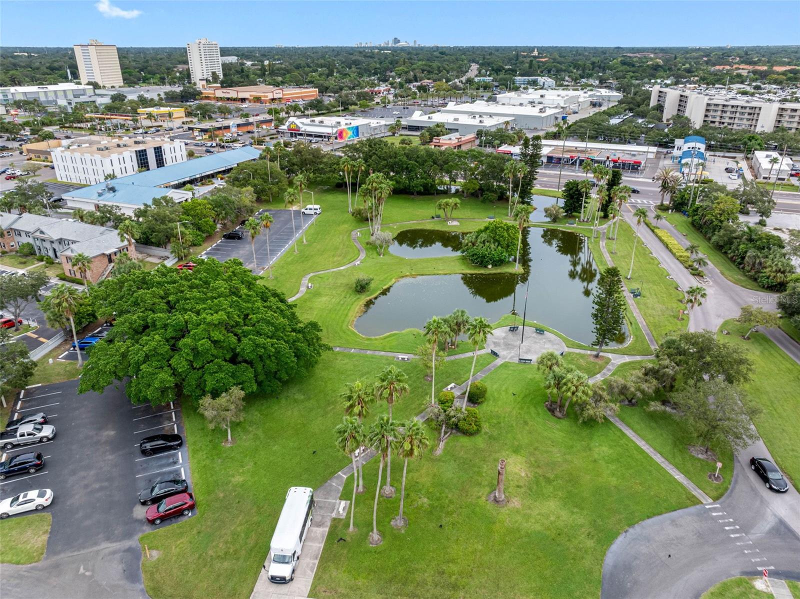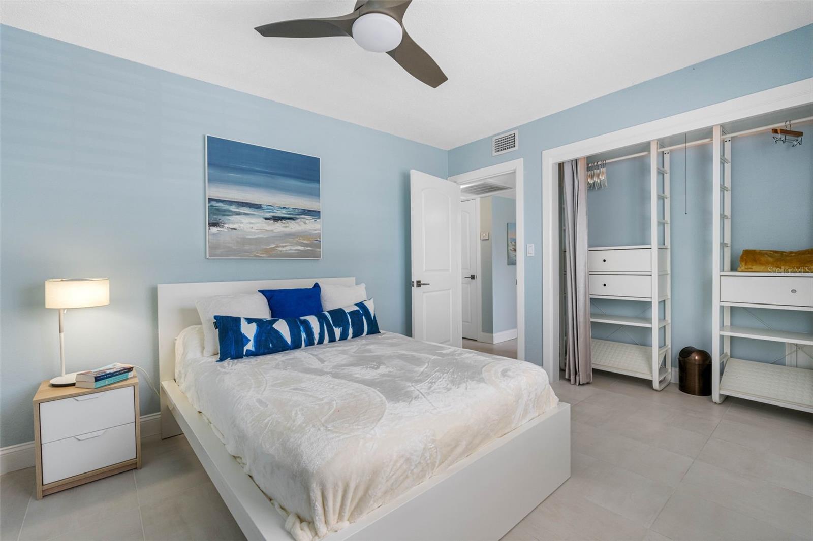 **HOME DID NOT HAVE HURRICANE DAMAGE** Welcome to your beautifully updated modern condo ideally situated near stunning sugary sandy beaches and a short drive to vibrant downtown St. Pete! This chic 2-bedroom, 2-bath home features a thoughtfully designed open floor plan with large-format tile flooring and coastal-inspired paint throughout. Enter the home into the spacious and inviting living room through either the front or back door. The room, painted in a soft, light blue, enhances its open and airy feel, complemented by high ceilings with a modern ceiling fan. Adjacent to the living area, a sleek and modern kitchen with bar seating allows for easy conversation and interaction between spaces. The kitchen showcases rich, Italian walnut-toned lower cabinetry and white upper cabinets that provide ample storage while adding a warm contrast to the crisp walls and quartz countertops. A large, single-basin sink situated beneath a wide window allows natural light to brighten the space, enhancing the clean and uncluttered feel. The kitchen is also equipped with stainless steel appliances. The charming dining area offers a fresh, coastal vibe highlighted by a striking glass pendant light overhead. Large windows throughout, equipped with white plantation shutters, frame views of lush greenery and palms, enhancing the home’s airy and bright ambiance. The primary bedroom beautifully combines serenity and modern elegance, making it a perfect retreat. The walk-in closet features built-ins, and a tankless water heater saves space and ensures you never run out of hot water. The updated ensuite bathroom presents a clean and modern design, highlighted by a soothing neutral palette. It features large, light gray tiles that cover the walls, complementing the white fixtures and cabinetry. The sleek vanity offers ample storage with a flat-panel design, topped with a white countertop and modern fixtures, and custom practical additions like the wooden shelving built-in provide extra space for towels or decor, enhancing the bathroom’s utility and style. The second bedroom features a large built-in closet, TV, and tile flooring. This updated guest bathroom showcases travertine tiles on the walls and floor, a white vanity, sleek white countertop, and contemporary lighting. The HVAC was replaced in 2024. The building has a new roof and is conveniently located, allowing an easy walk to Publix, Wal-Mart, CVS, and many more stores, restaurants, houses of worship, public transportation, hospitals, and the beautiful Galatea Park. Nearby Duryea Bay View Park offers gorgeous waterfront views of Boca Ciega Bay, walking paths, public tennis courts, and a local playground. The community features a heated pool, putting greens, shuffleboard, a clubhouse with pool tables, and is just a short walk to the intercoastal. St Pete Beach is only minutes away. Assigned parking spot steps from the front door. Call for a showing today!