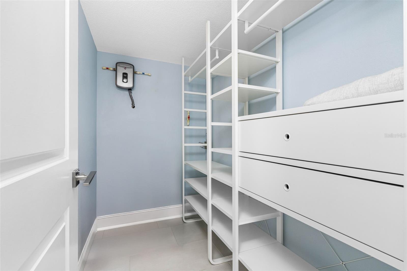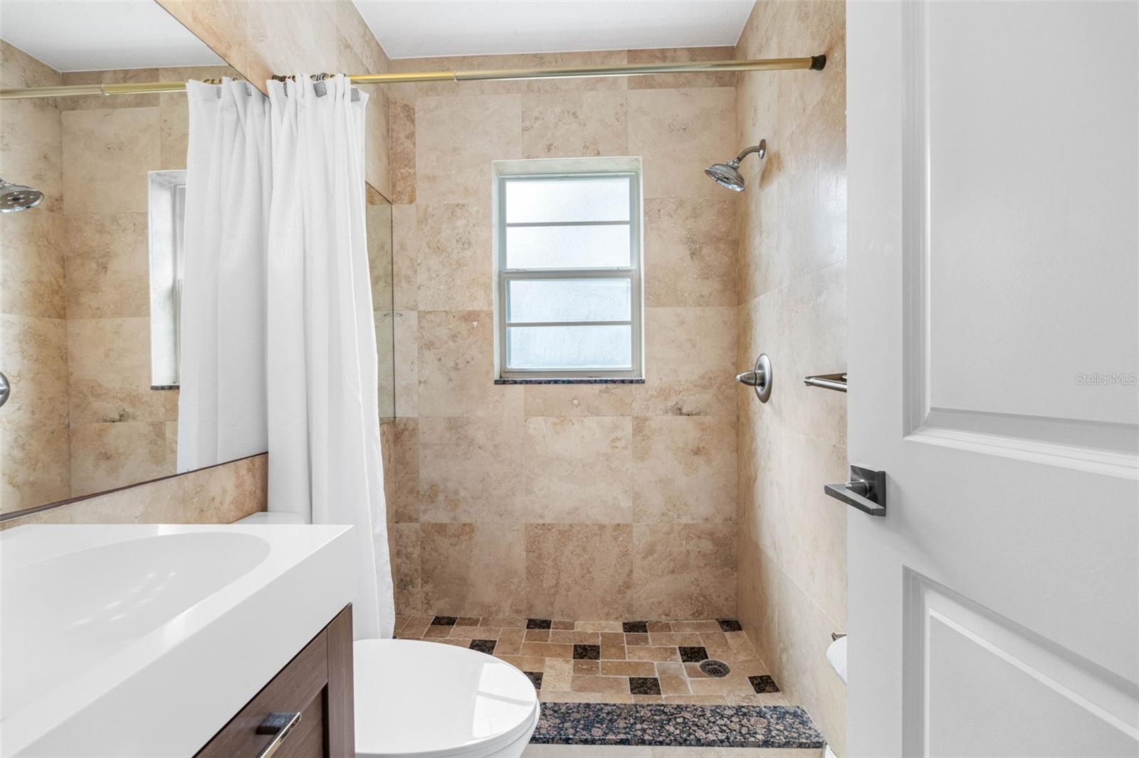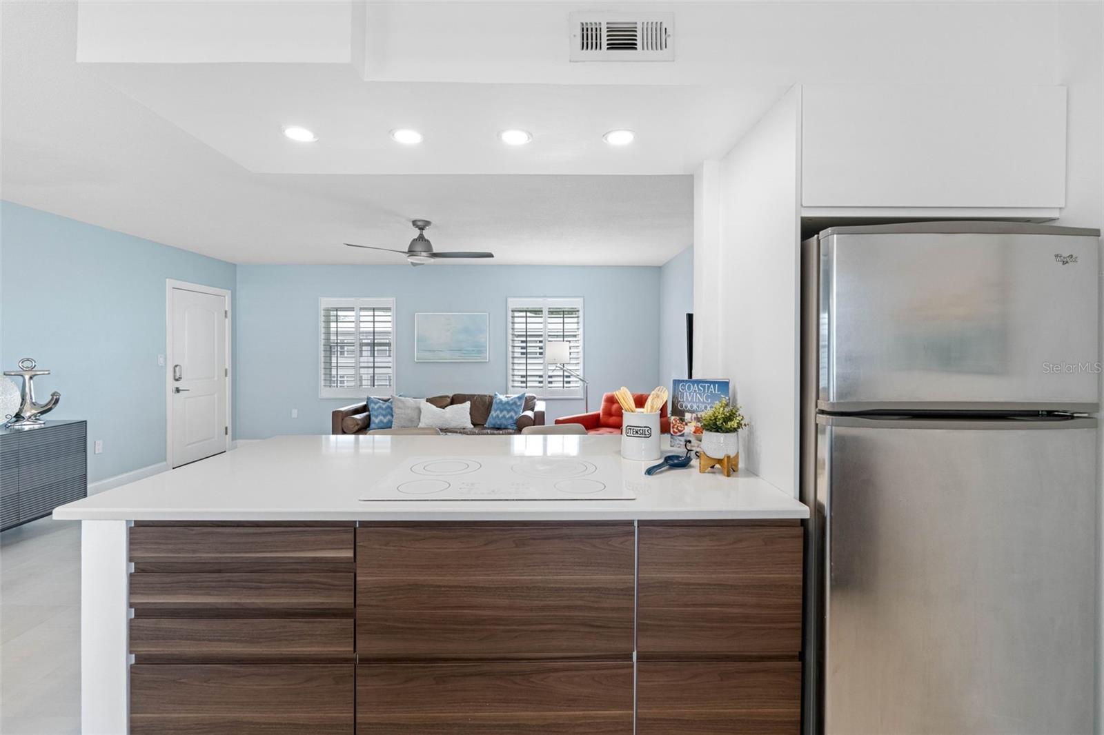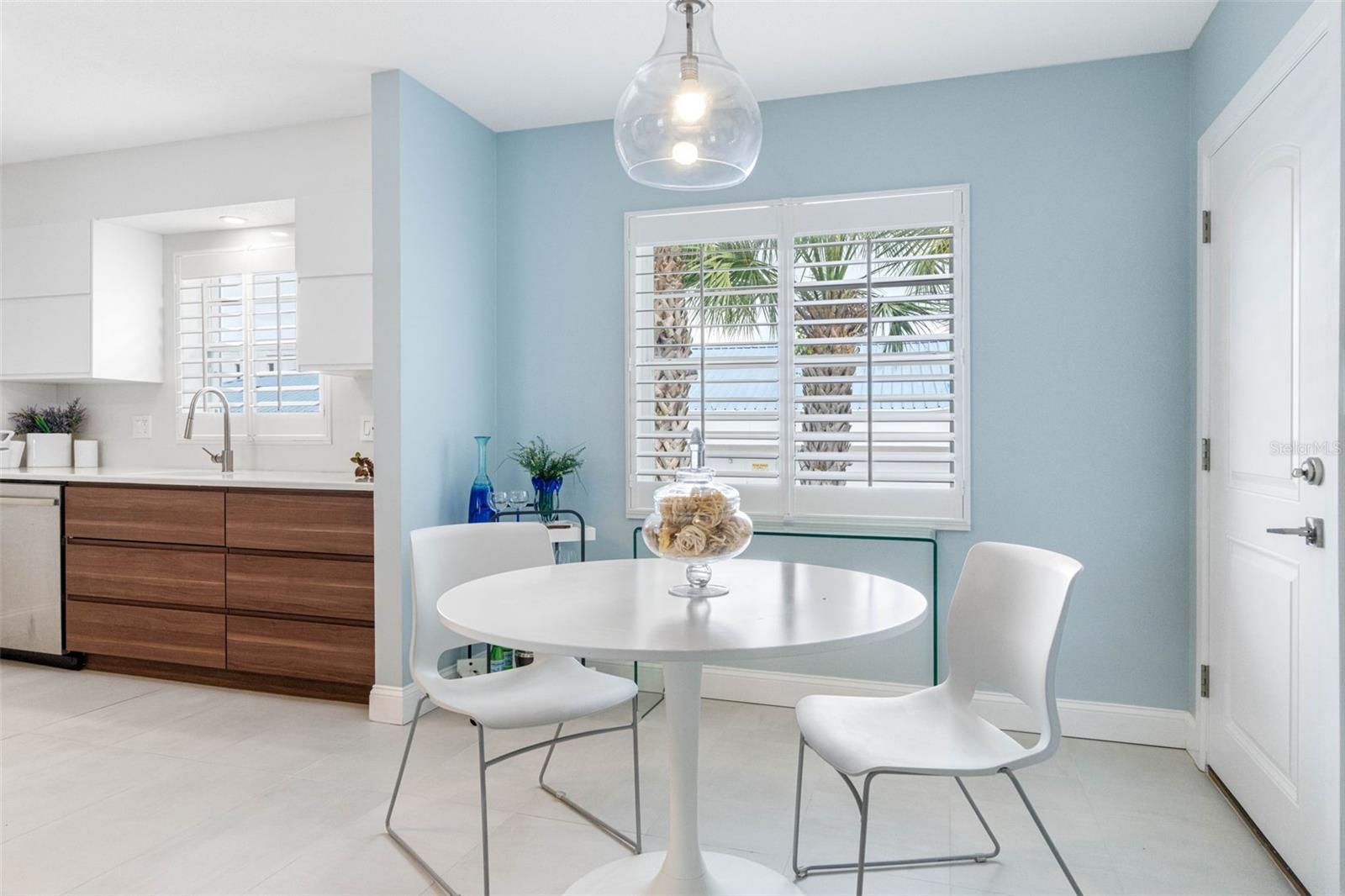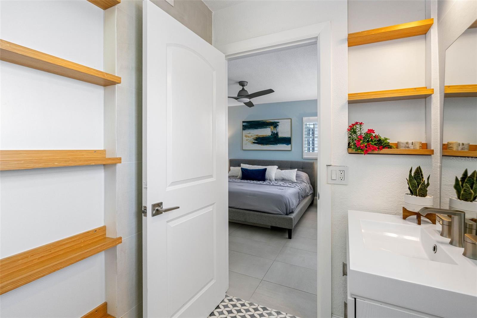**HOME DID NOT HAVE HURRICANE DAMAGE** Welcome to your beautifully updated modern condo ideally situated near stunning sugary sandy beaches and a short drive to vibrant downtown St. Pete! This chic 2-bedroom, 2-bath home features a thoughtfully designed open floor plan with large-format tile flooring and coastal-inspired paint throughout. Enter the home into the spacious and inviting living room through either the front or back door. The room, painted in a soft, light blue, enhances its open and airy feel, complemented by high ceilings with a modern ceiling fan. Adjacent to the living area, a sleek and modern kitchen with bar seating allows for easy conversation and interaction between spaces. The kitchen showcases rich, Italian walnut-toned lower cabinetry and white upper cabinets that provide ample storage while adding a warm contrast to the crisp walls and quartz countertops. A large, single-basin sink situated beneath a wide window allows natural light to brighten the space, enhancing the clean and uncluttered feel. The kitchen is also equipped with stainless steel appliances. The charming dining area offers a fresh, coastal vibe highlighted by a striking glass pendant light overhead. Large windows throughout, equipped with white plantation shutters, frame views of lush greenery and palms, enhancing the home’s airy and bright ambiance. The primary bedroom beautifully combines serenity and modern elegance, making it a perfect retreat. The walk-in closet features built-ins, and a tankless water heater saves space and ensures you never run out of hot water. The updated ensuite bathroom presents a clean and modern design, highlighted by a soothing neutral palette. It features large, light gray tiles that cover the walls, complementing the white fixtures and cabinetry. The sleek vanity offers ample storage with a flat-panel design, topped with a white countertop and modern fixtures, and custom practical additions like the wooden shelving built-in provide extra space for towels or decor, enhancing the bathroom’s utility and style. The second bedroom features a large built-in closet, TV, and tile flooring. This updated guest bathroom showcases travertine tiles on the walls and floor, a white vanity, sleek white countertop, and contemporary lighting. The HVAC was replaced in 2024. The building has a new roof and is conveniently located, allowing an easy walk to Publix, Wal-Mart, CVS, and many more stores, restaurants, houses of worship, public transportation, hospitals, and the beautiful Galatea Park. Nearby Duryea Bay View Park offers gorgeous waterfront views of Boca Ciega Bay, walking paths, public tennis courts, and a local playground. The community features a heated pool, putting greens, shuffleboard, a clubhouse with pool tables, and is just a short walk to the intercoastal. St Pete Beach is only minutes away. Assigned parking spot steps from the front door. Call for a showing today!