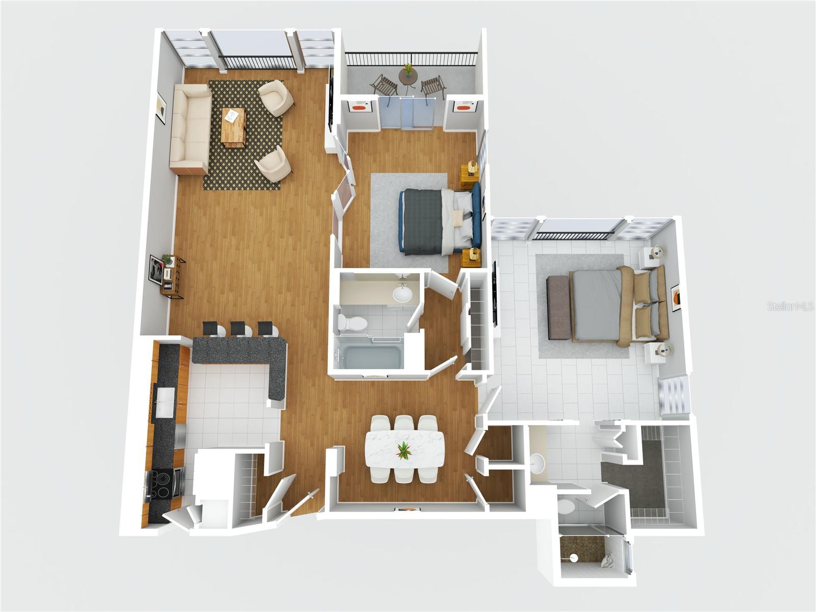 Welcome to Bay Island Condominiums, a premier 55+ gated waterfront community! This beautifully maintained CORNER UNIT 2-bedroom, 2-bathroom condo offers the ultimate Florida lifestyle with panoramic views of downtown St. Petersburg, the St. Pete Beach drawbridge, and the sparkling waters of Boca Ciega Bay. Located on the fifth floor with NO FLOOD DAMAGE from recent hurricanes, this unit is a serene retreat with peace of mind. Step inside to a bright and spacious open-concept living area featuring trendy bamboo and tile flooring throughout. The newer kitchen includes stone countertops, stainless steel appliances, a large bar, and an in-line Smart Water filtration system. Enjoy the stunning views right from your living room, ideal for relaxing or entertaining guests. The primary suite boasts water views, a walk-in closet, and an ensuite bathroom with a separate vanity and safety bars in the shower for added comfort. The second bedroom includes a Jack and Jill style bathroom and opens to a large screened patio—perfect for your private outdoor oasis. Also included is a STORAGE UNIT LOCATED ON THE 6TH FLOOR and ASSIGNED CARPORT SPOT. Bay Island offers unmatched amenities including six pools, hot tubs, tennis and shuffleboard courts, a marina, and an active clubhouse with weekly events, fitness classes, and social gatherings. Your building features an elevator, garbage chute, third-floor laundry (there is plenty of room in the water heater closet for a washer and dryer in unit, just install hook ups!), and a community bulletin board to keep you informed and engaged. Don't miss out on this rare opportunity to own a piece of paradise with no flood risk, breathtaking views, and a vibrant, amenity-rich lifestyle. Schedule your private tour today!