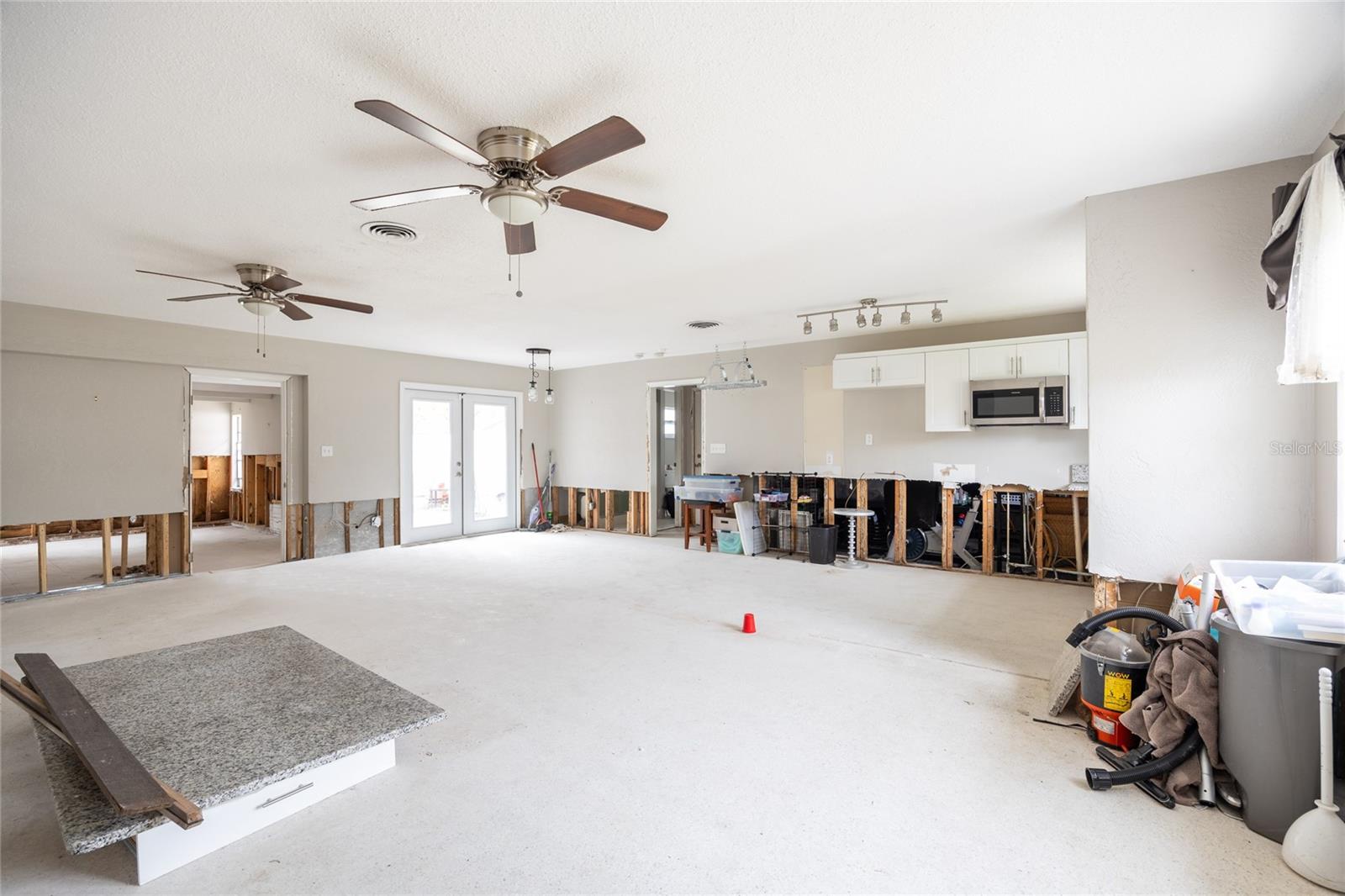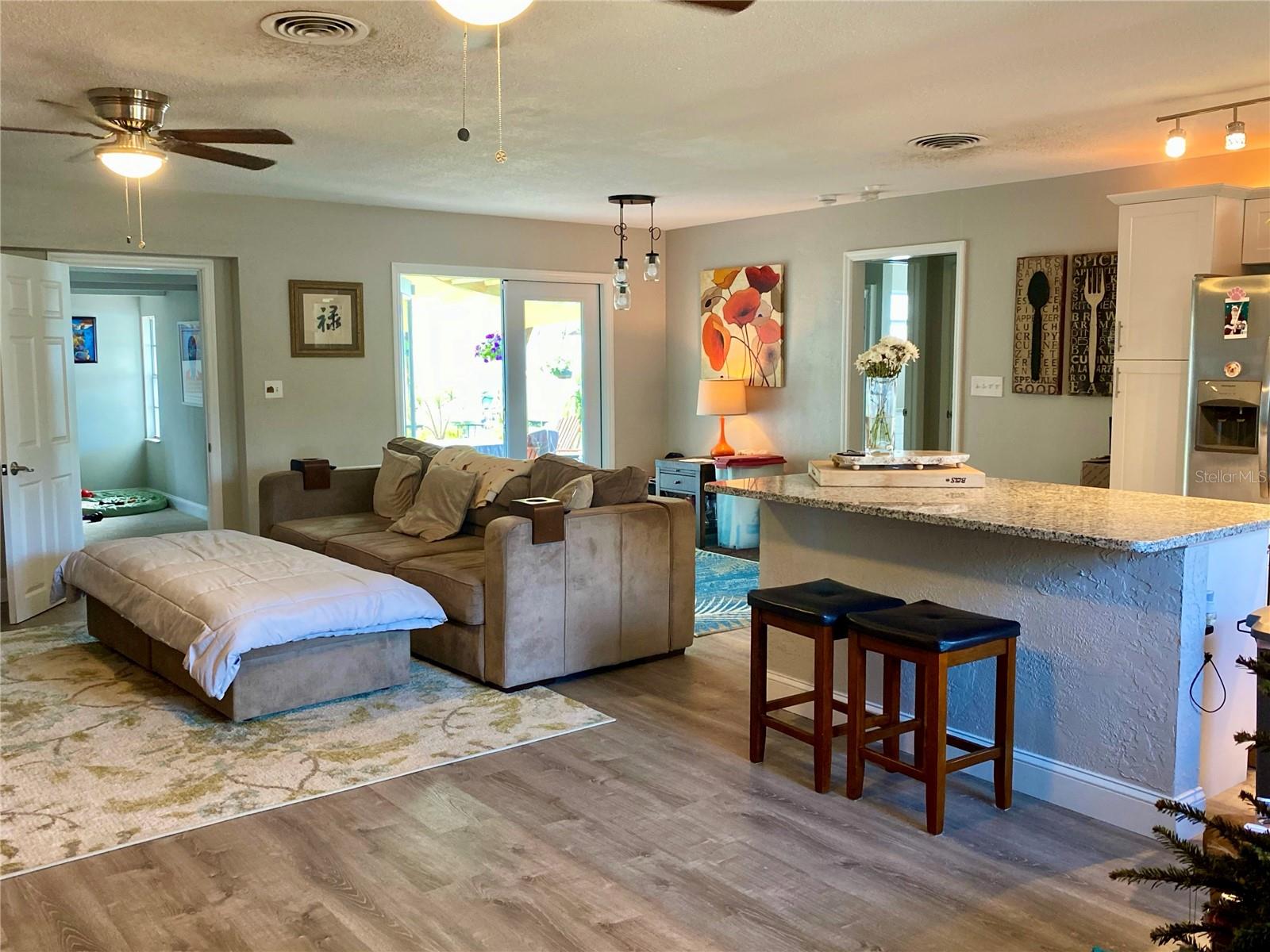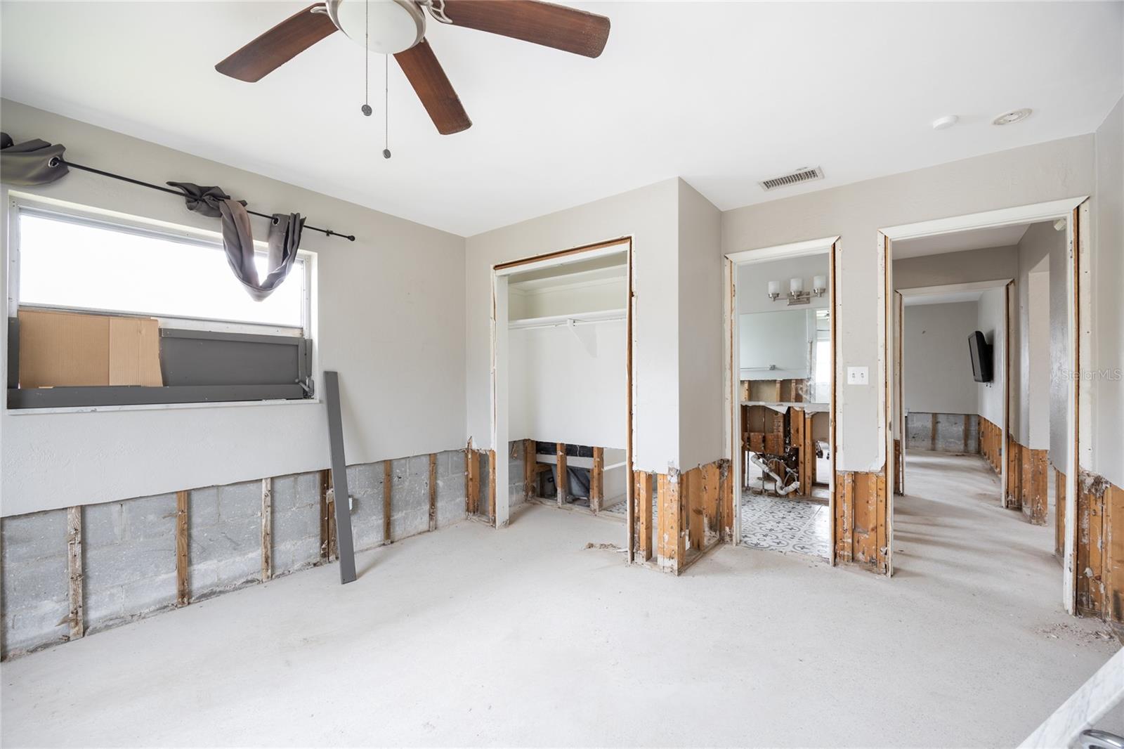 RARE opportunity for the savvy buyer to own property that sits on .2 acres in highly sought-after Pasadena Isle! A short bridge separates the homes on this private, peaceful isle from the bustle of center city South Pasadena/Gulfport This home is being sold as-is following flood damage from Hurricane Helene. It has been professionally remediated and is now ready for renovation, elevation, or rebuilding. Terrazzo floors grace the family/living/dining and kitchen areas. There are five ceiling fans, one in each room. The home has three bedrooms, two bathrooms, a one-car garage, and an open, split-floor plan. A beautiful kitchen island granite slab is ready for a new set of cabinets. Granite countertops and sinks are ready for new vanities in the primary and guest bathrooms. With a new roof installed in 2020 and new ductwork in 2023, this block construction home is bursting with potential. A spacious, fenced-in backyard offers plenty of room for a pool. Just minutes from the beach, waterfront dining, grocery stores, coffee shops, libraries, marinas, golf courses, and more, this property offers unique potential for the discriminating buyer. Don’t delay, make your appointment today!